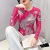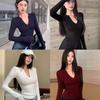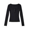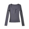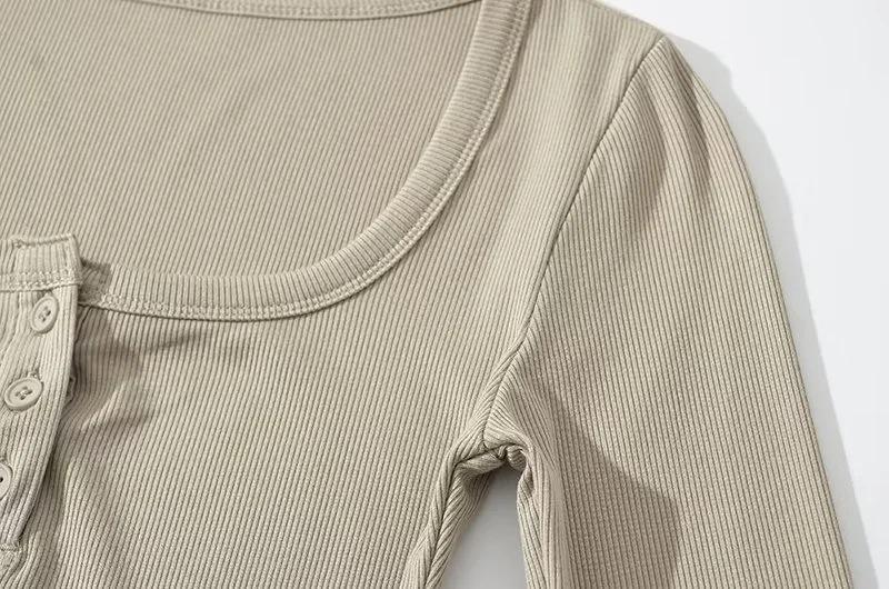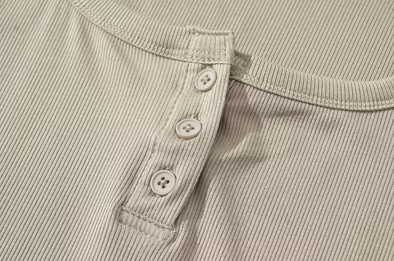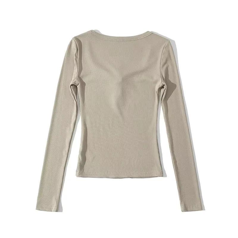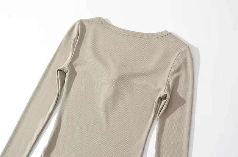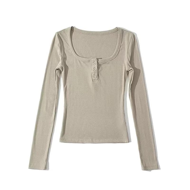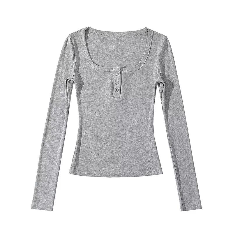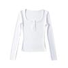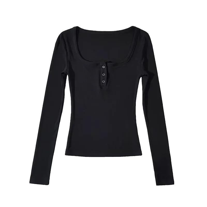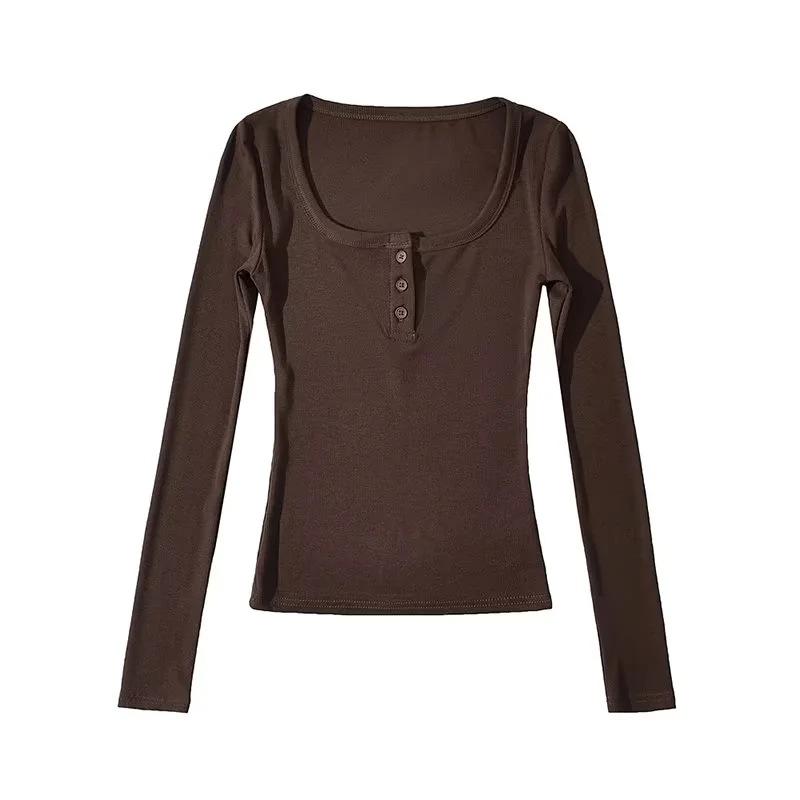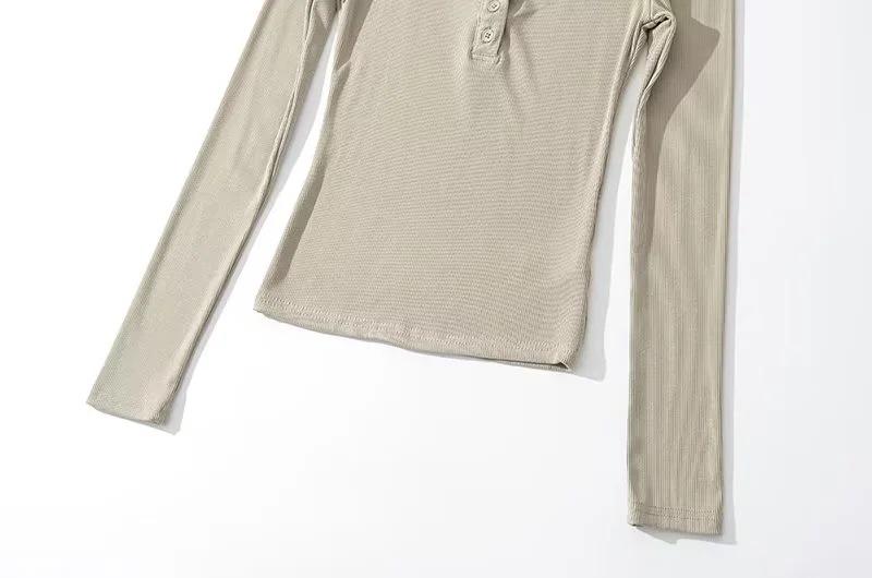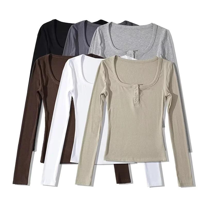 Camiseta de manga larga con cuello grande y botones estilo americano para mujer, primavera 2024, corte entallado, corte adelgazante, corta, básica