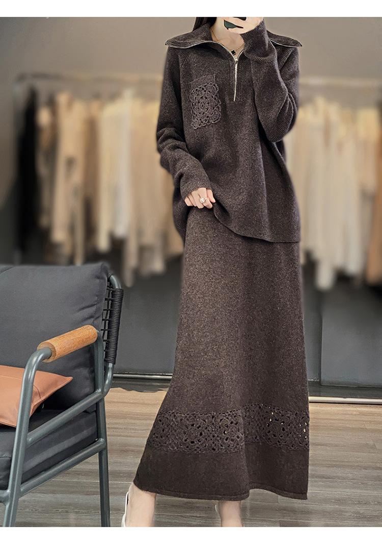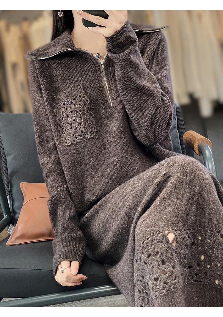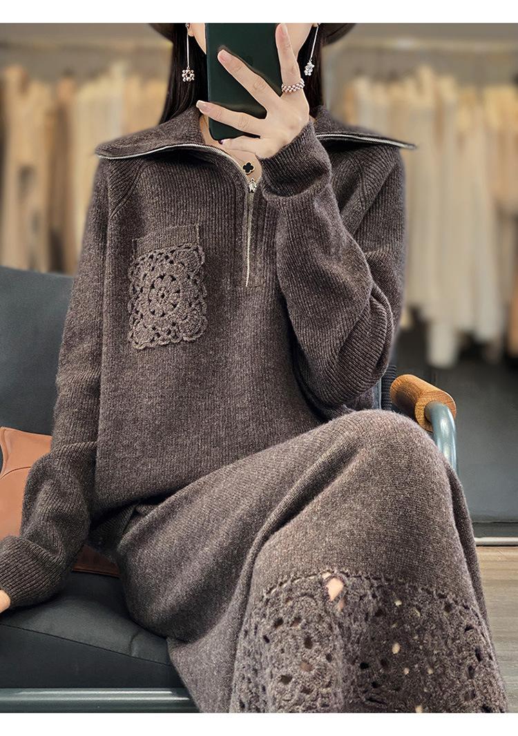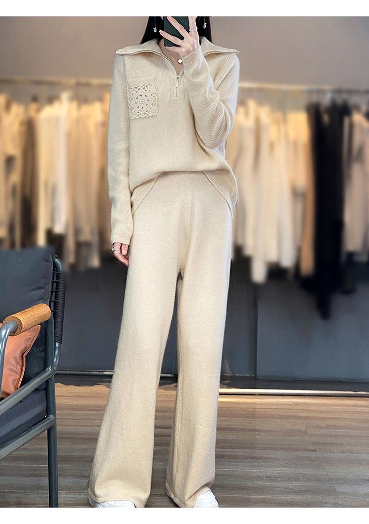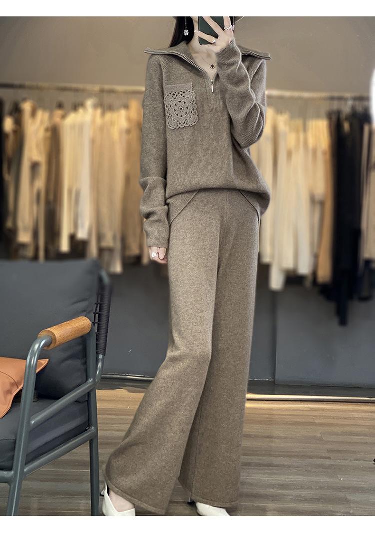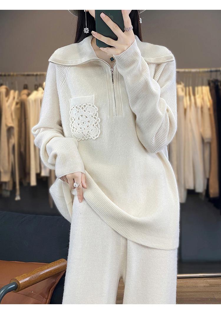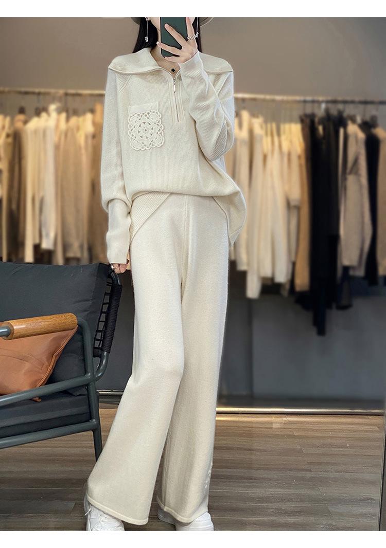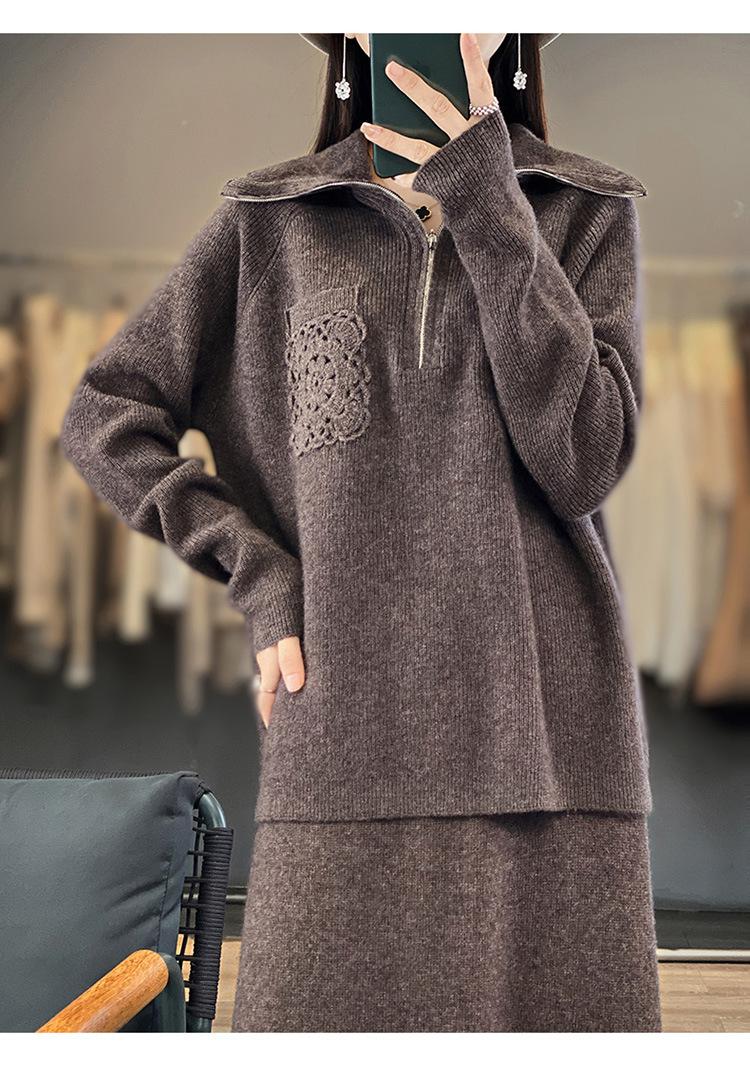 100% Lana Pura Otoño e Invierno 2025 Nuevo Camiseta de Fondo de Punto Cálida Corta Suelta con Solapa Abierta y Media Cremallera para Mujer