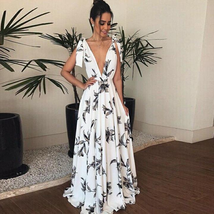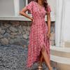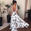 Vestido de verano para mujer, estilo europeo y americano, con estampado floral, escote en V, espalda descubierta y cordones.
