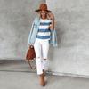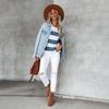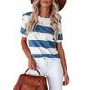 Camiseta informal de manga corta con cuello redondo y estampado de rayas azules y blancas de Amazon, nueva camiseta de verano para mujer, estilo europeo y americano.