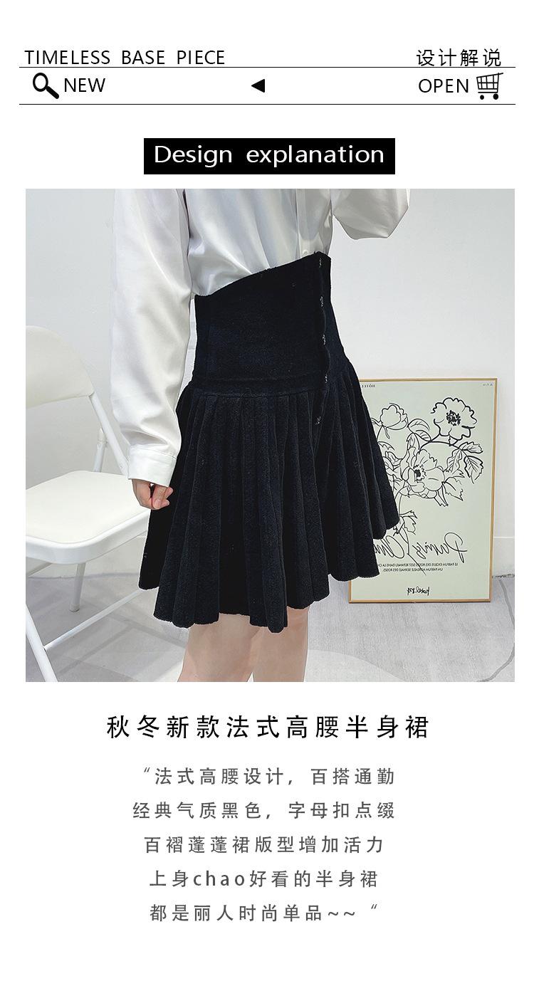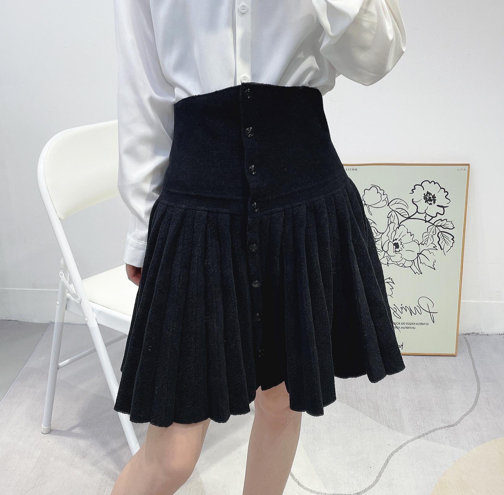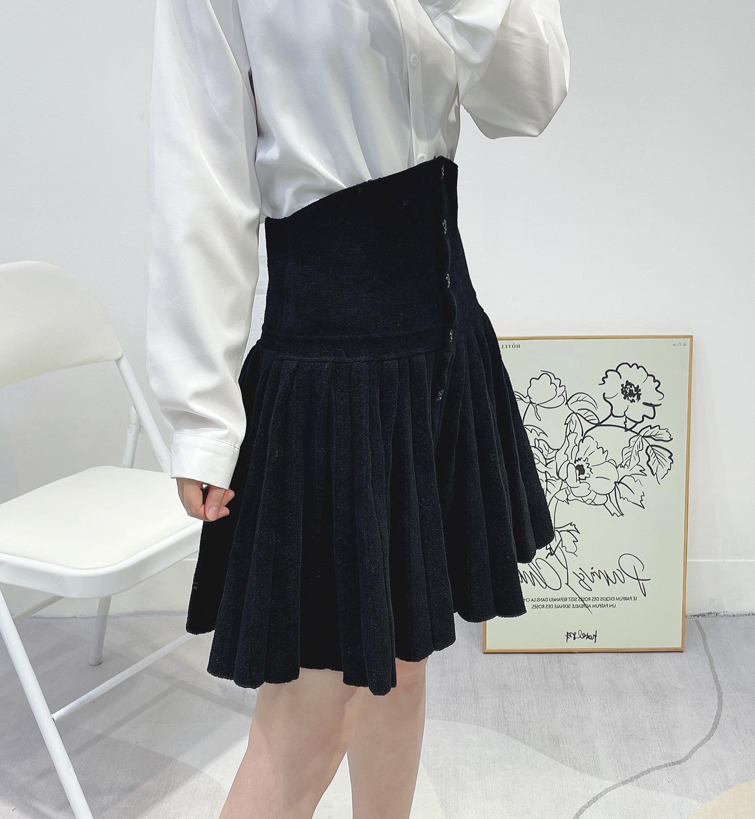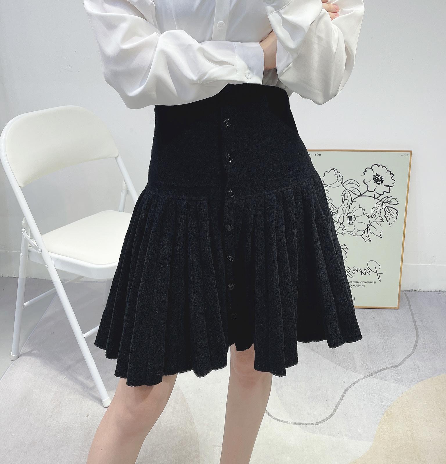 S home 2023 otoño e invierno nueva moda francesa elegante falda plisada de cintura alta con contracción de vientre de un solo pecho negro falda de mujer