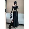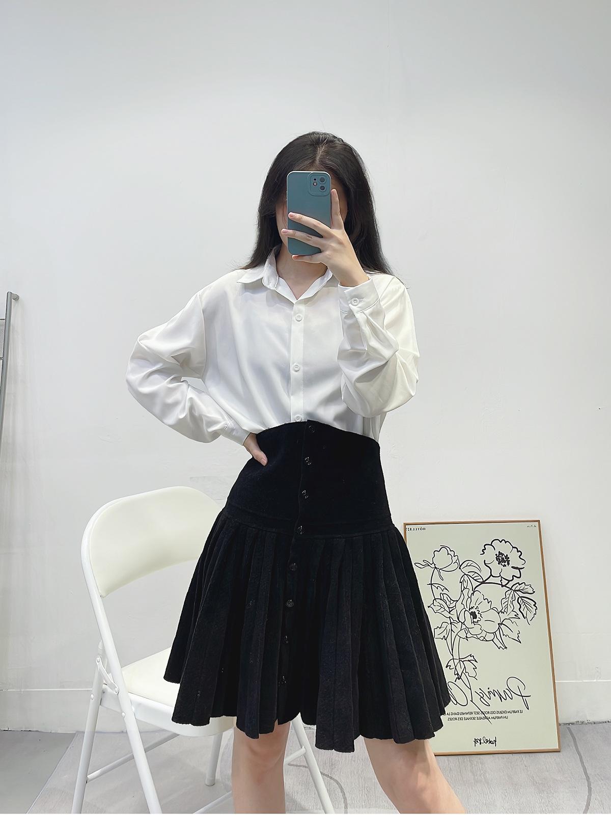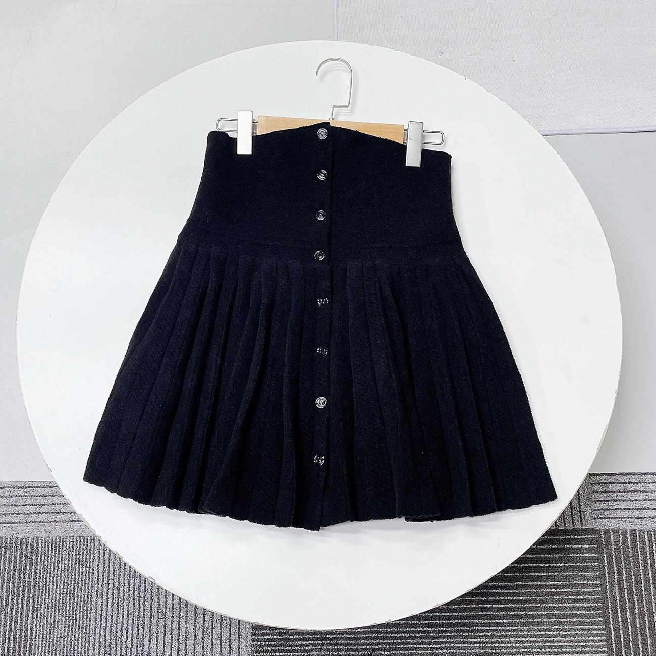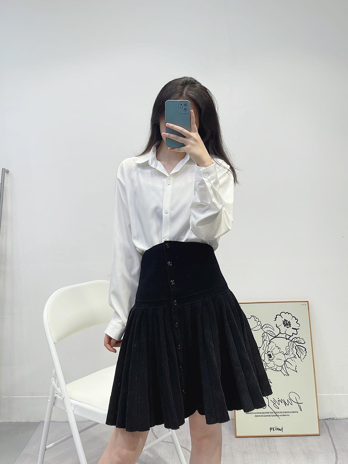 S home 2023 otoño e invierno nueva moda francesa elegante falda plisada de cintura alta con contracción de vientre de un solo pecho negro falda de mujer