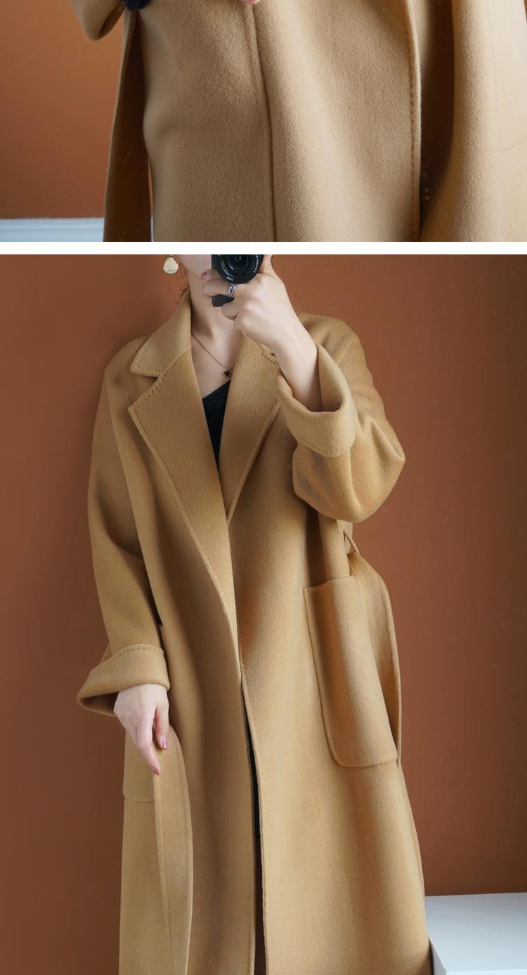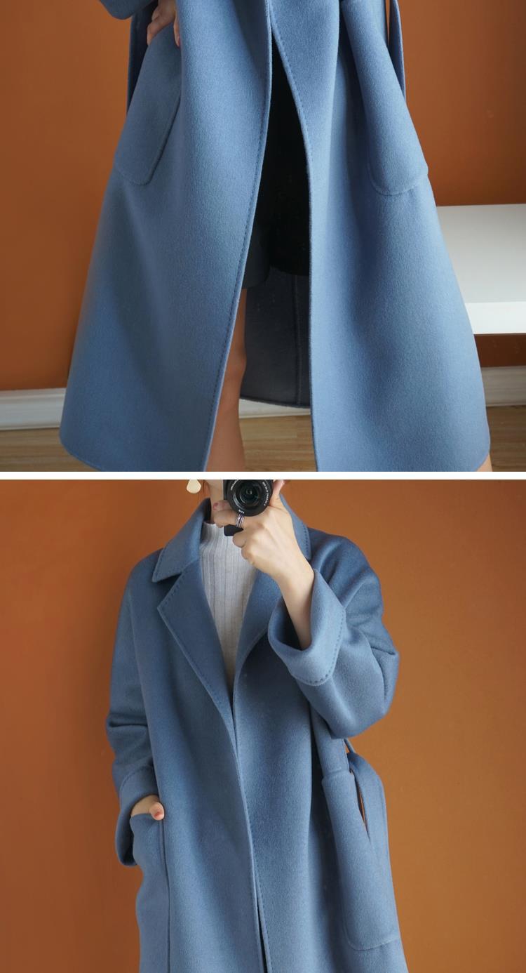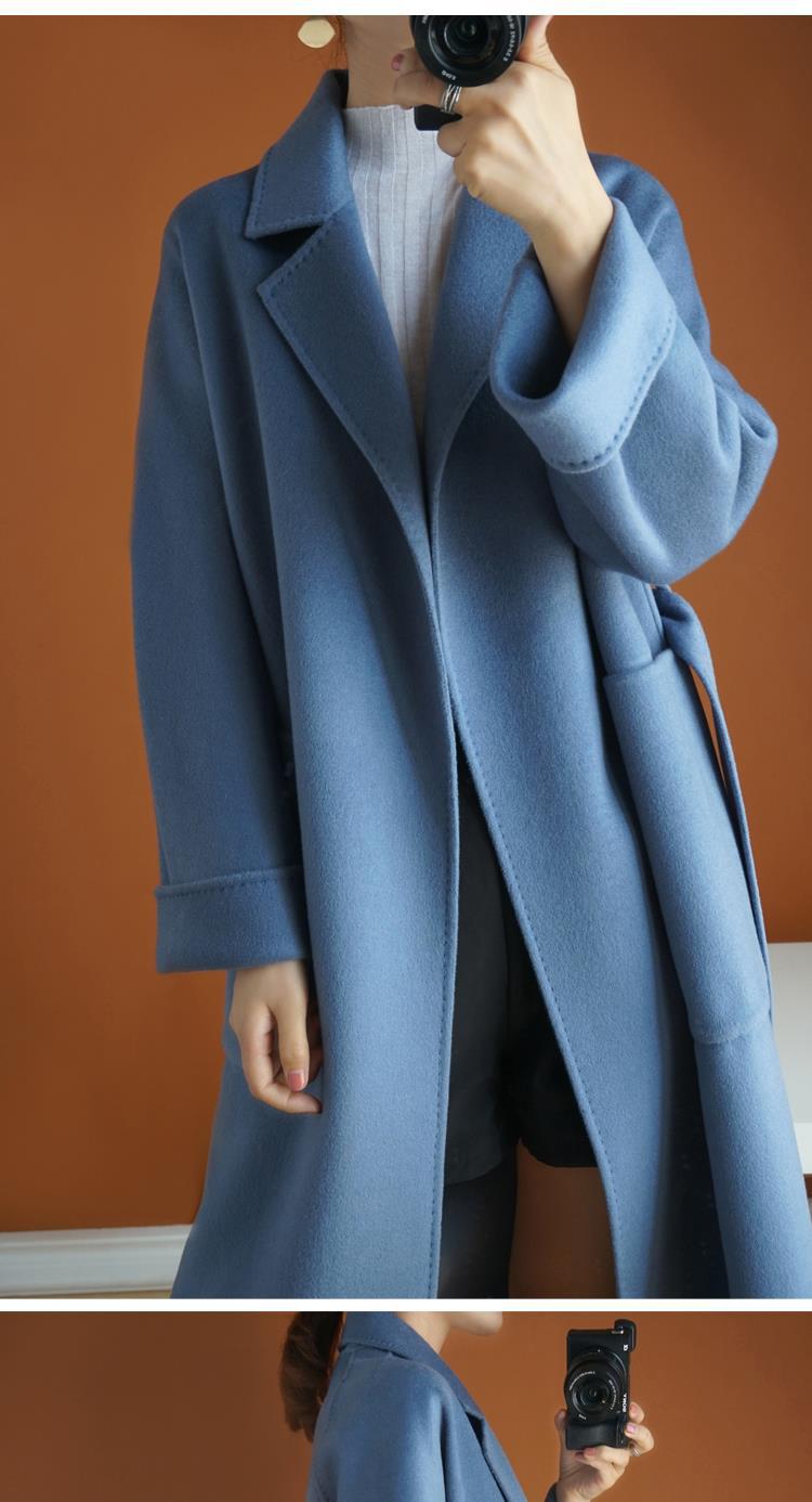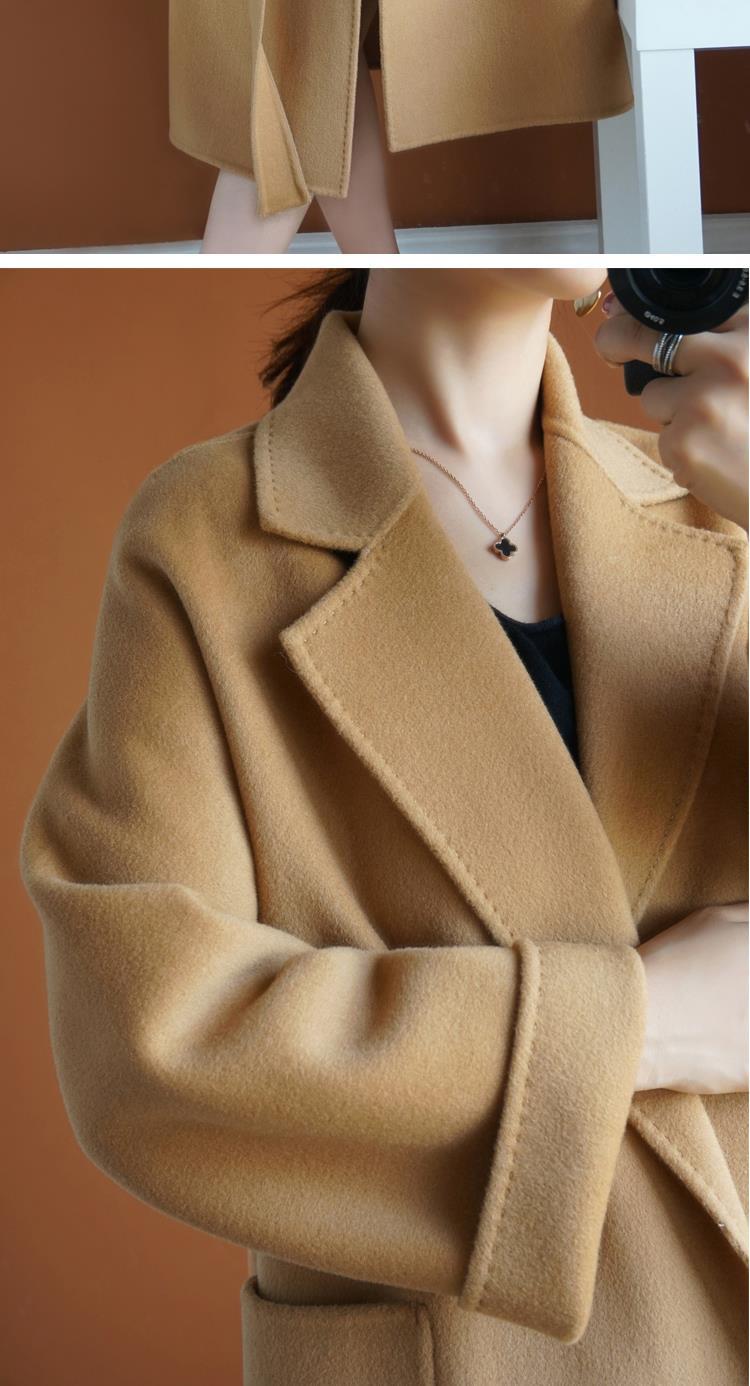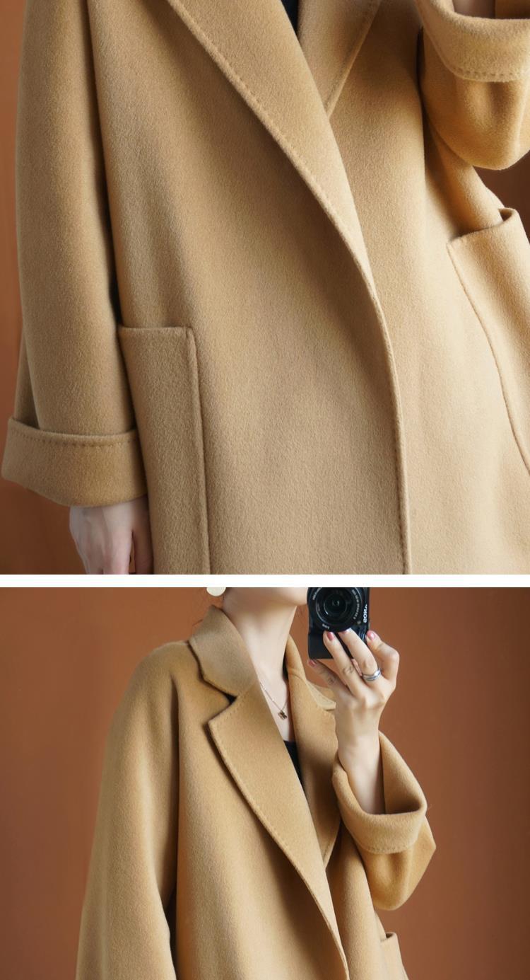 22 Primavera y otoño nuevo abrigo de cachemira de doble cara Abrigo de tweed de lana gruesa y suelta de silueta media para mujer
