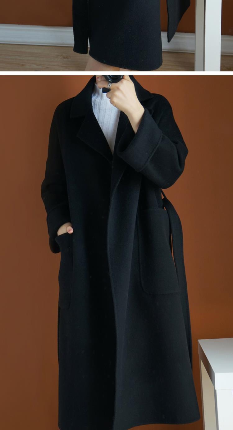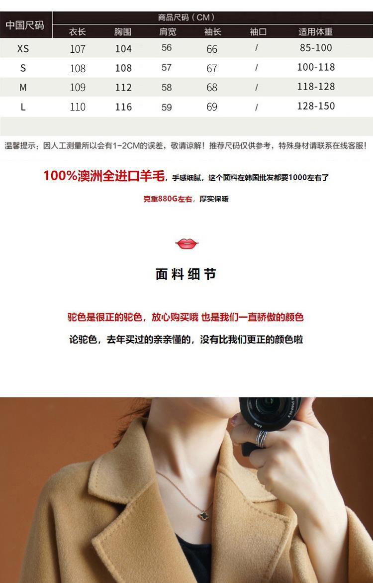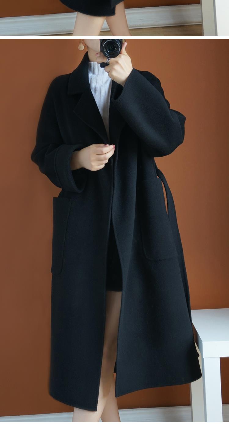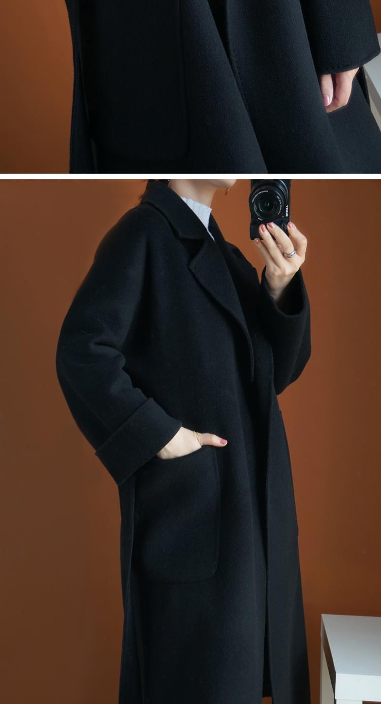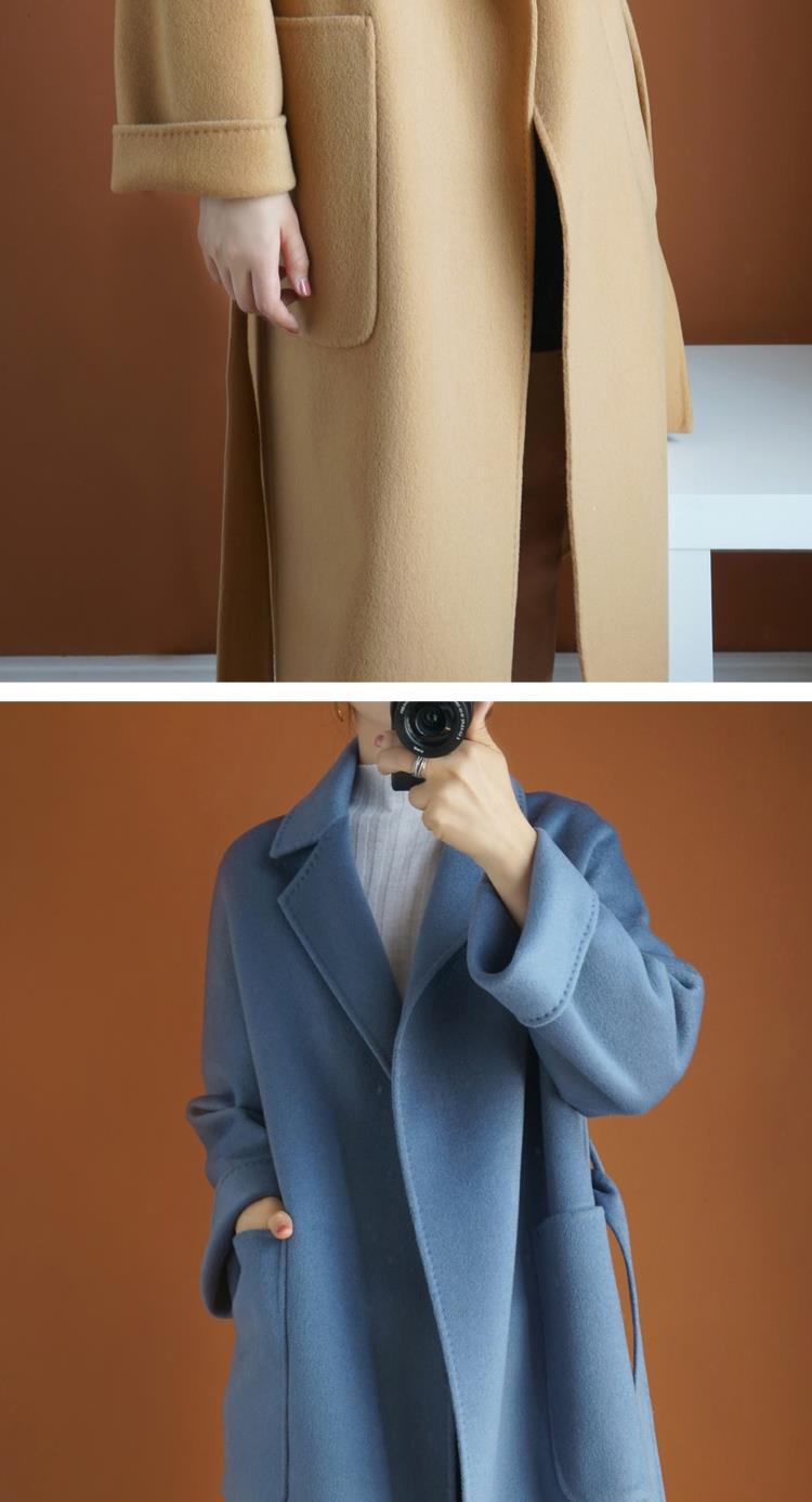 22 Primavera y otoño nuevo abrigo de cachemira de doble cara Abrigo de tweed de lana gruesa y suelta de silueta media para mujer