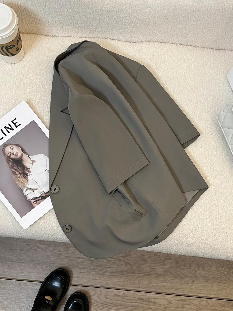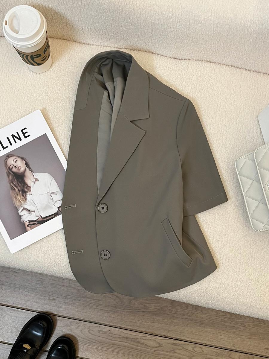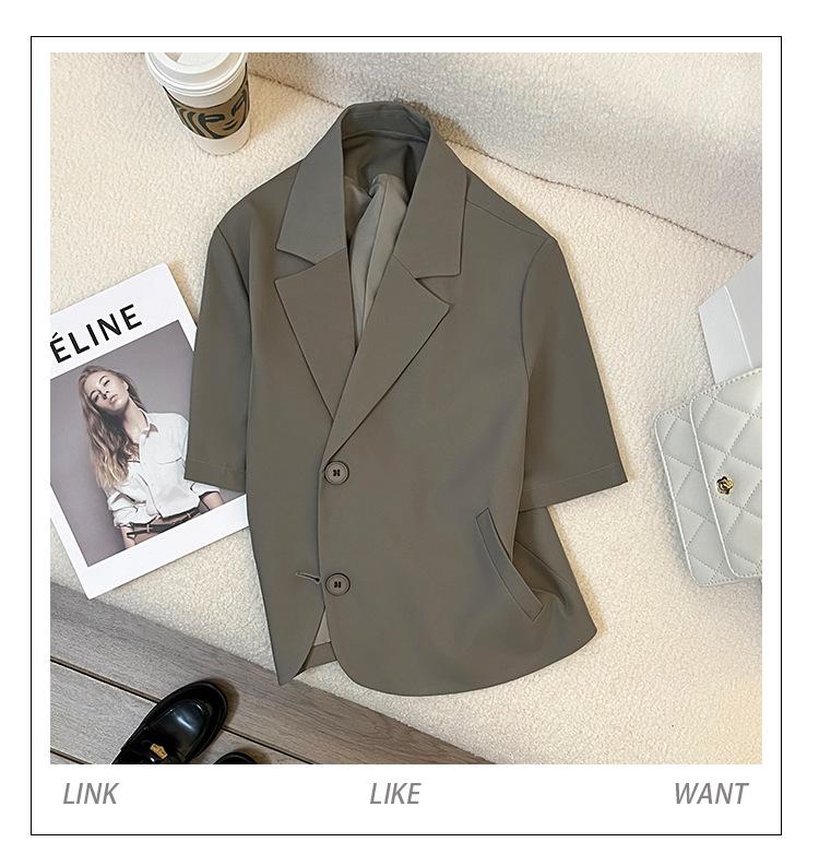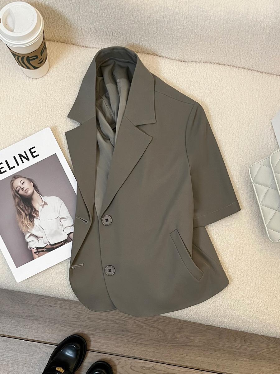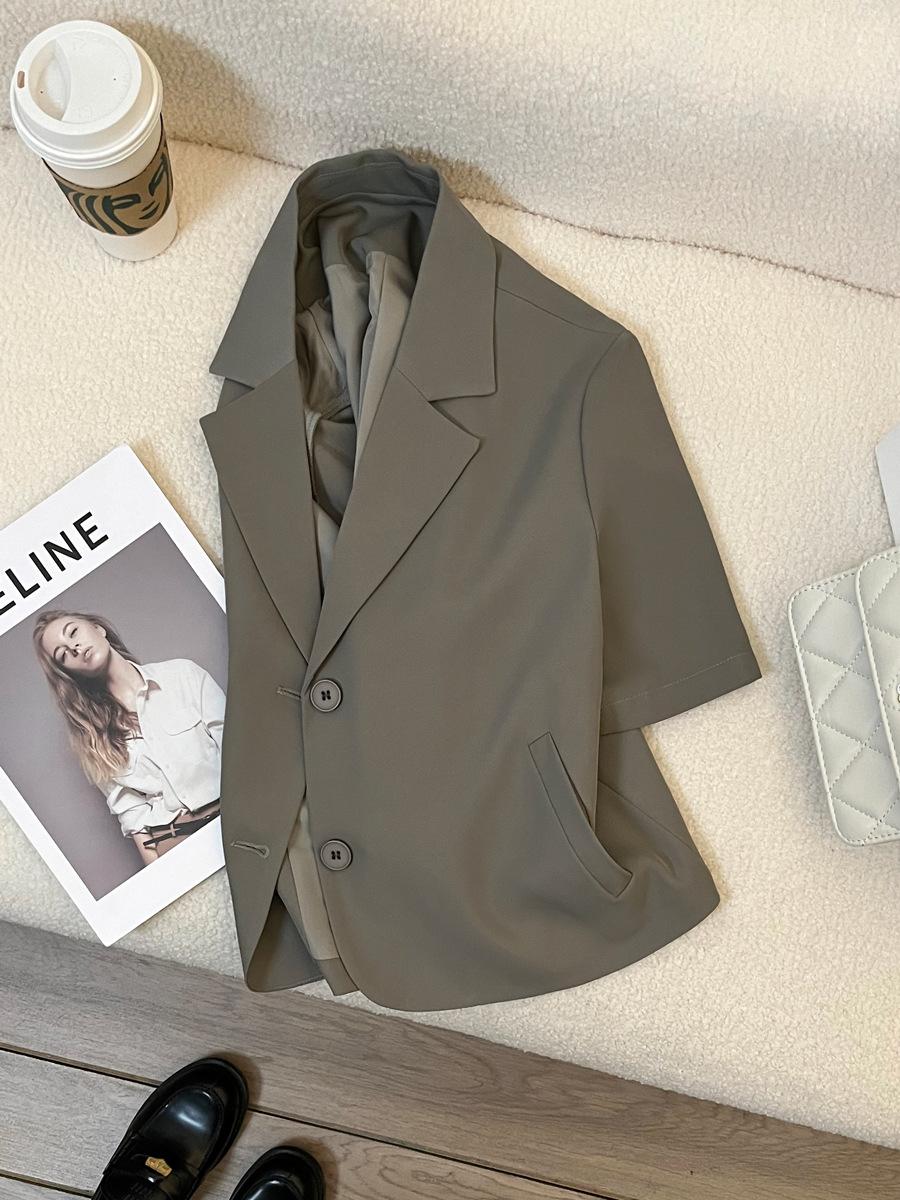 Chaqueta de Traje Fina Gris para Mujer 2025 Verano Nuevo Estilo Estilo Urbano Pequeña Casual Versátil Niche Traje Tendencia