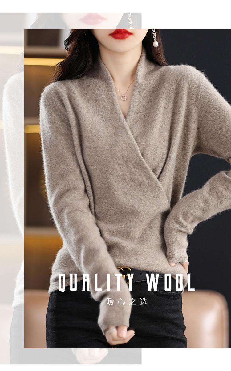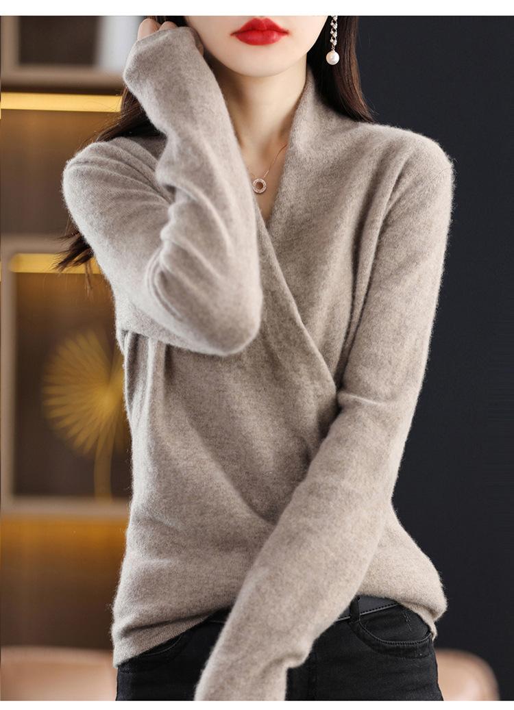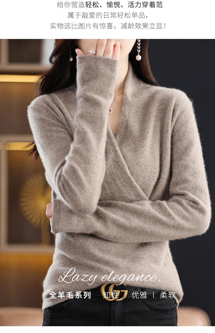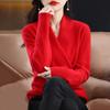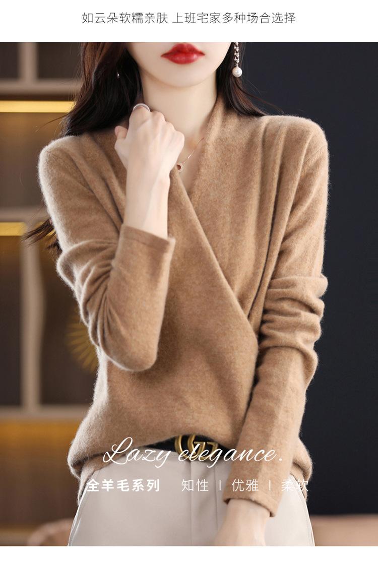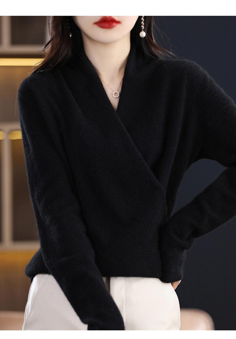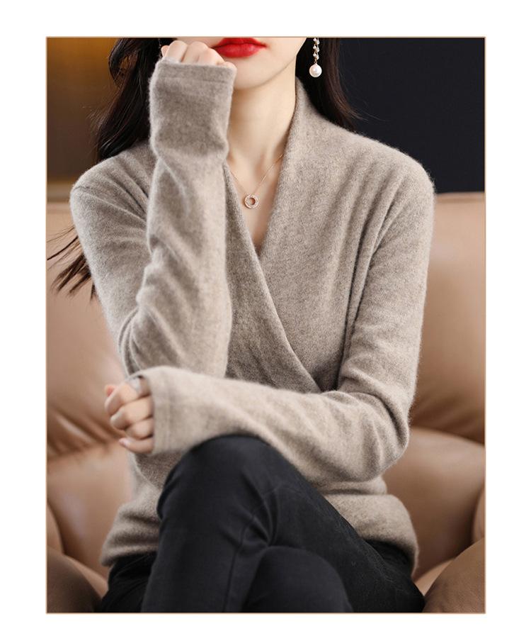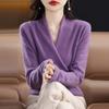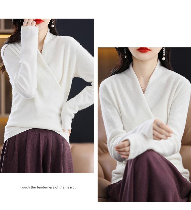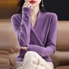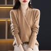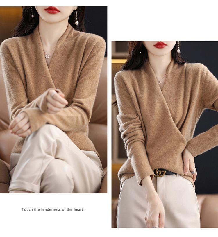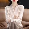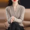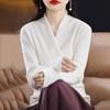 Cárdigan Suéter Tejido de Lana 100% Pura Otoño e Invierno 2025 Nuevo para Mujer Corto Cuello en V Manga Larga Suelto Cruzado