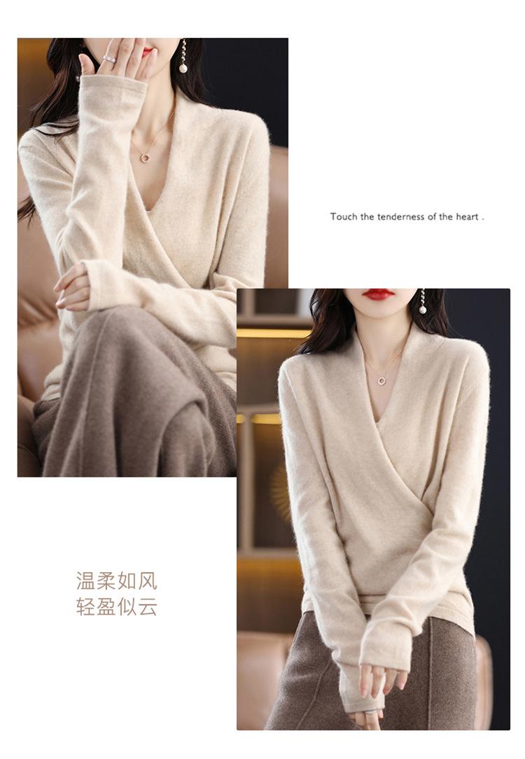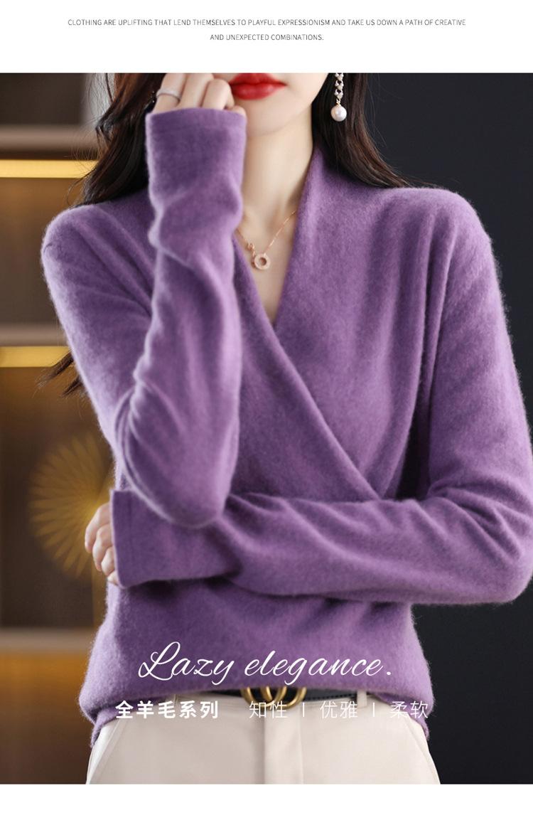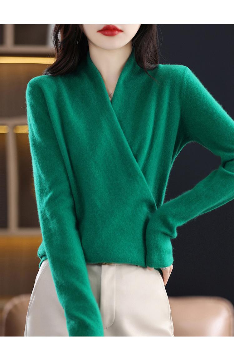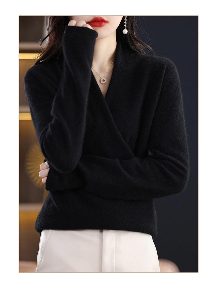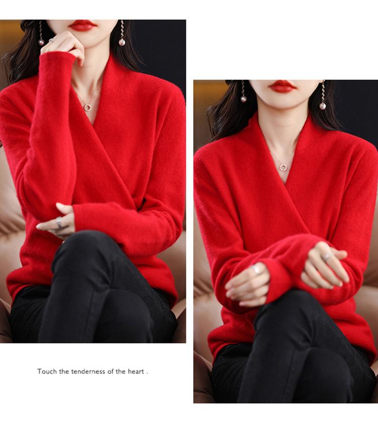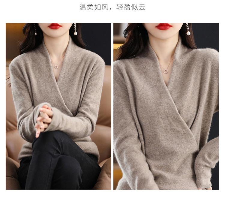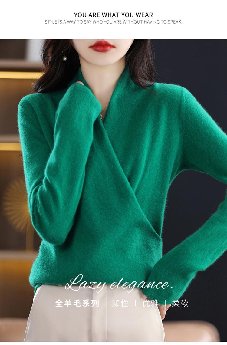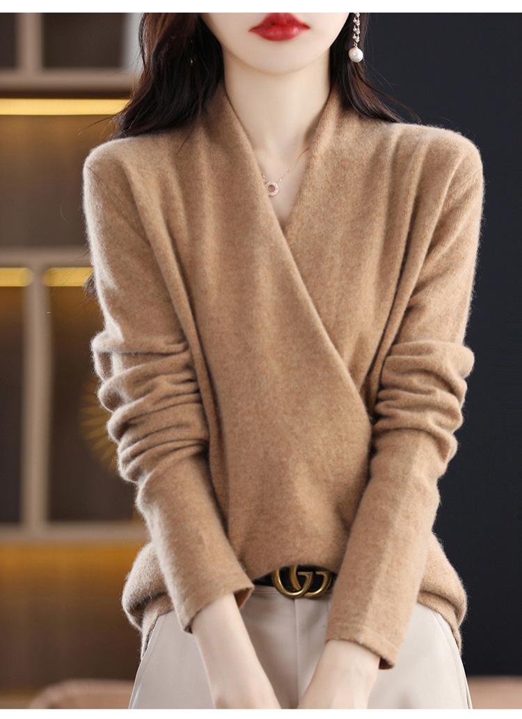Cárdigan Suéter Tejido de Lana 100% Pura Otoño e Invierno 2025 Nuevo para Mujer Corto Cuello en V Manga Larga Suelto Cruzado