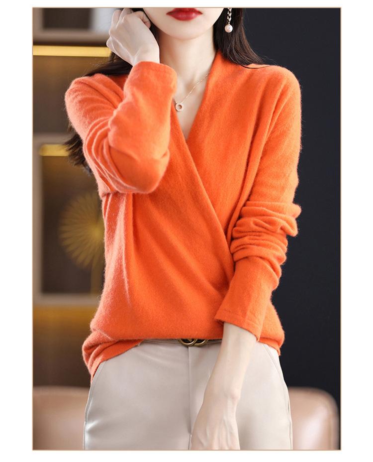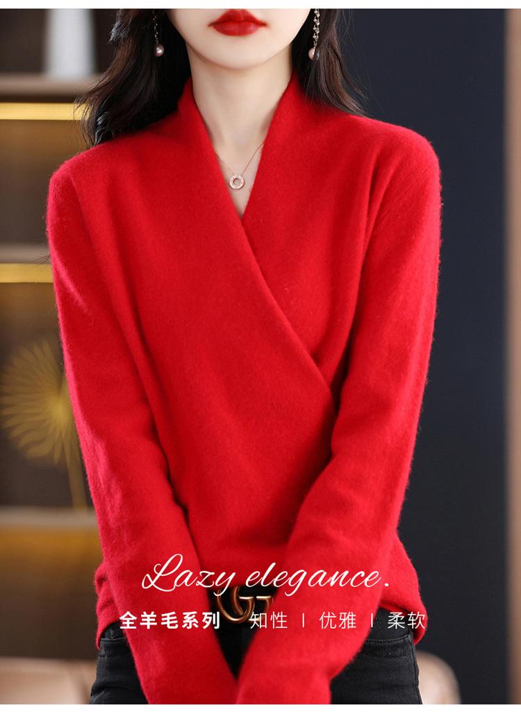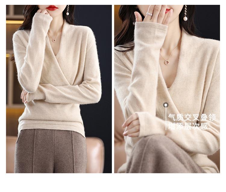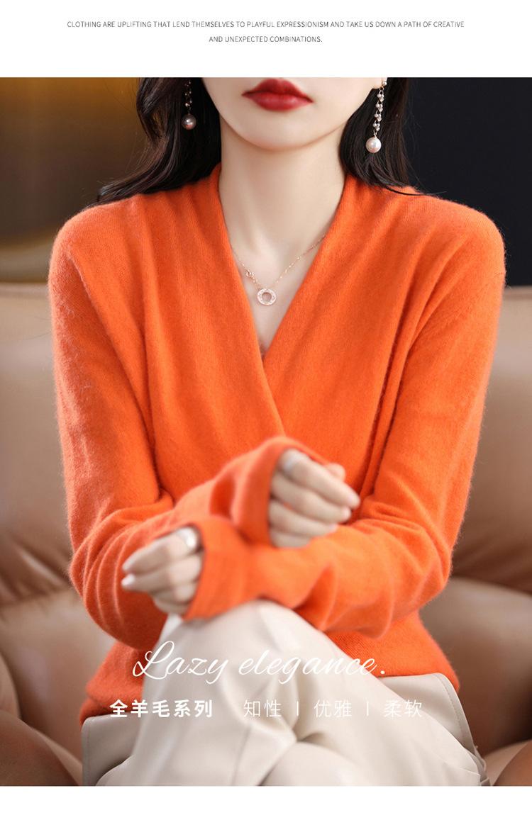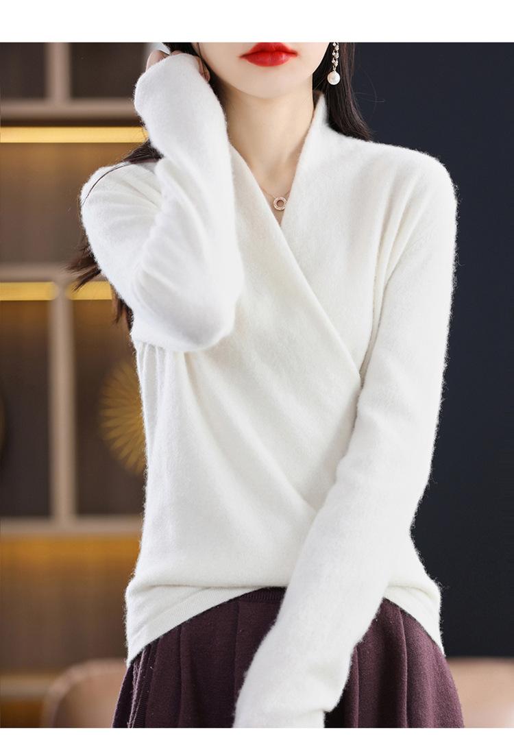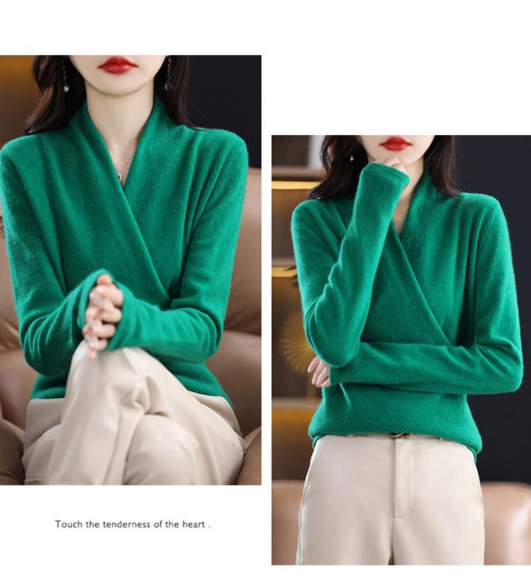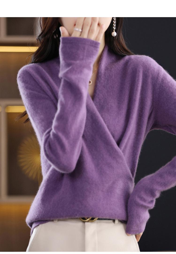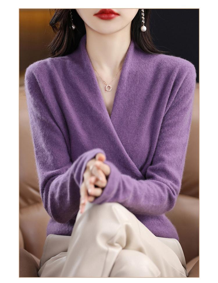 Cárdigan Suéter Tejido de Lana 100% Pura Otoño e Invierno 2025 Nuevo para Mujer Corto Cuello en V Manga Larga Suelto Cruzado