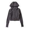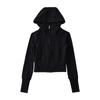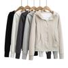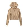 Suéter con capucha de manga larga estilo retro americano para mujer, nuevo cárdigan deportivo ajustado con cremallera, otoño 2023