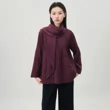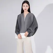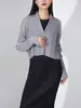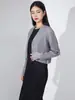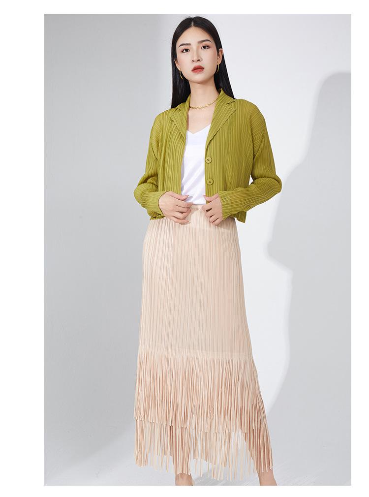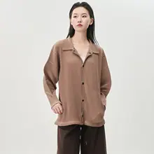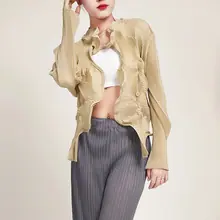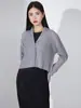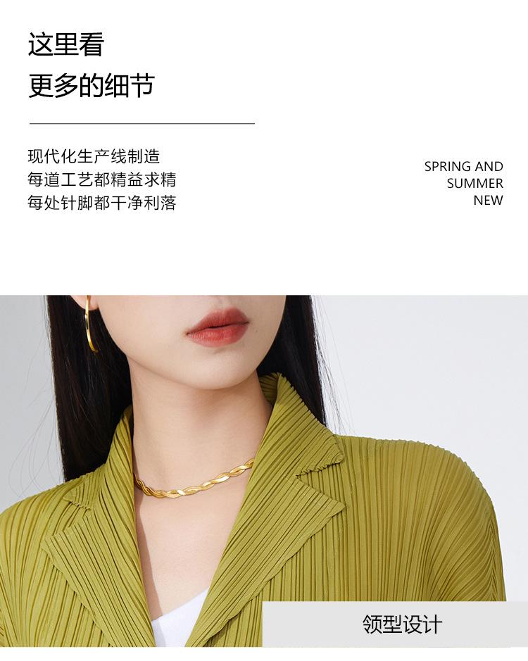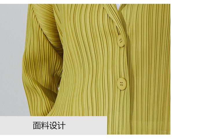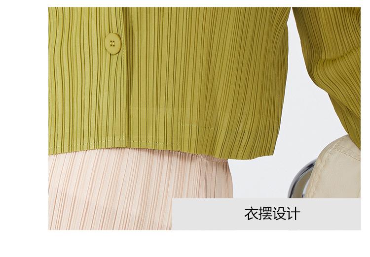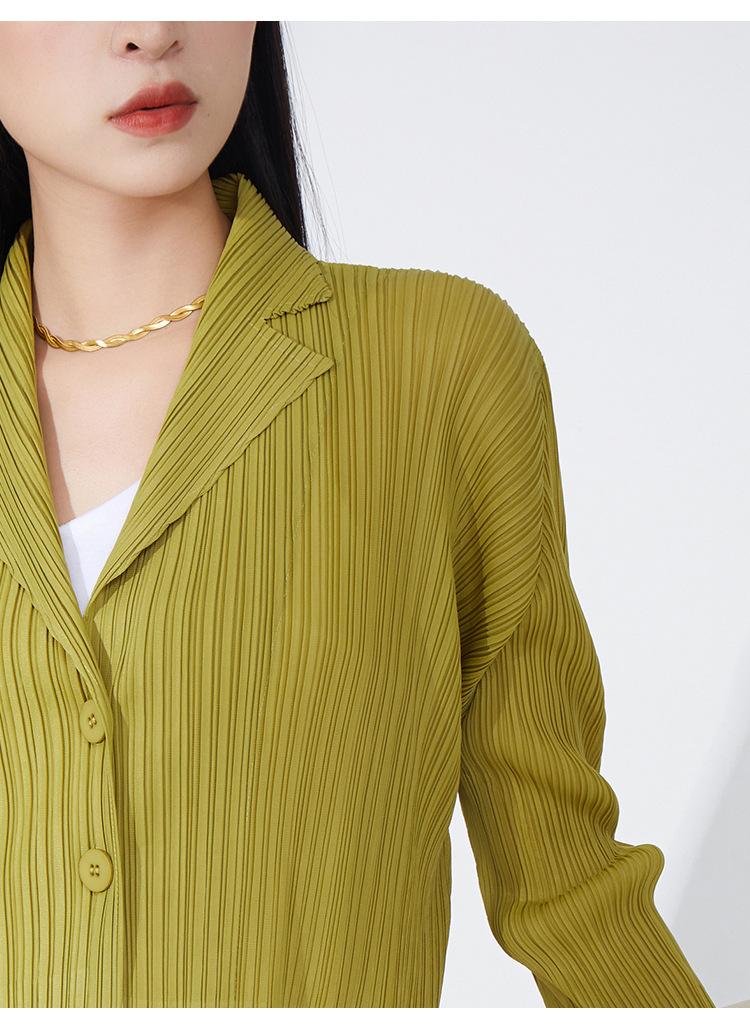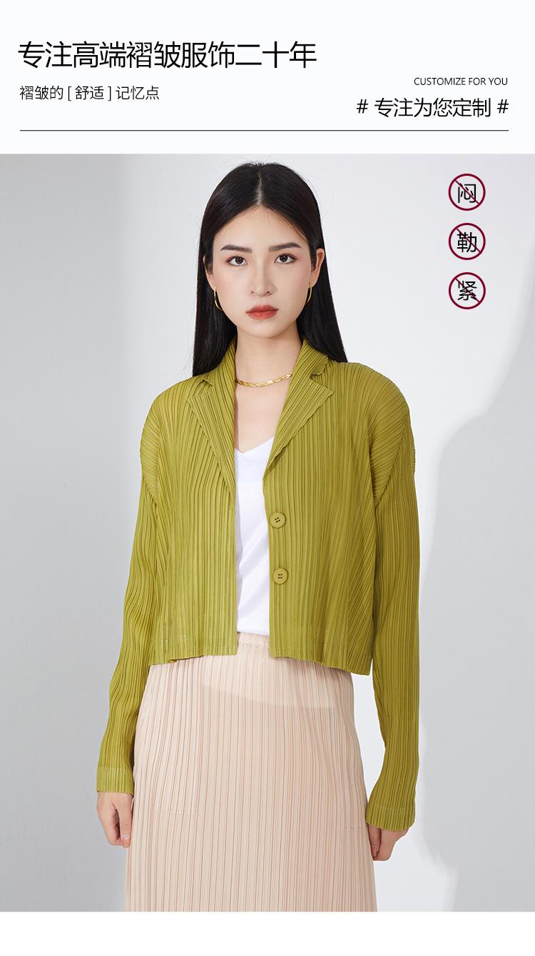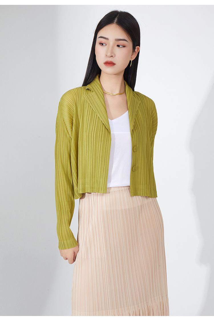 Abrigo de traje plisado informal y holgado para mujer, corto, de otoño, con hebilla de color liso, manga larga, cárdigan, top de traje pequeño