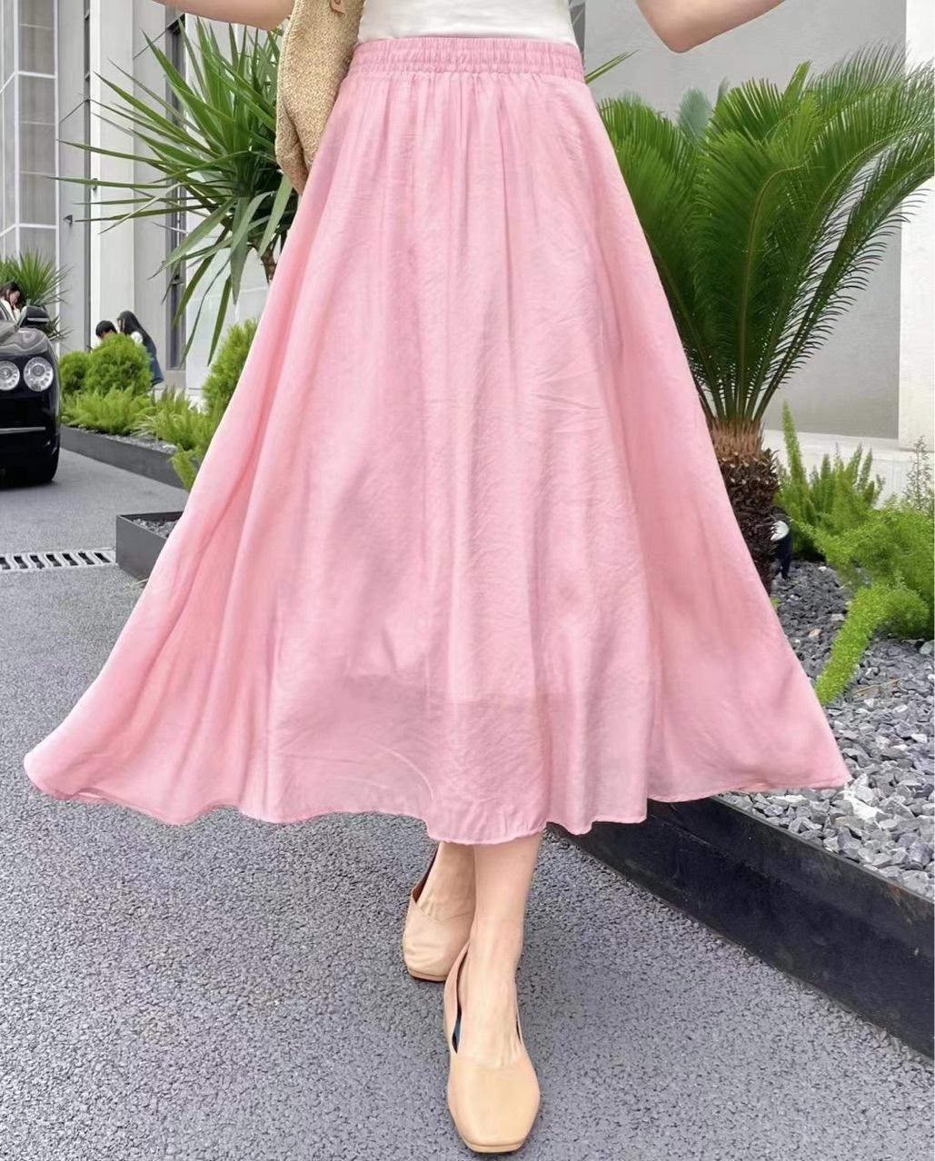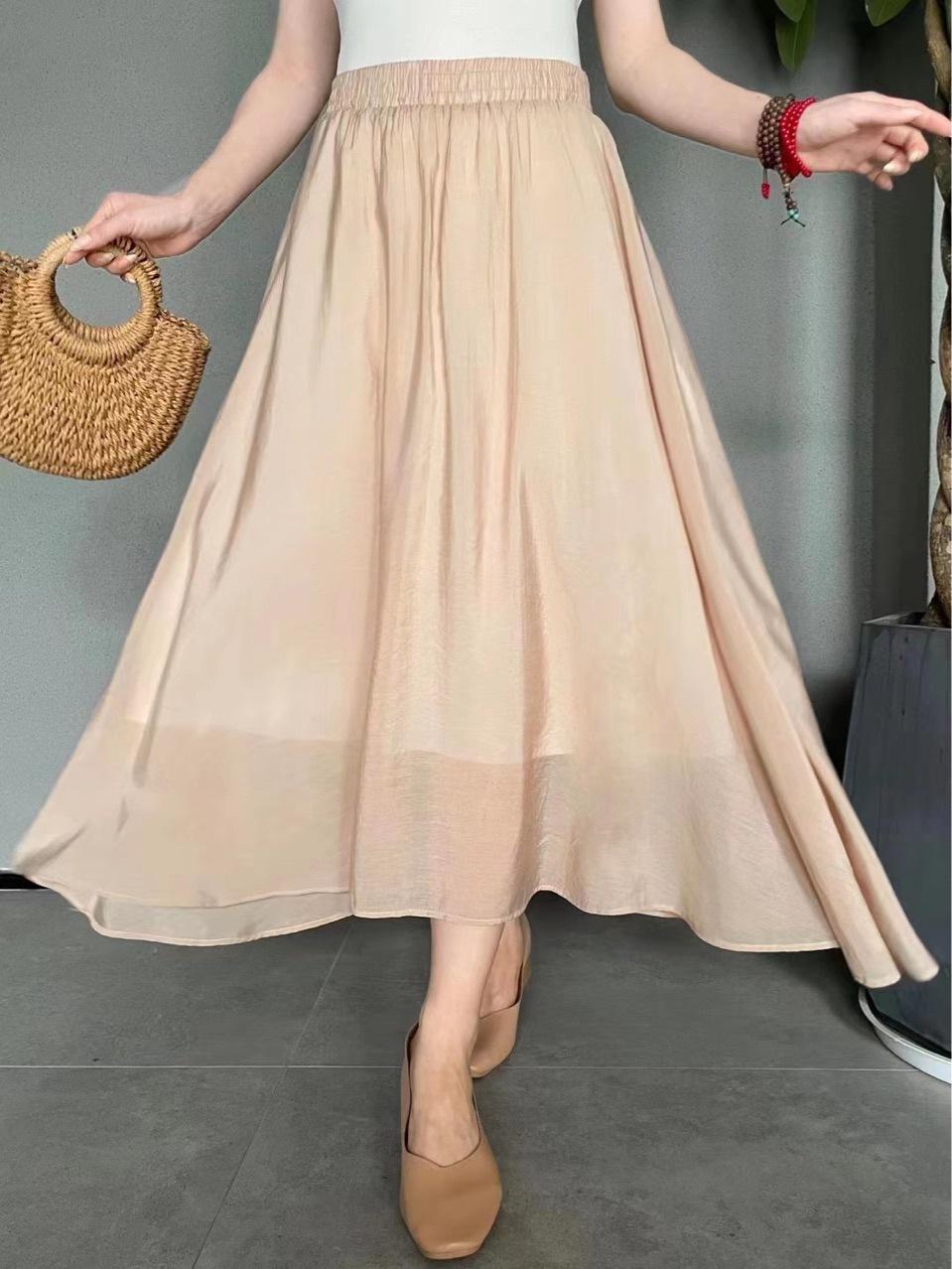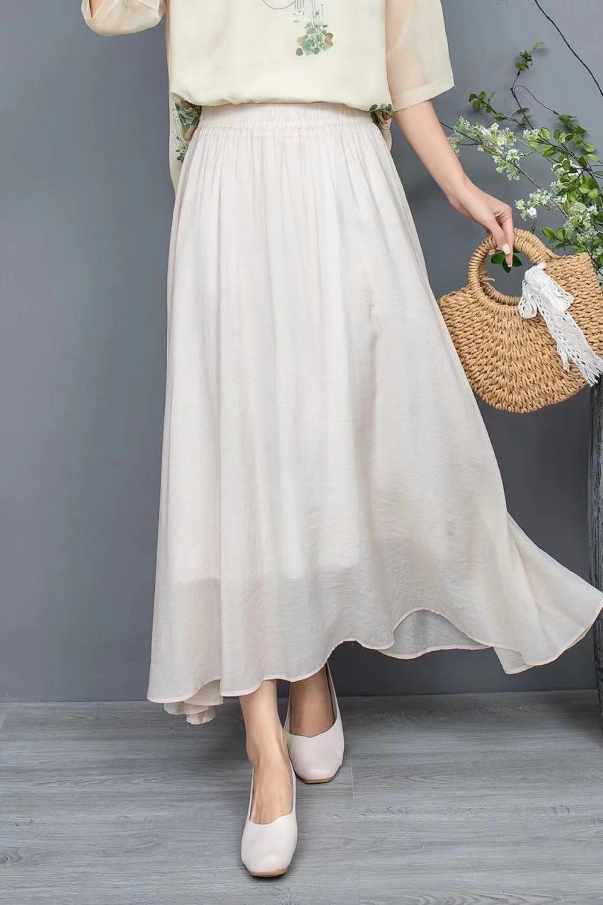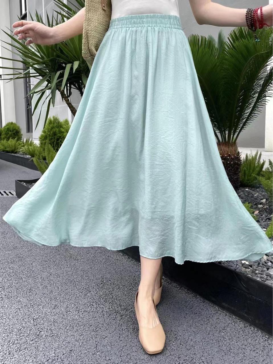 Verano Nuevo Diseño Nicho Estilo Suave Falda para Mujer con Cintura Alta y Falda Larga Acampanada para que las Personas Pequeñas Luzcan Delgadas