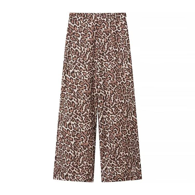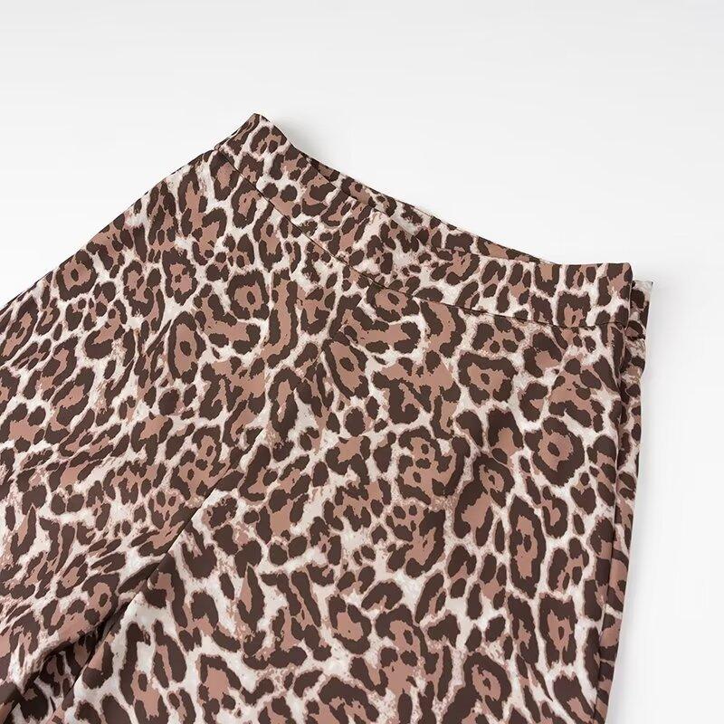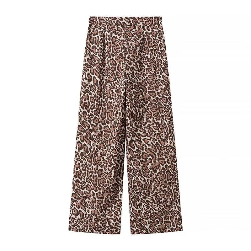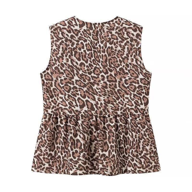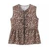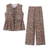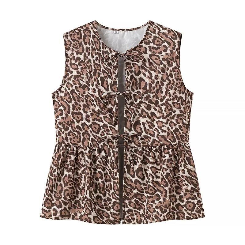 Chaleco sin mangas con cordones y estampado de leopardo nuevo para mujer europeo y americano transfronterizo, traje de pantalón de talle alto ajustado con estampado de leopardo