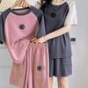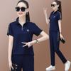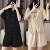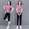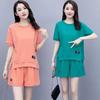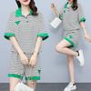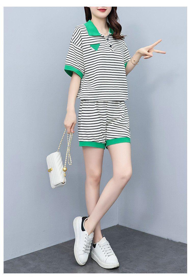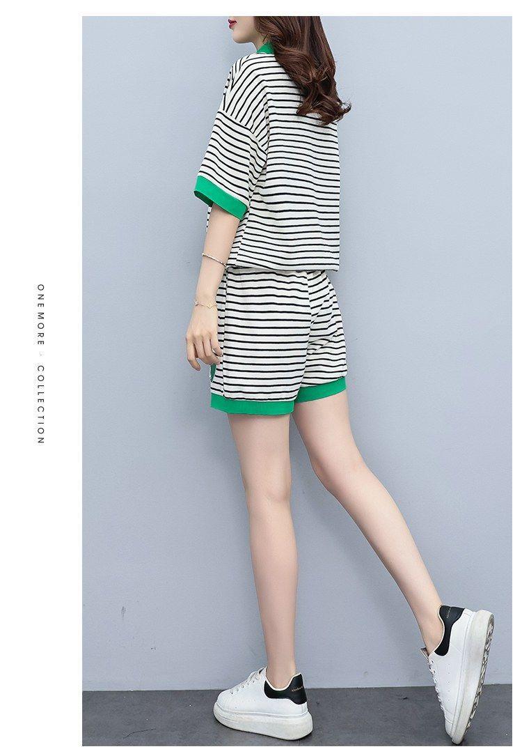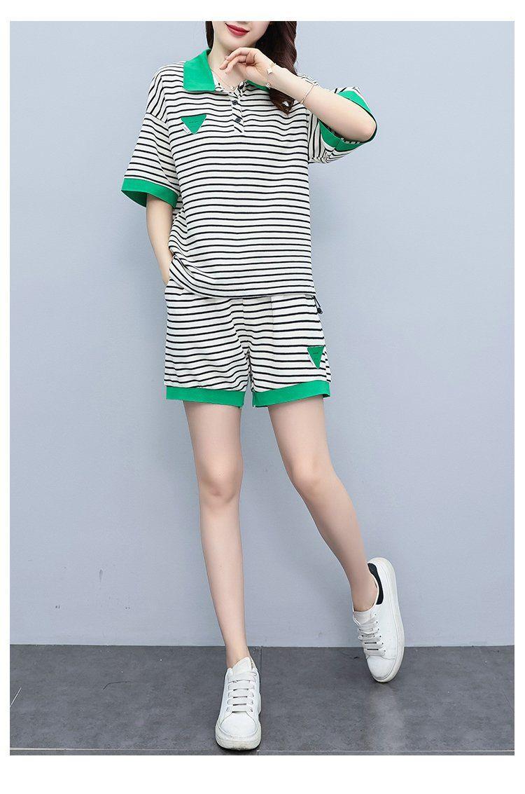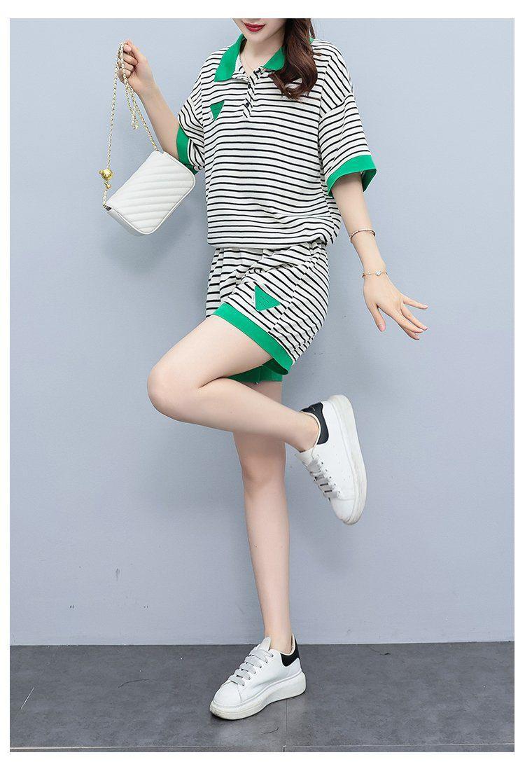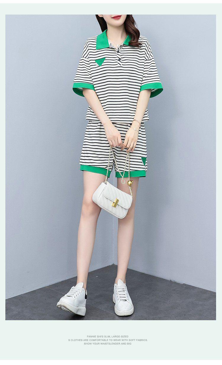 Traje de manga corta para mujer, estilo europeo y americano, talla grande, 200 Jin, camisa polo holgada a rayas, pantalones cortos, traje de dos piezas
