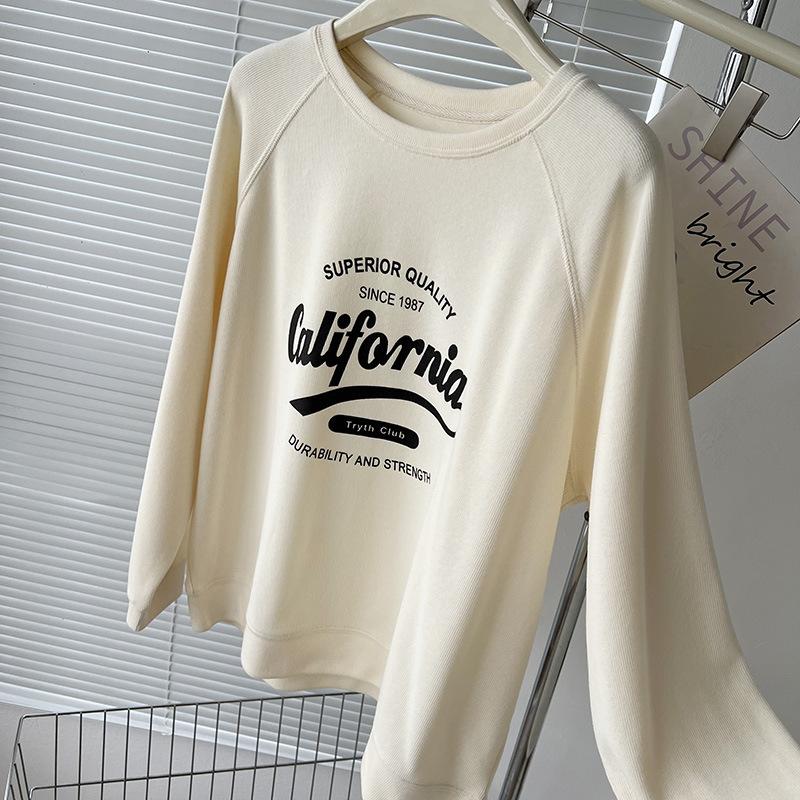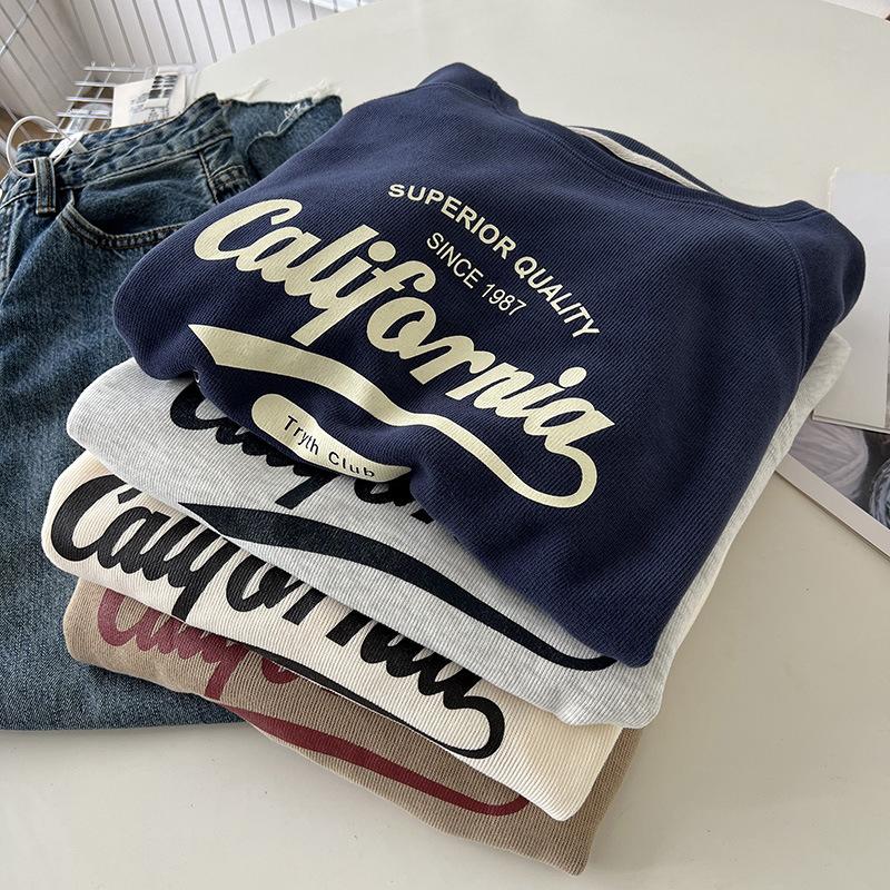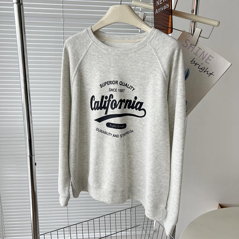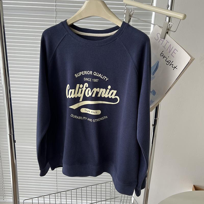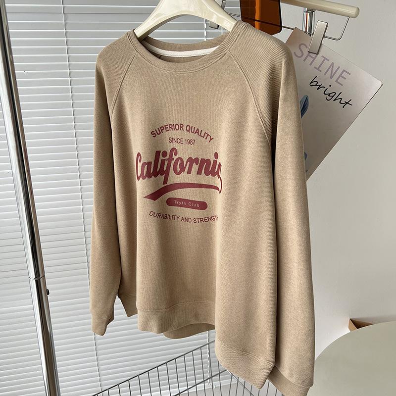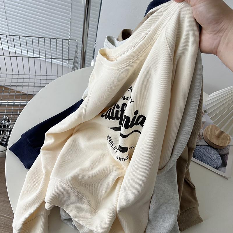 Sudadera de cuello redondo con estampado de letras para mujer 2023 Otoño Nuevo Estilo Perezoso Oversize Holgada Abrigo Top de Estudiante