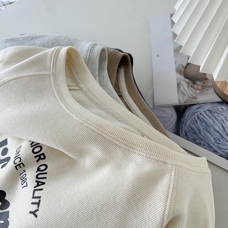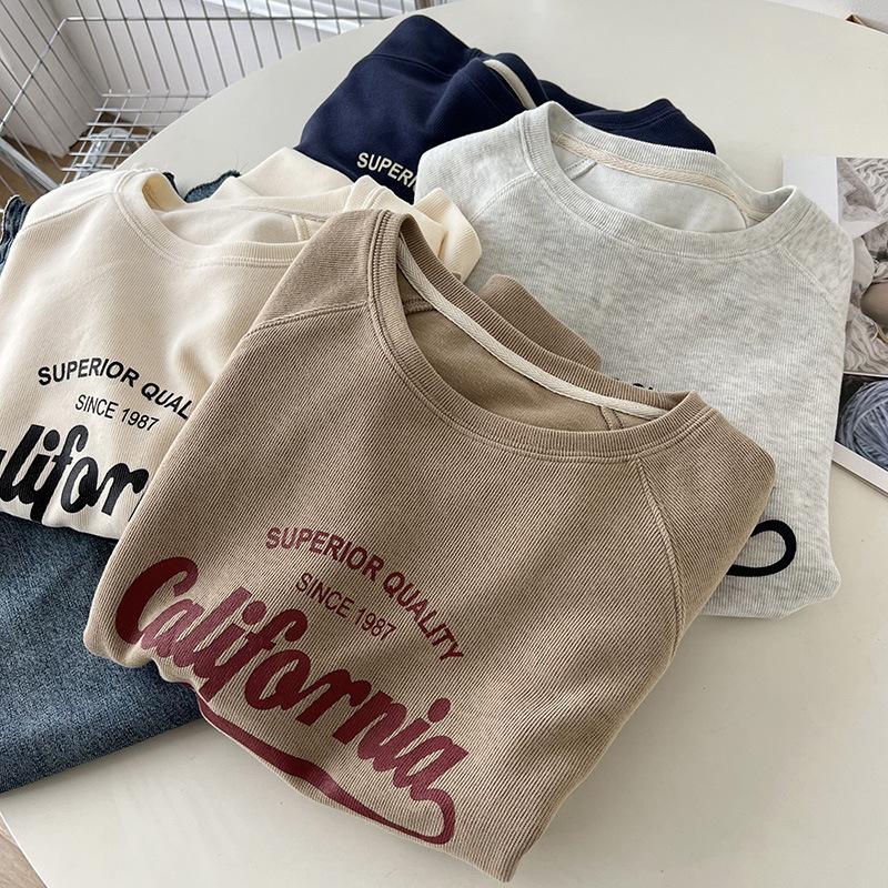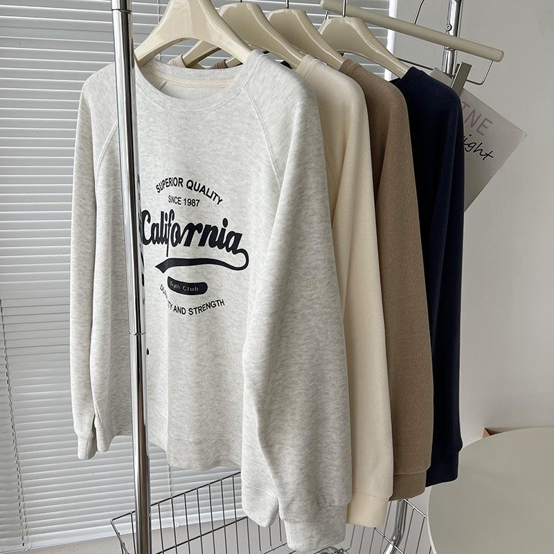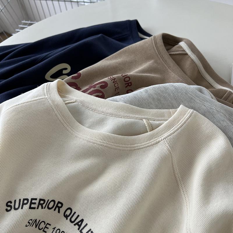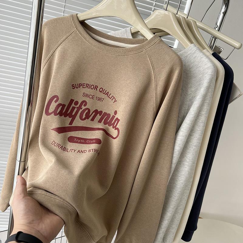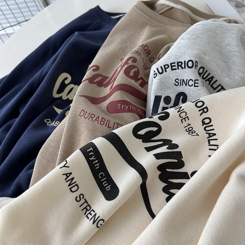 Sudadera de cuello redondo con estampado de letras para mujer 2023 Otoño Nuevo Estilo Perezoso Oversize Holgada Abrigo Top de Estudiante