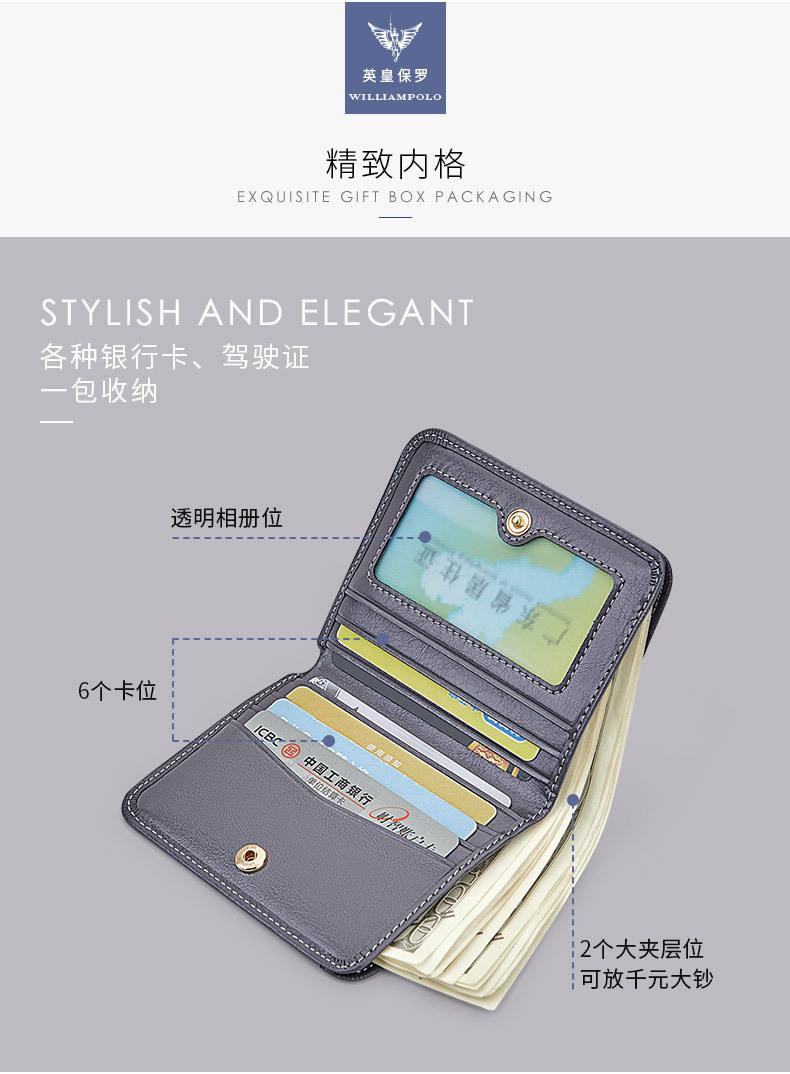 Cartera Emperor Paul para Mujer Cartera de Cuero Genuino para Mujer Monedero Casual para Mujer Cartera Compacta Ligera de Alta Calidad para Mujer