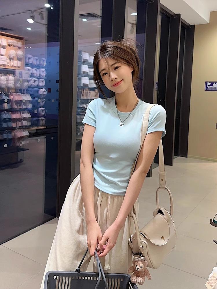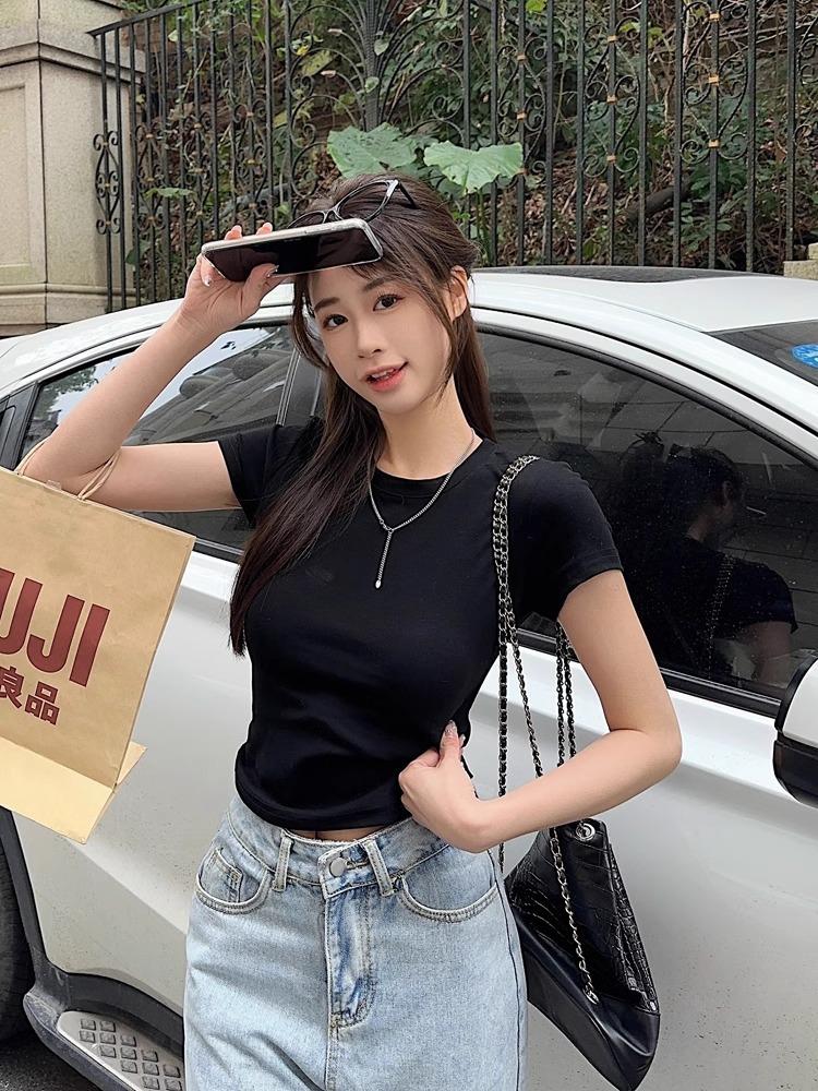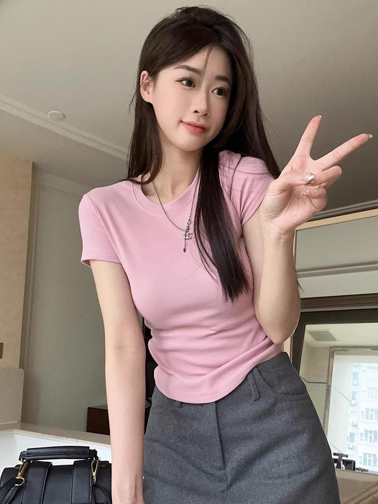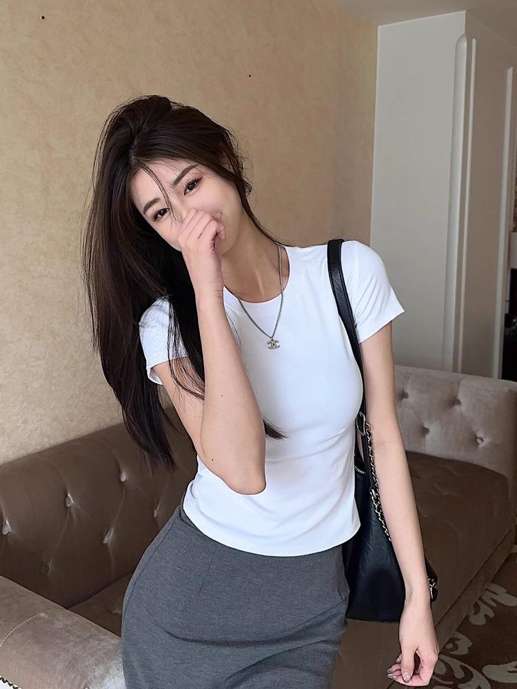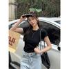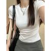 Camiseta Blanca de Manga Corta para Mujer 2025 Verano Nuevo Slim y Entallada Sexy Top Corto de Hombro Derecho