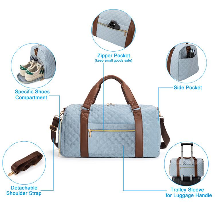 Nueva bolsa de equipaje de fitness para mujer, impermeable, con separación seca y húmeda, multifuncional, de gran capacidad, para viajes y deportes.