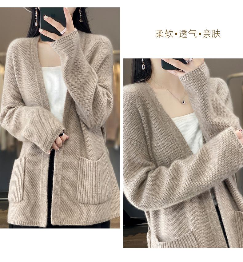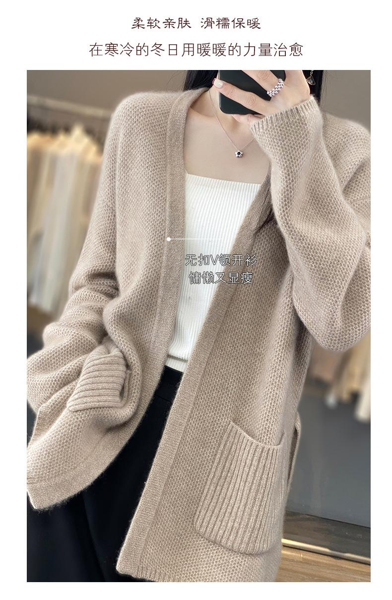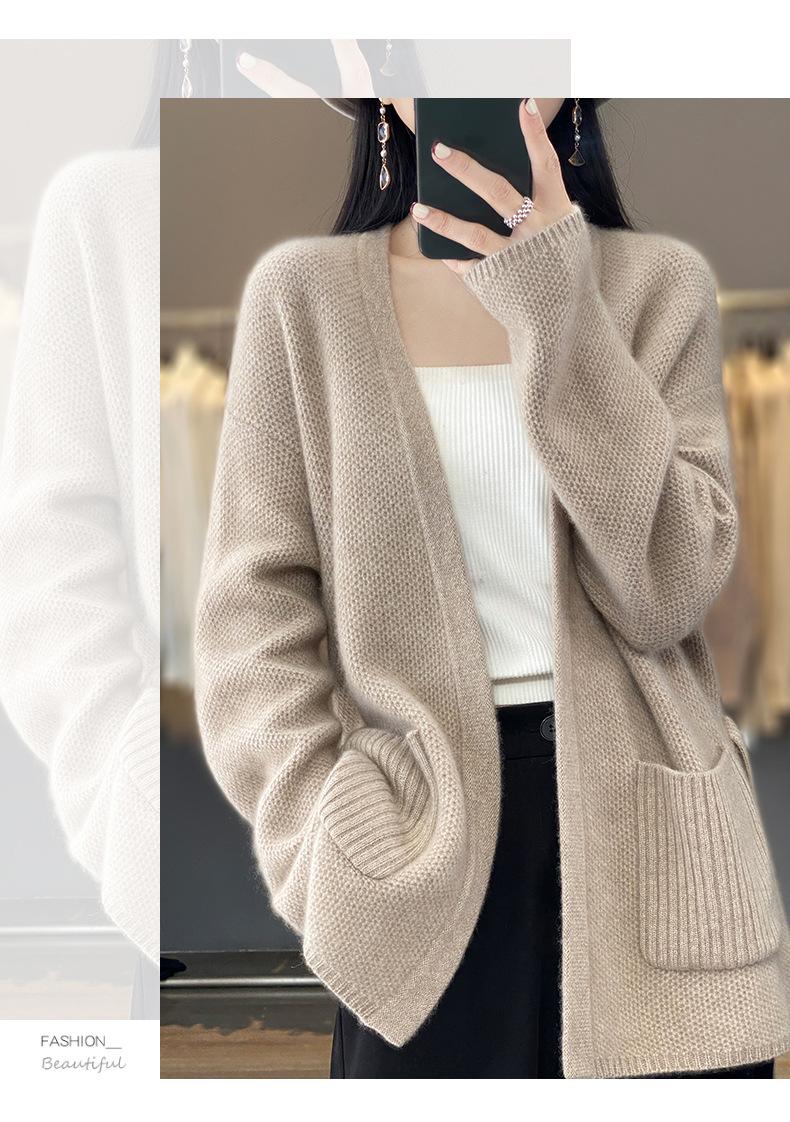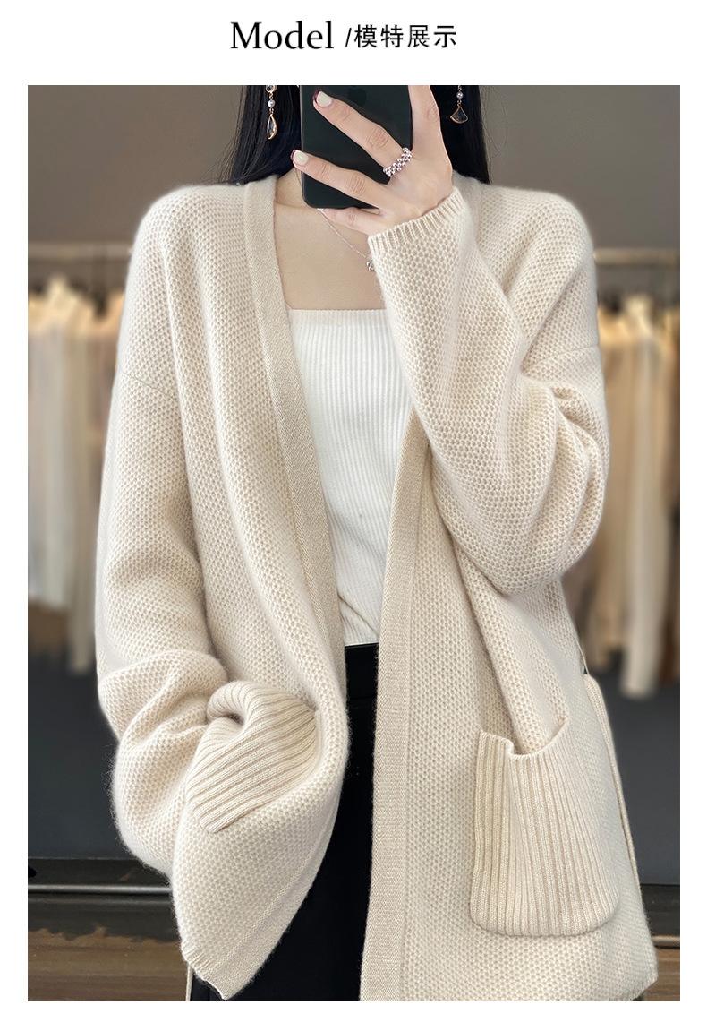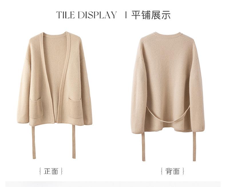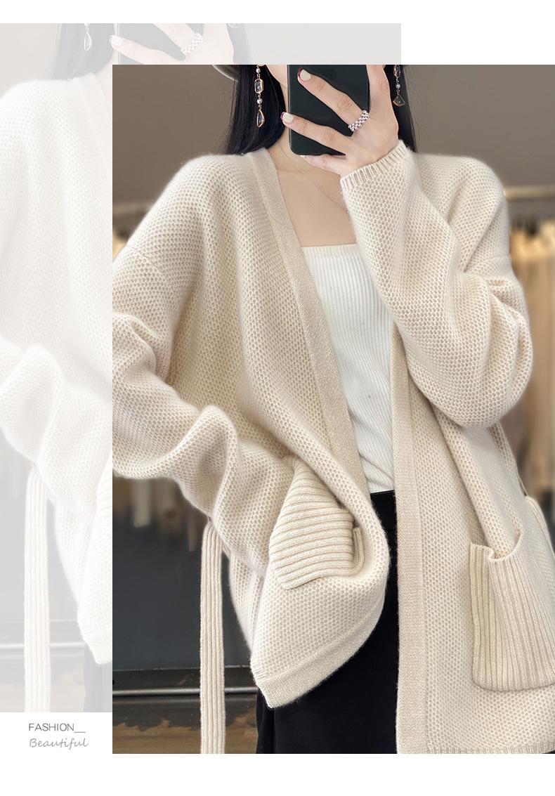Abrigo tipo cárdigan de otoño e invierno de longitud media de alta calidad para mujer, abrigo de punto holgado de estilo perezoso con cordones y sin hebillas, combina con todo