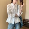 Camisa de gasa con diseño de sentido nuevo estampado 2 023, camisa de manga larga de primavera y otoño, top de temperamento holgado de moda coreana