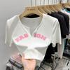 Camiseta de manga corta con estampado de letras en los hombros para mujer, diseño de verano, estilo americano, holgada, talla pequeña