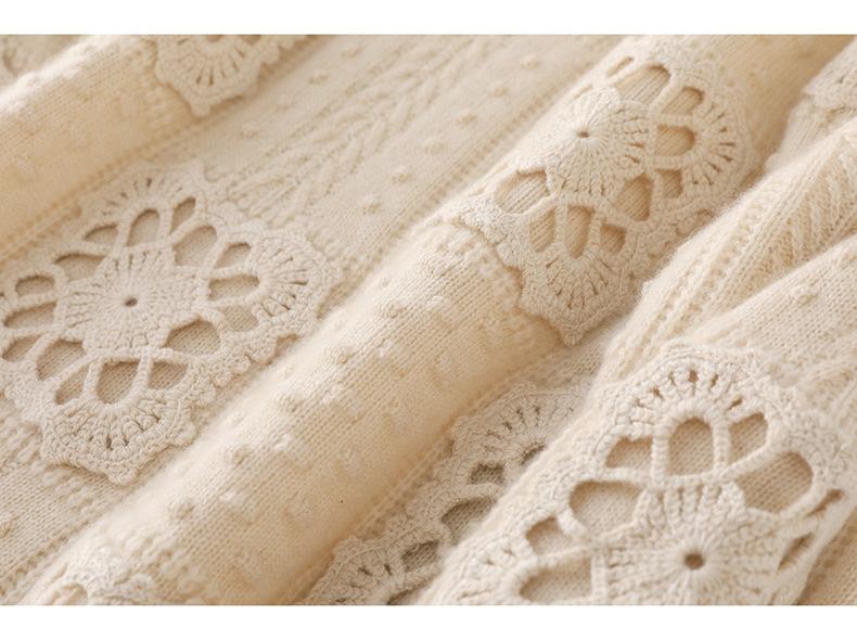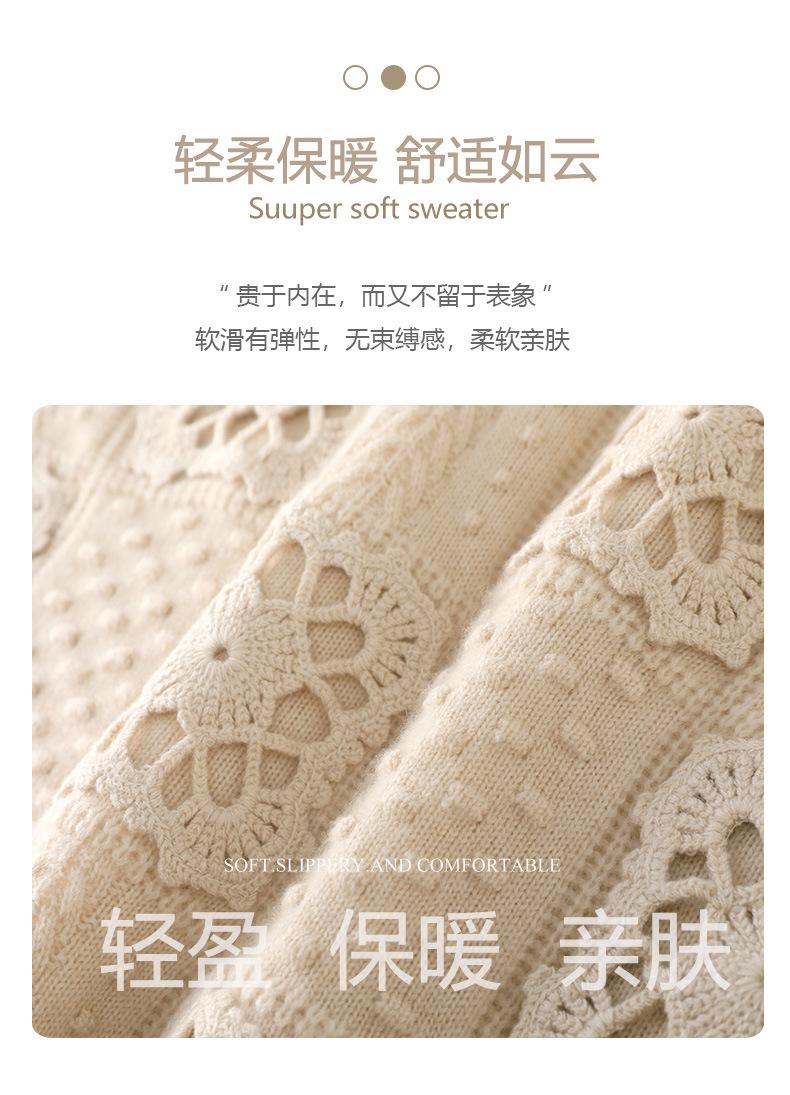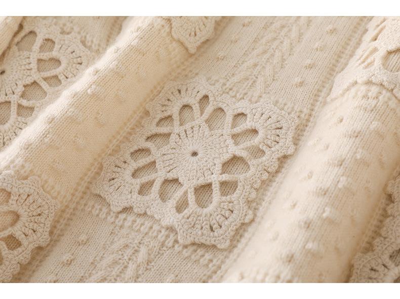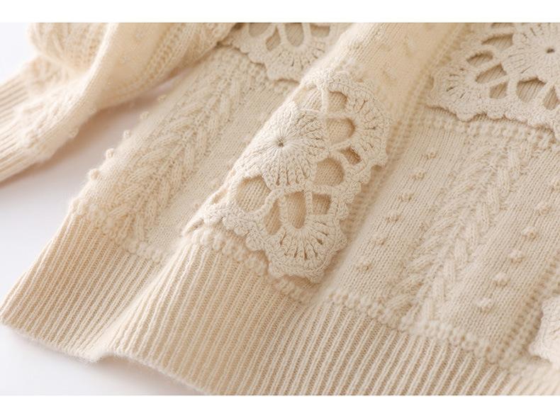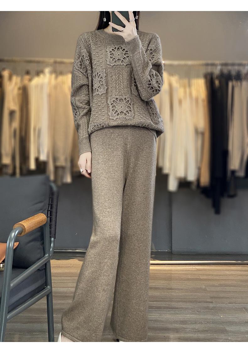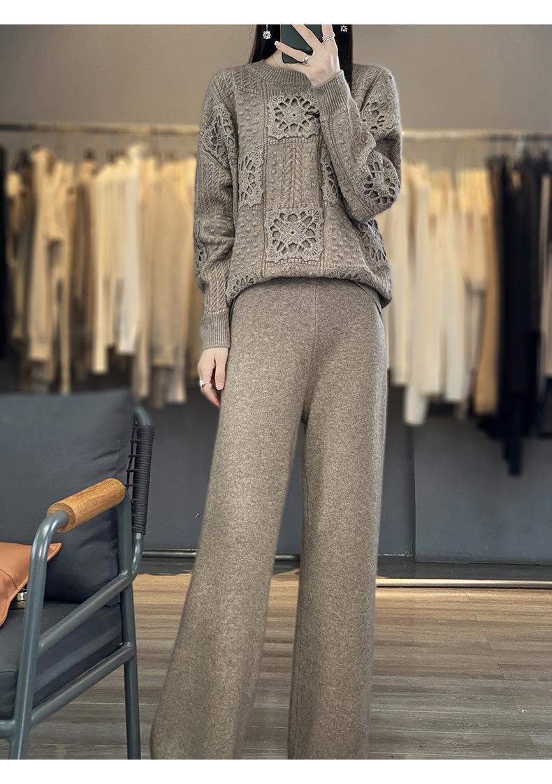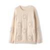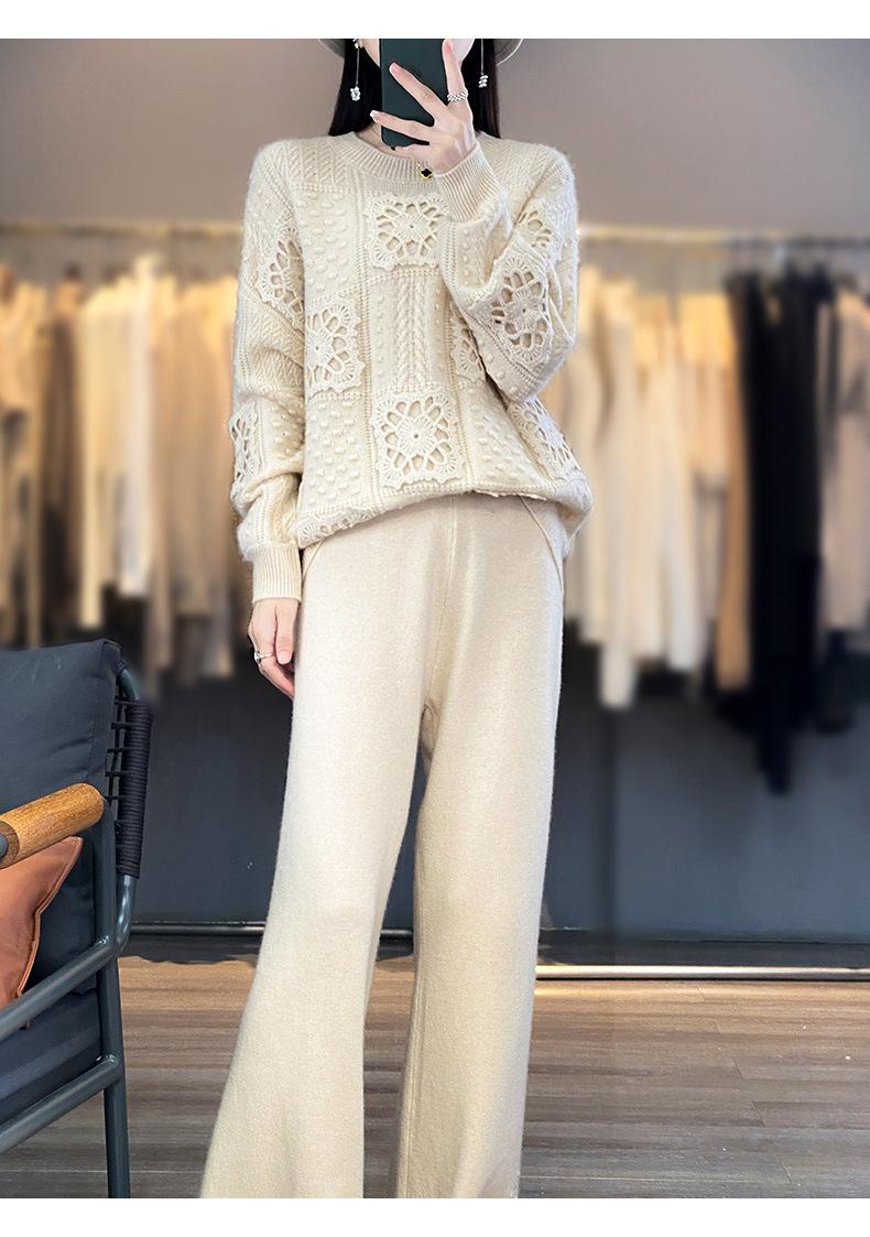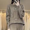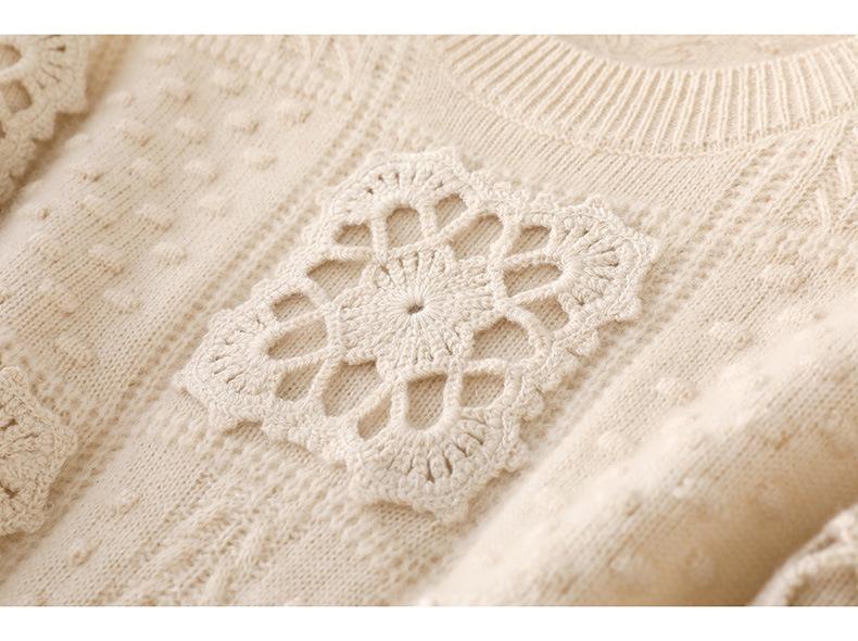 Suéter de lana pura para mujer, cuello redondo, hecho a mano, tejido a crochet, holgado, estilo perezoso, camisa de punto grueso, de moda