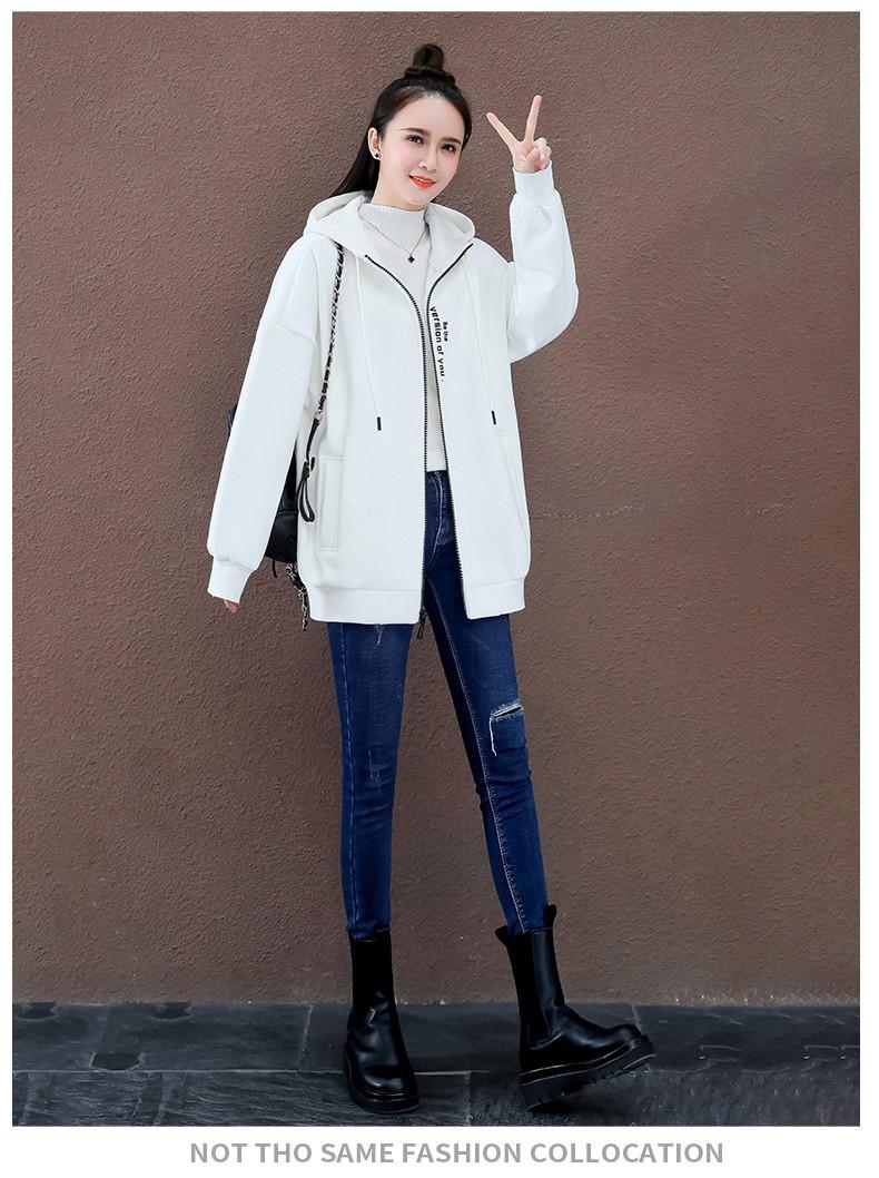 Suéter con capucha de estilo perezoso para mujer, otoño e invierno 2023, nuevo cárdigan con cremallera gris estilo coreano engrosado con forro polar