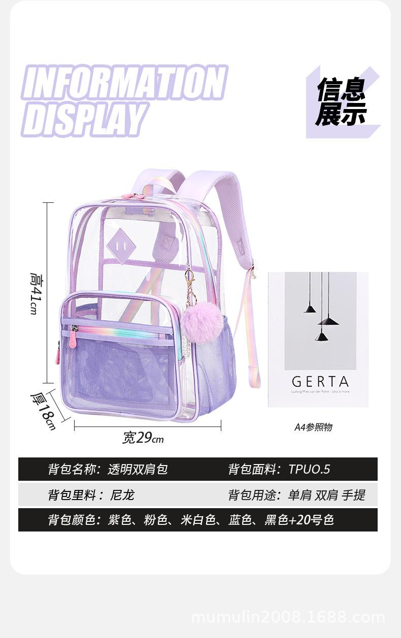 Mochila transparente impermeable para estudiantes de primaria, mochila de gran capacidad, suministro transfronterizo de Amazon
