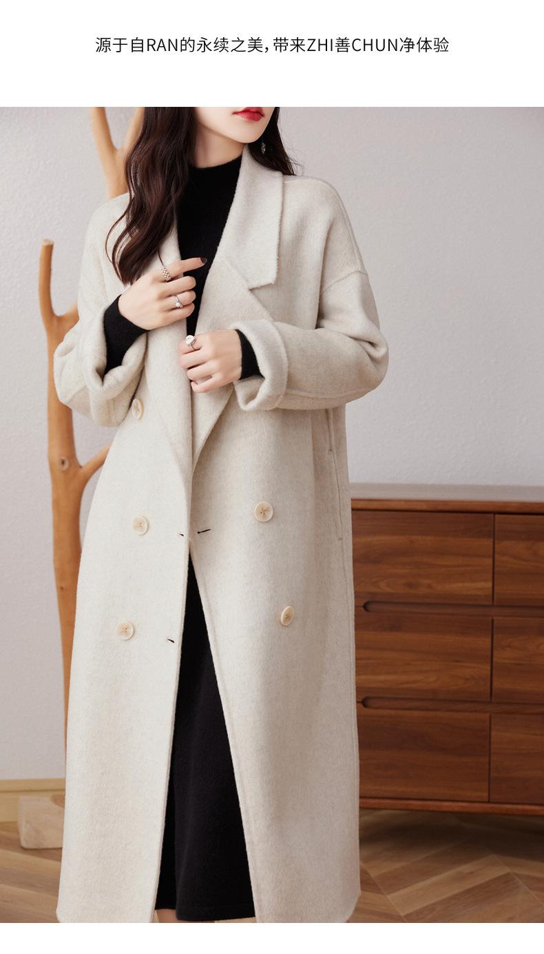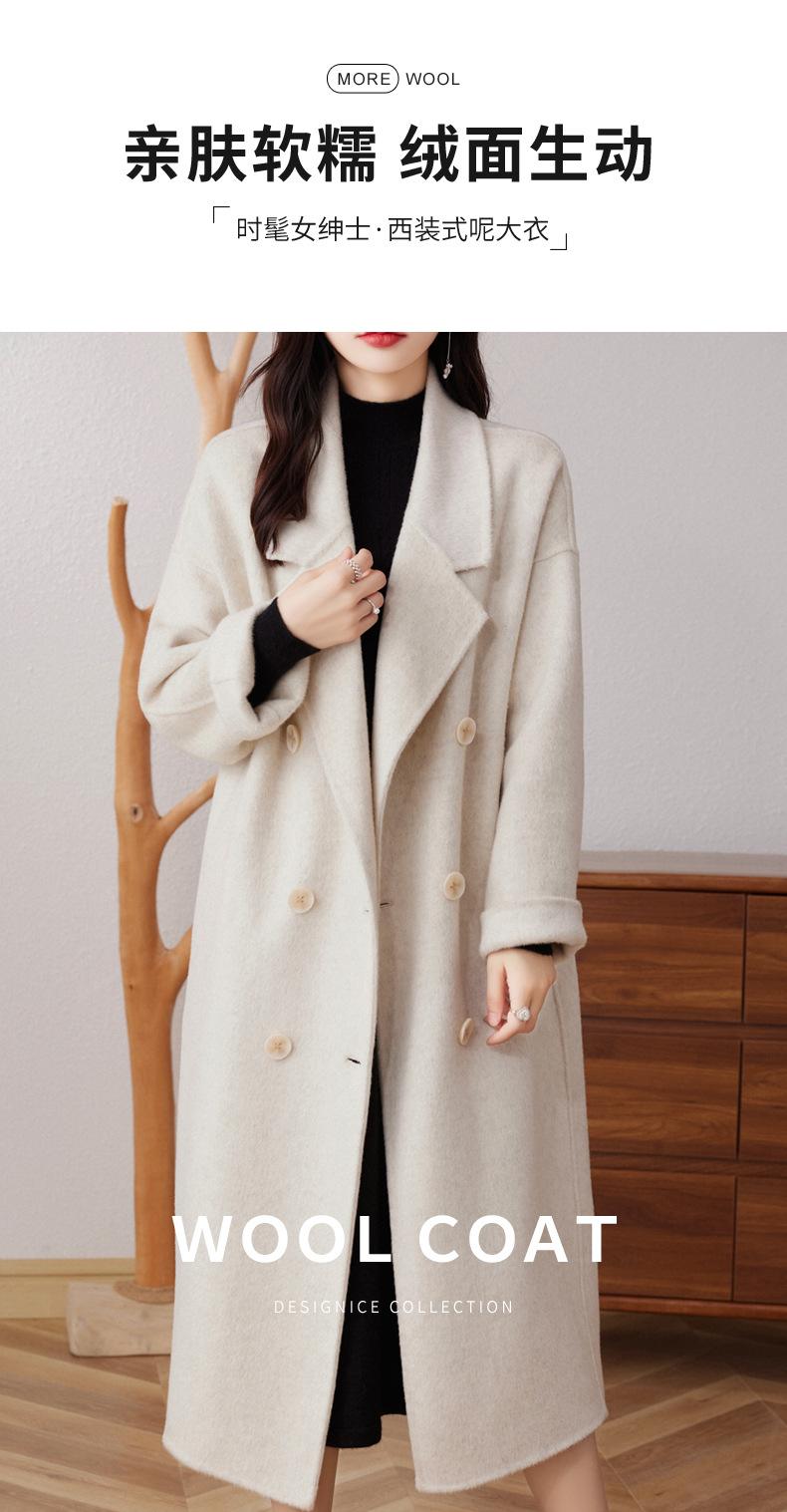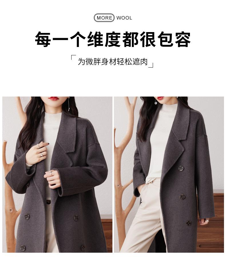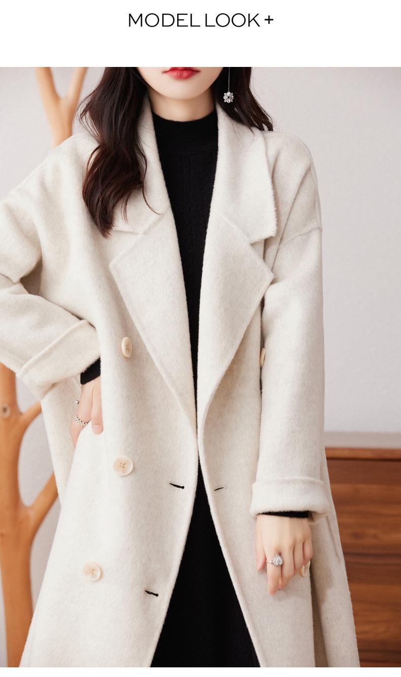 Abrigo de Lana de Doble Cara para Mujer de Largo Medio 2024 Otoño e Invierno Nuevo Estilo Coreano Estilo Commuter Suelto Hasta la Rodilla Estilo Traje Abrigo de Lana