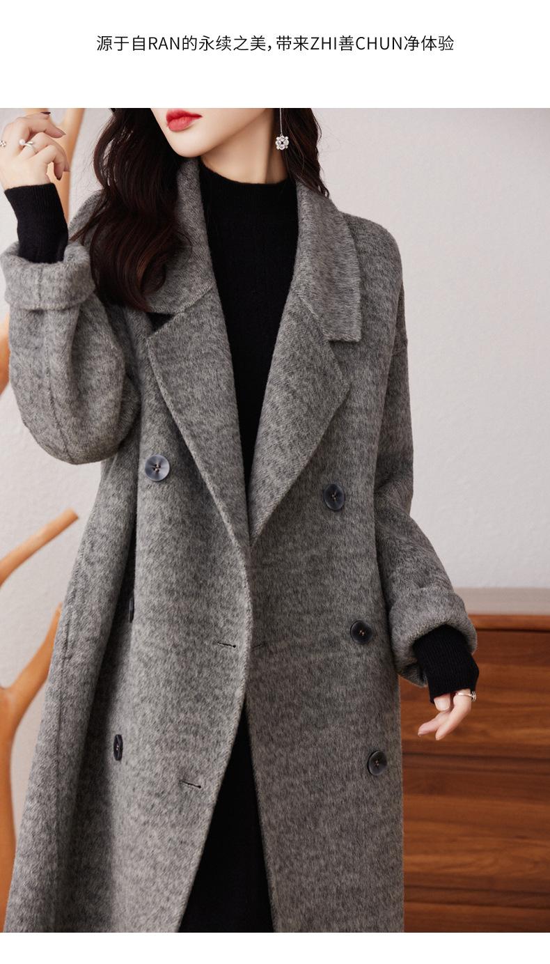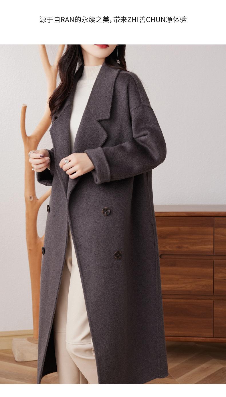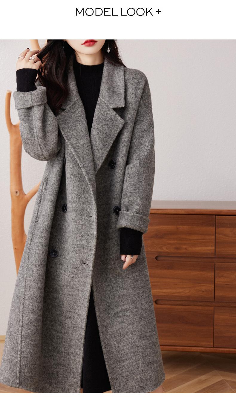 Abrigo de Lana de Doble Cara para Mujer de Largo Medio 2024 Otoño e Invierno Nuevo Estilo Coreano Estilo Commuter Suelto Hasta la Rodilla Estilo Traje Abrigo de Lana