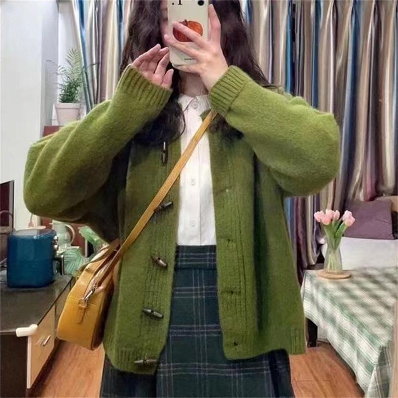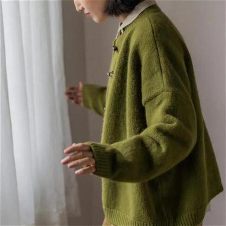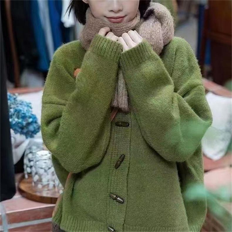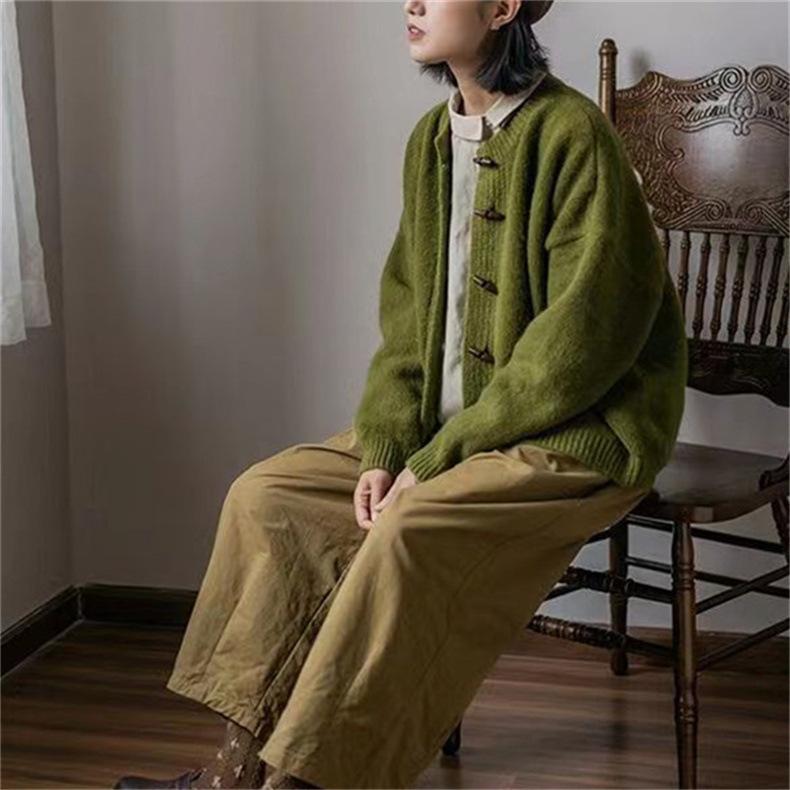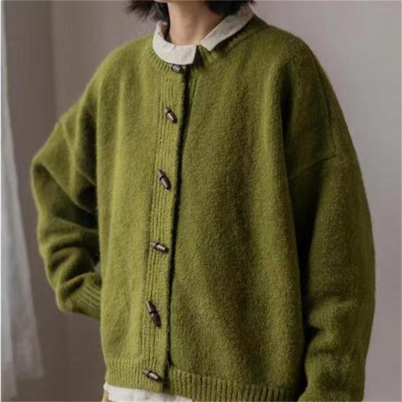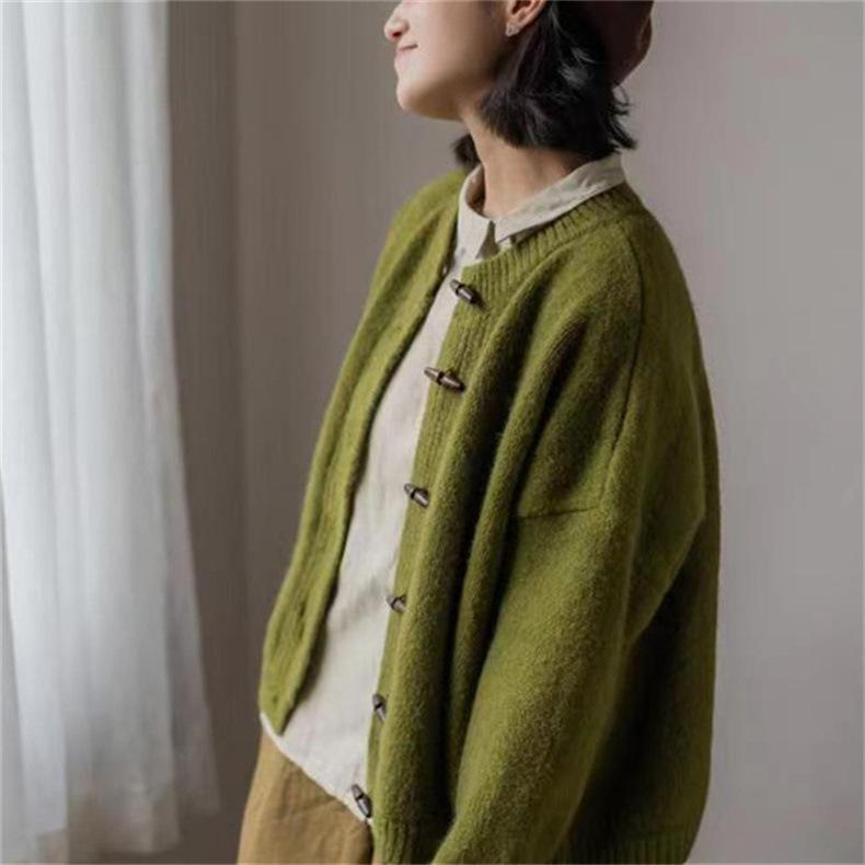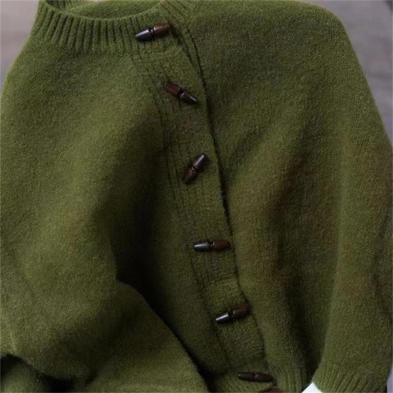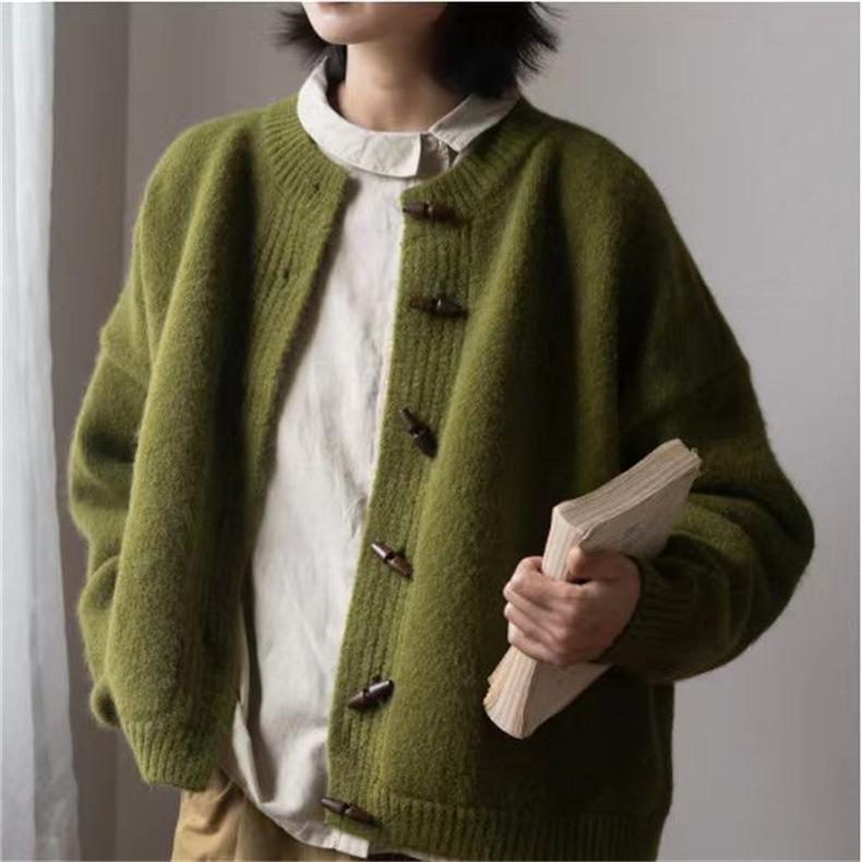 Suéter Cárdigan con Hebilla de Esquina para Mujer Otoño Nuevo Suelto Retro Grueso Estilo Lazy Suave Delicado Ceroso