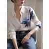 Camisa de Seda para Mujer 2024 Primavera y Verano Nuevo Diseño Top Holgado Ropa Exterior de Manga Larga Nicho Camisa Estampada