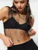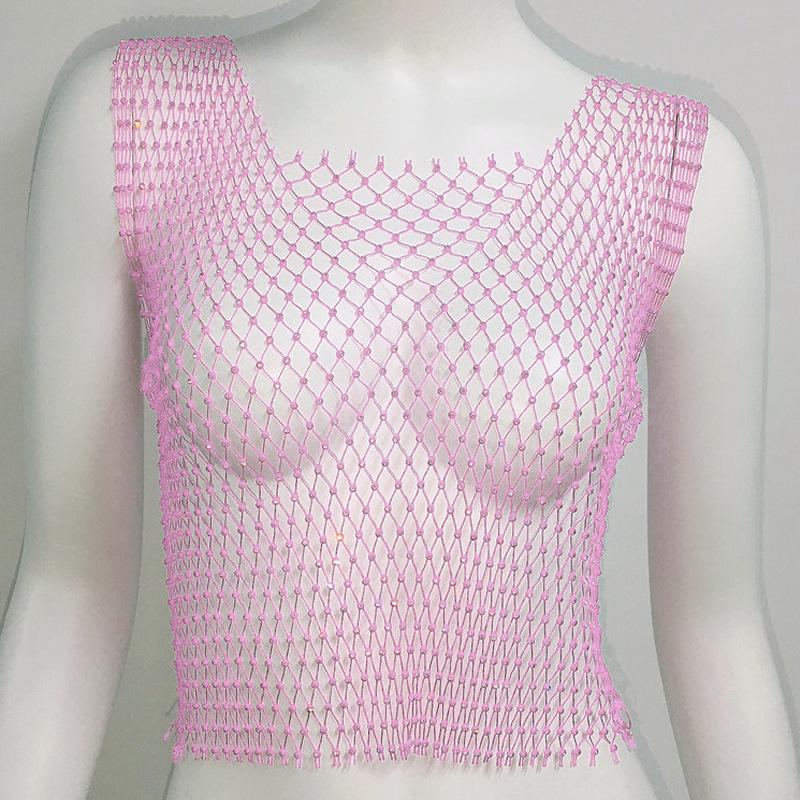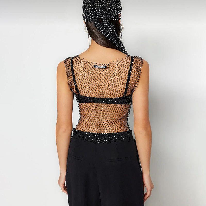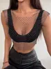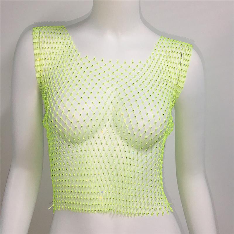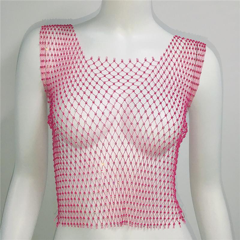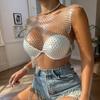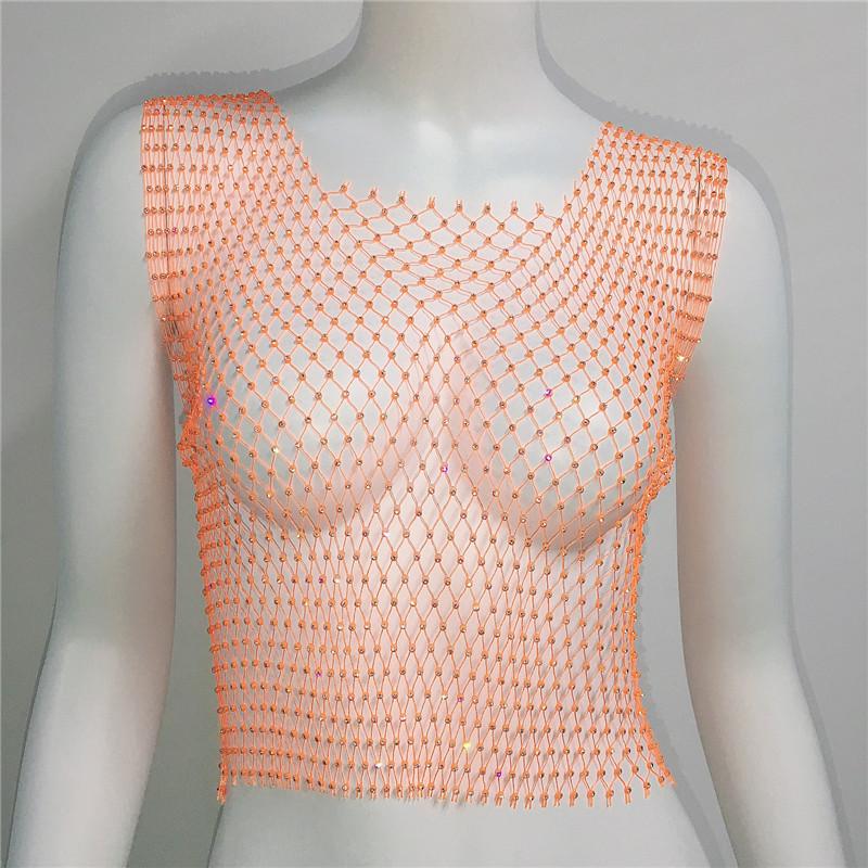 Conjunto de Belleza PU Chaleco Transfronterizo Europeo y Americano Sexy Top de Red con Pedrería Chaleco de Malla Popular con Diamantes de Imitación para Mujer de Amazon