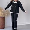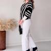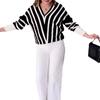 Otoño 2023, nuevo conjunto de dos piezas popular de estilo informal perezoso con cuello en V a rayas de moda transfronteriza de Amazon europea y americana para mujer