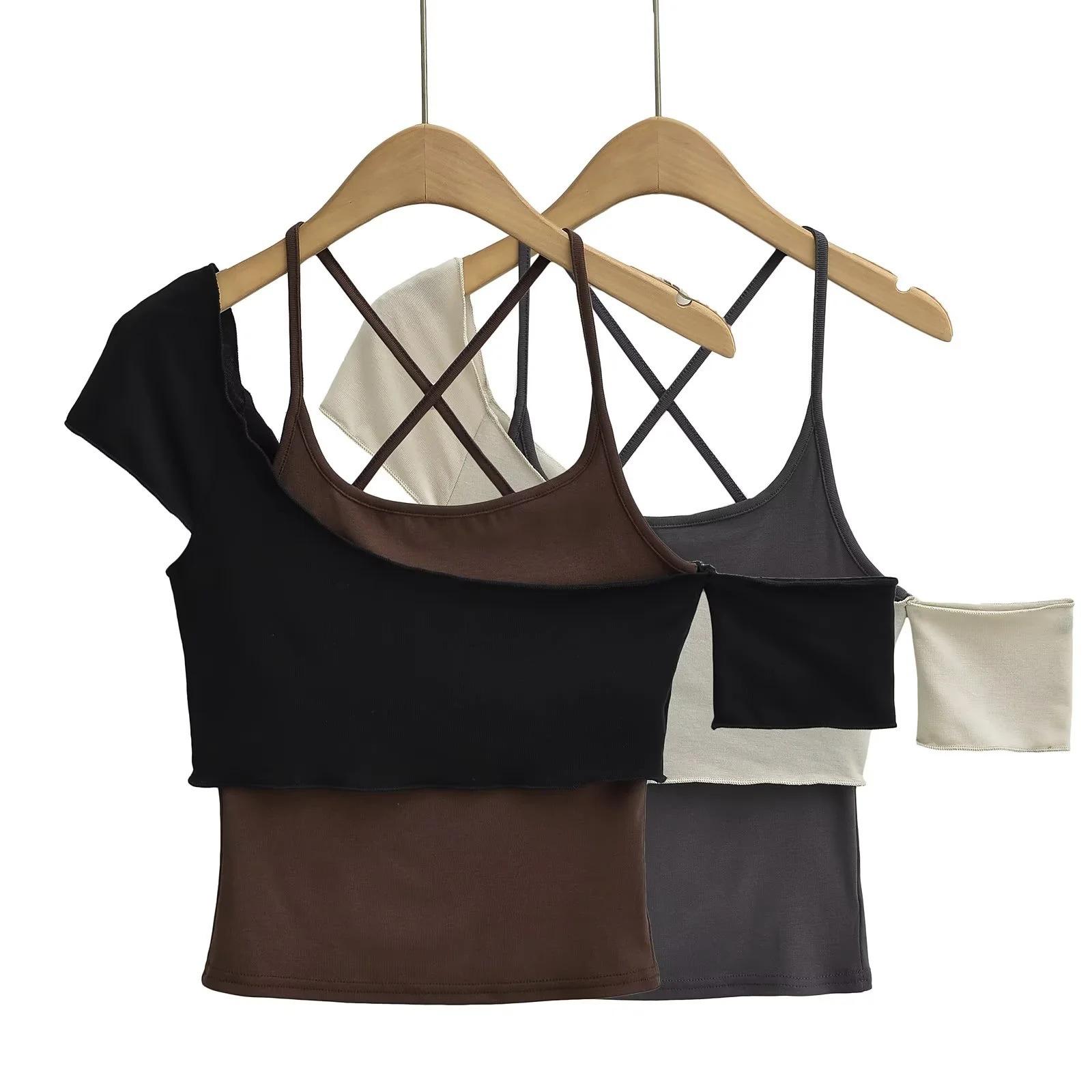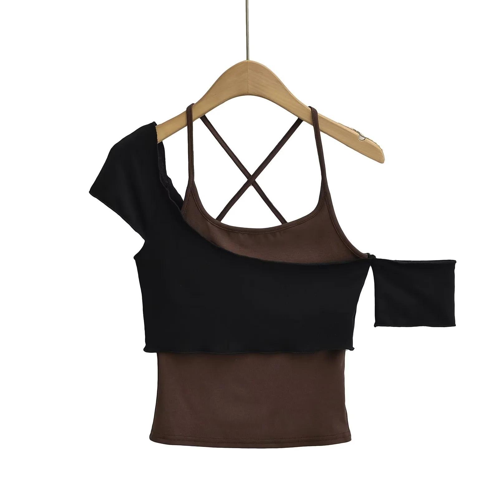Camisola sexy de dos piezas con hombros descubiertos y diseño de verano para mujer, estilo Pure Desire Hot Girl