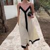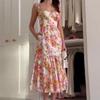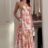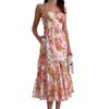 2024 Verano nuevo Europeo y Americano transfronterizo Amazon transfronterizo moda estampado cuello cuadrado cintura alta vestido de tirantes mujer