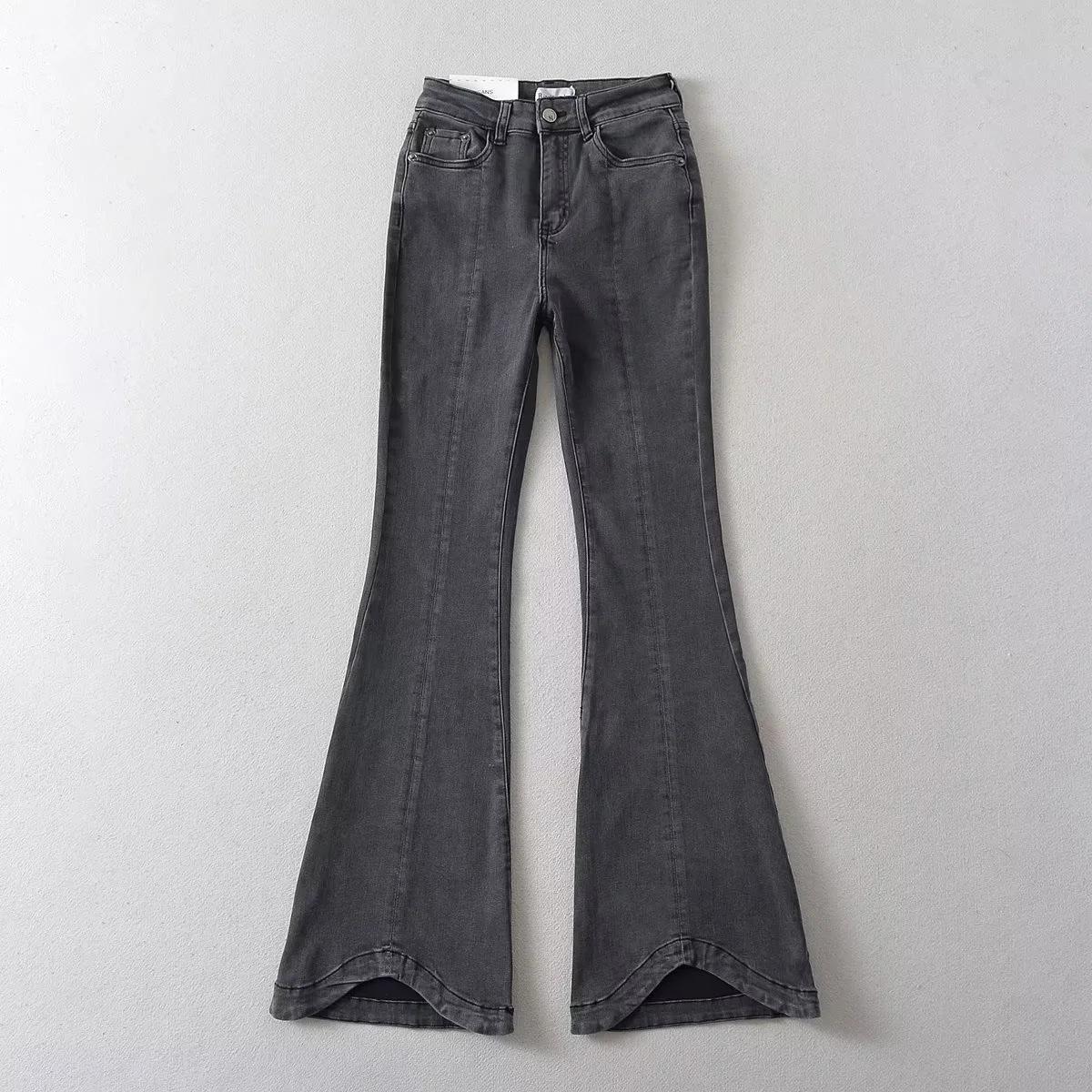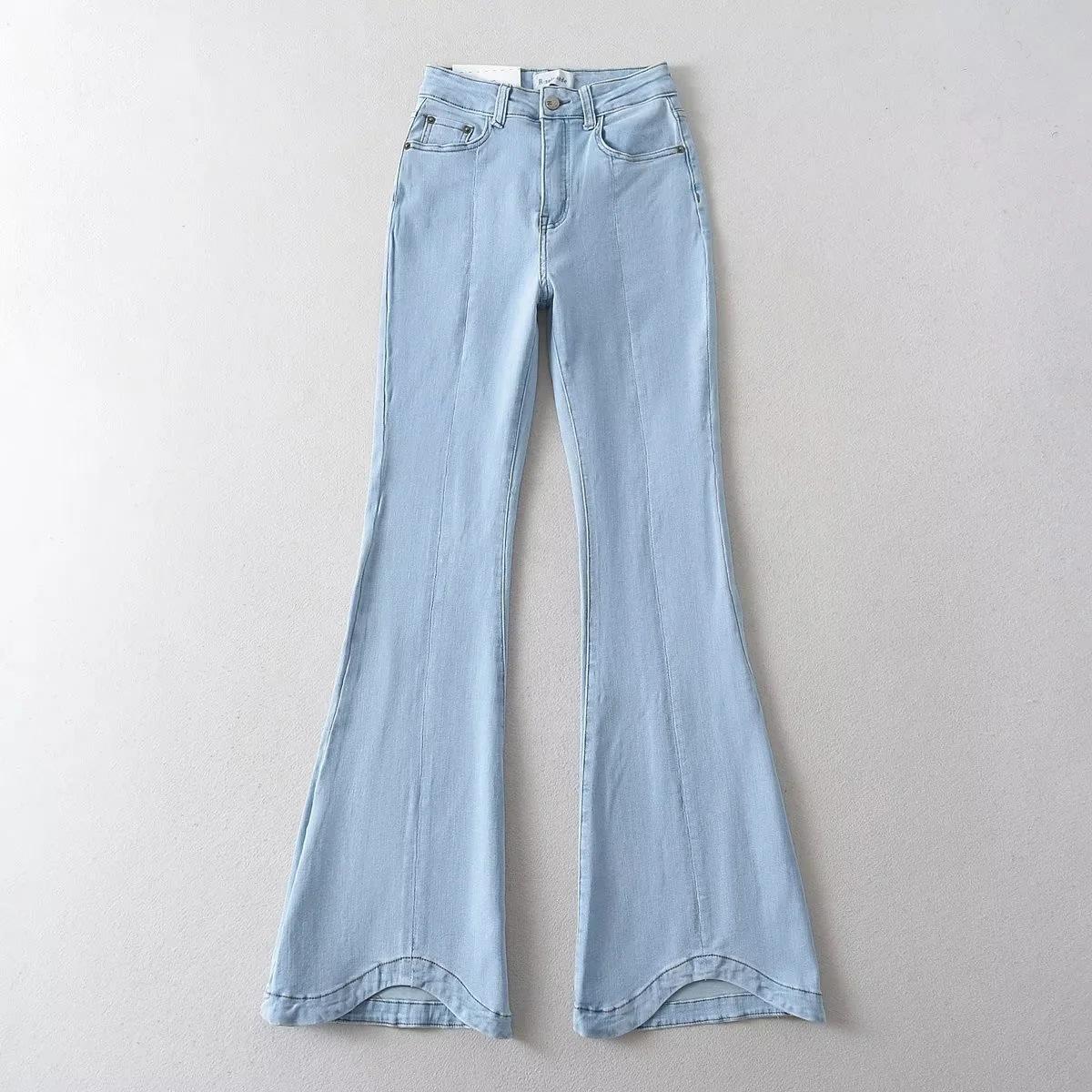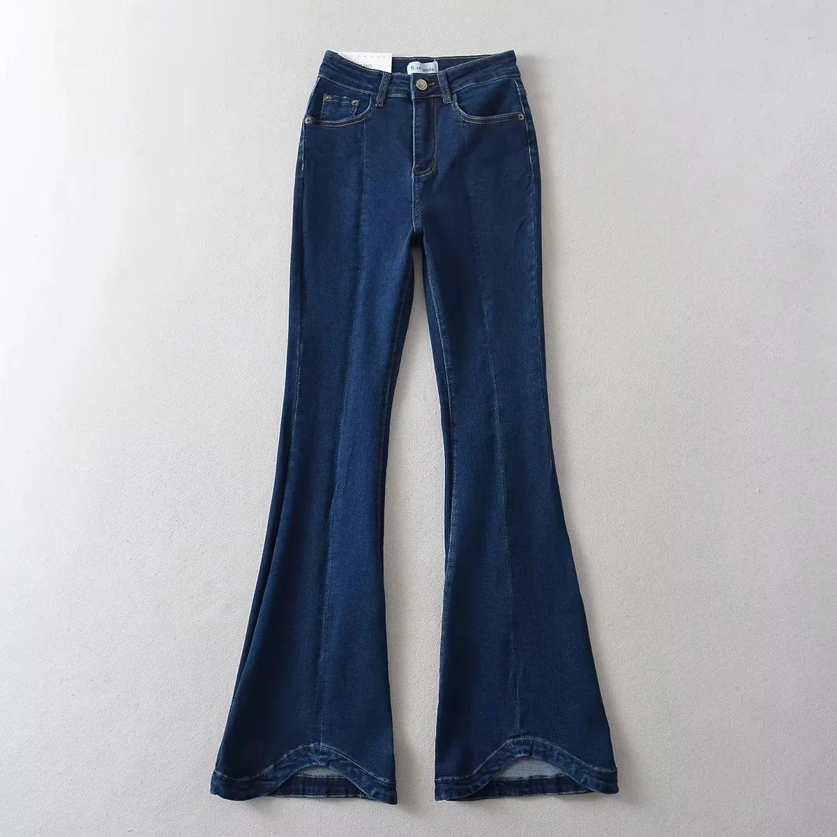 Pantalones acampanados de mezclilla adelgazantes para chica caliente americana, otoño e invierno para mujer de calle, nuevos pantalones casuales adelgazantes de cintura alta, pantalones ajustados elásticos