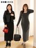 Compra Vestido Largo Ajustado de Canalé con Cuello Cuadrado y Manga Larga Tallas Grandes Runqi 8839 Vestido Sexy de Manga Larga Capa Interior al por mayor en Joom.pro