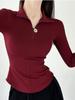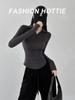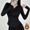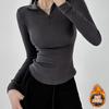 Playera de Manga Larga para Mujer 2025 Nuevo Otoño e Invierno Aspecto Adelgazante Negro Sexy Top Cuello Polo Forrado de Felpa Camiseta para Usar Debajo