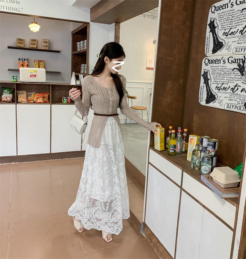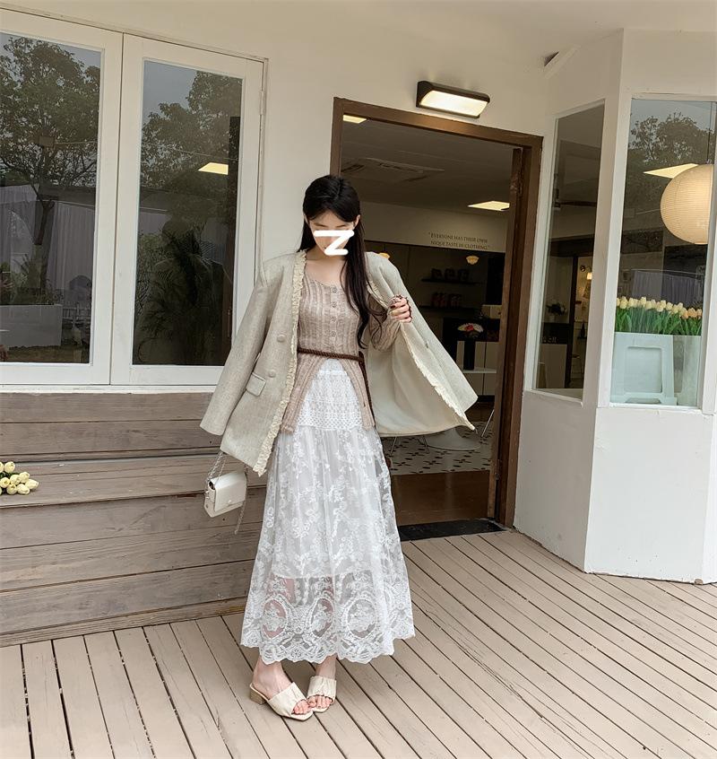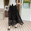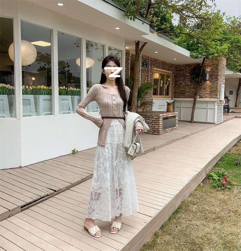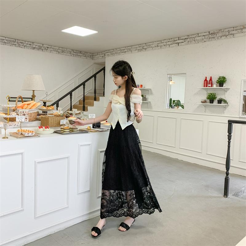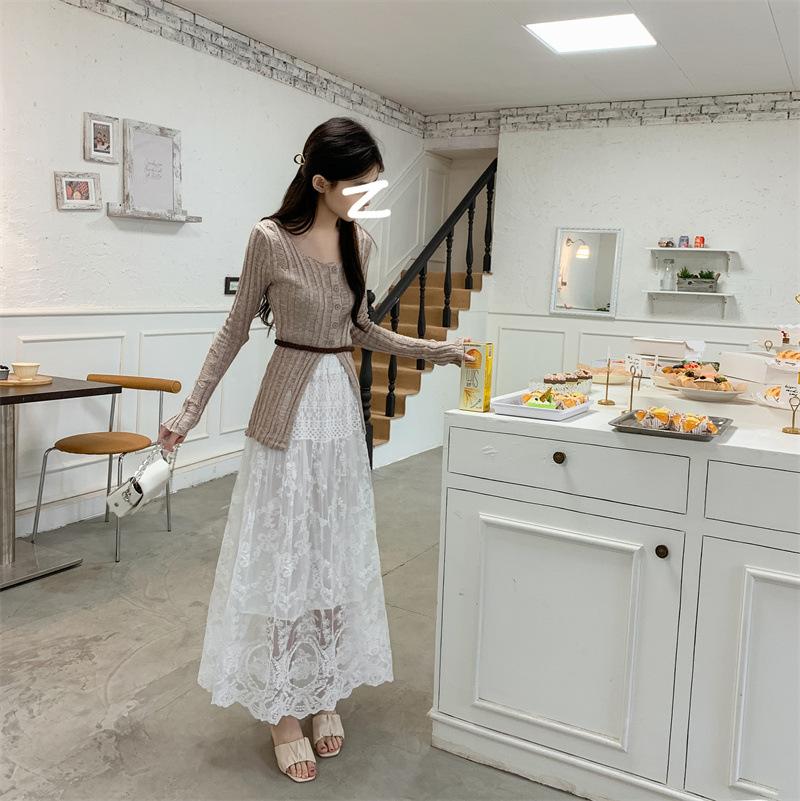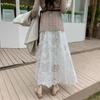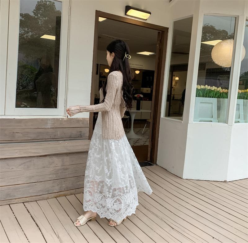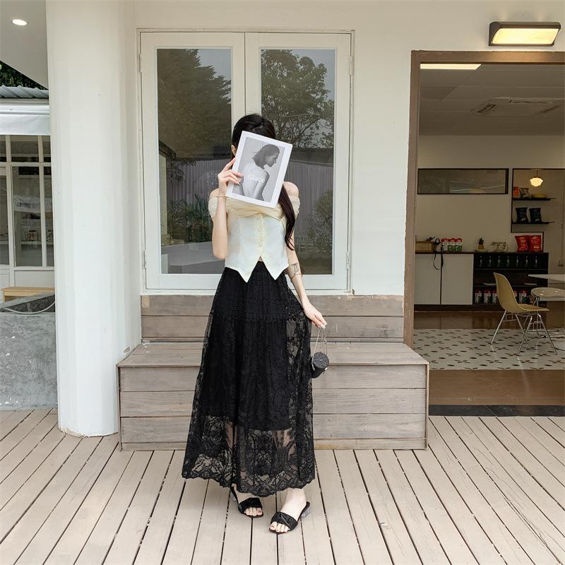 Falda de cintura alta de encaje blanco estilo francés para mujer, primavera/verano 2024, falda de corte A, falda tipo paraguas, falda elegante de longitud media y gran vuelo.