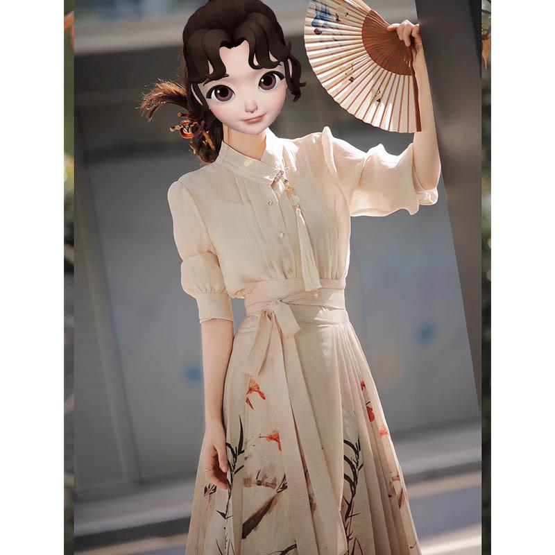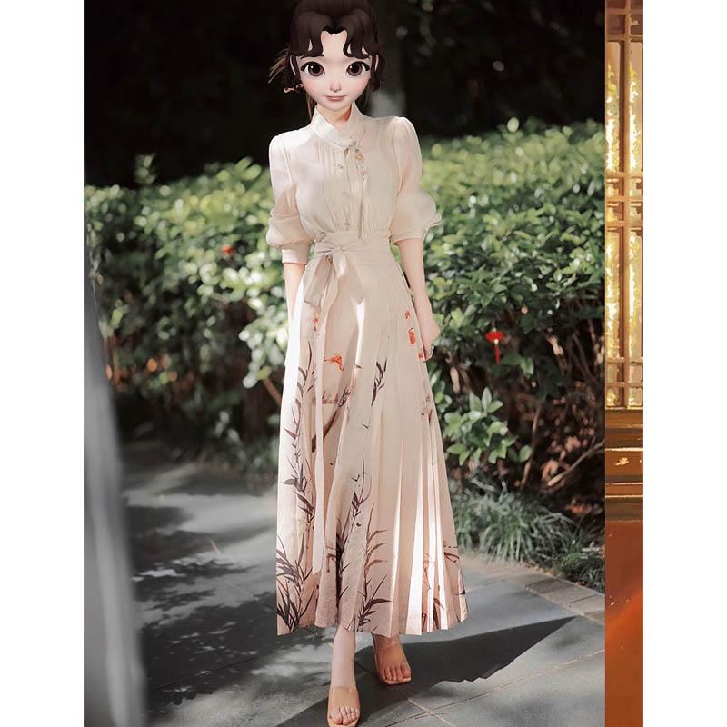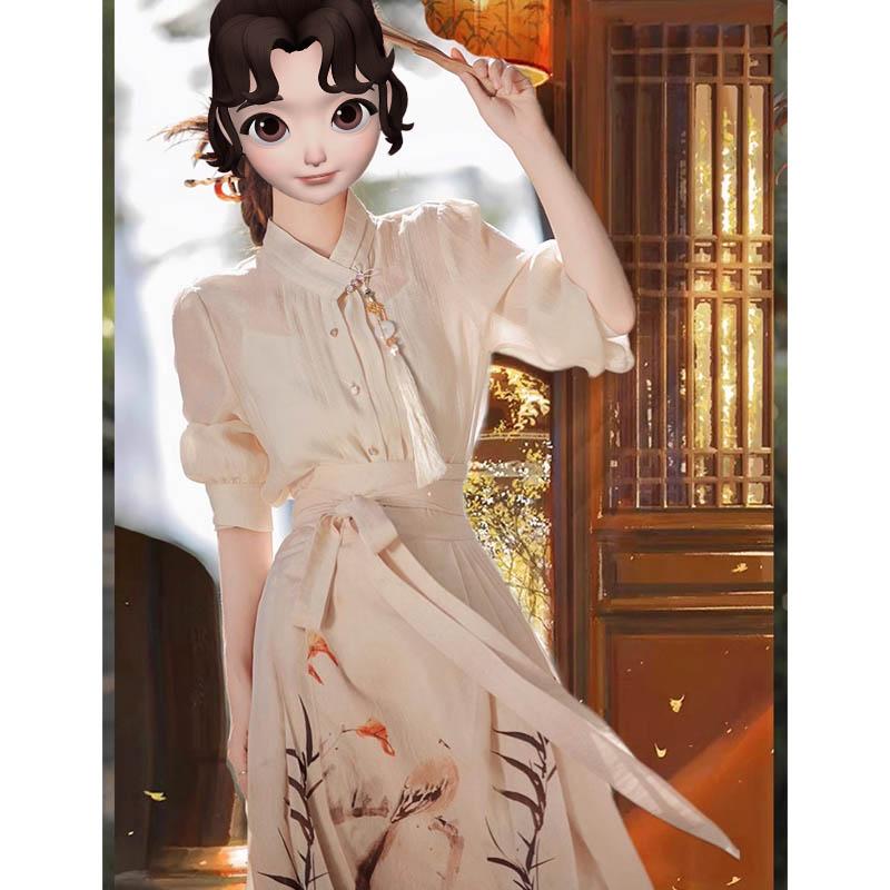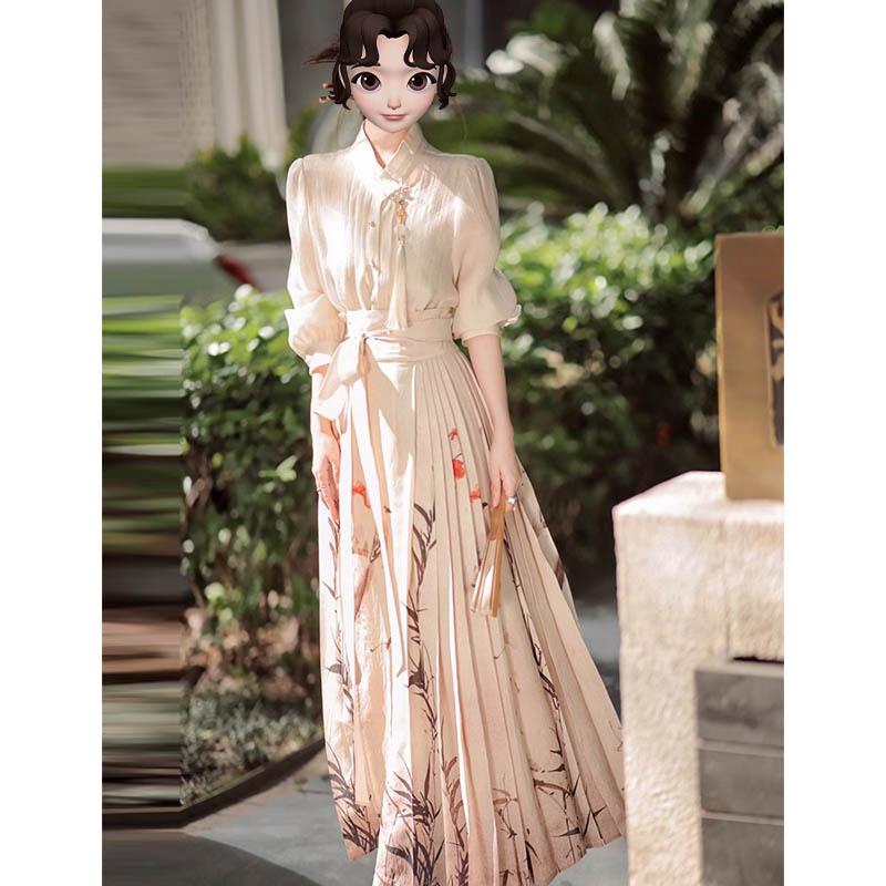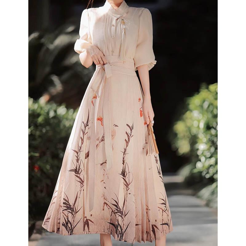 Ropa de verano Nuevo vestido de estilo chino para mujer Falda de estilo nacional Traje de dos piezas Falda con cara de caballo Vestido de verano diario con un conjunto completo