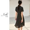 Vestido de Seda para Mujer Seda de Morera Estilo Francés Lunares Manga Corta 2025 Primavera y Verano Nuevo Elegante Retro Falda Larga