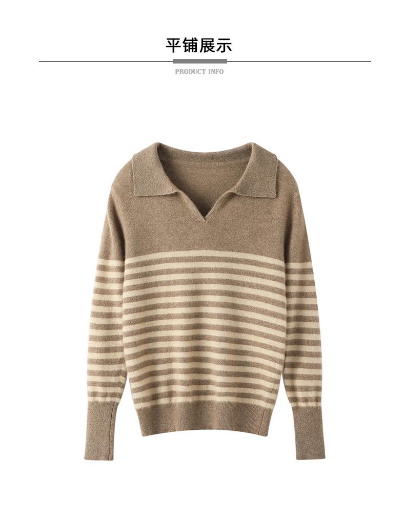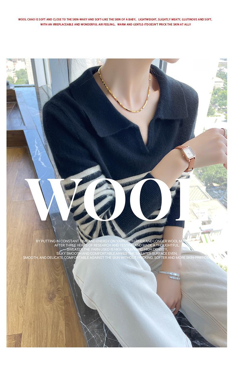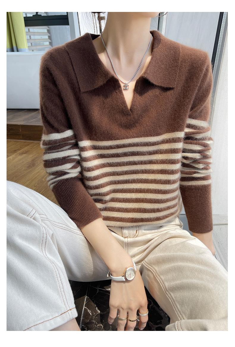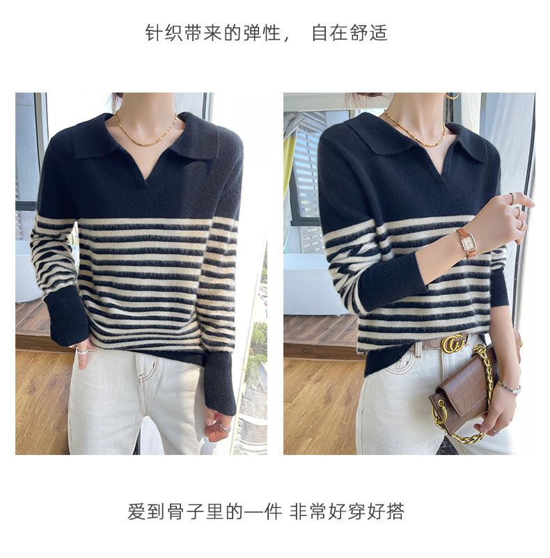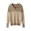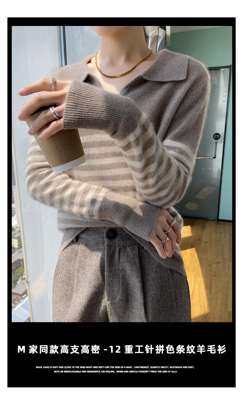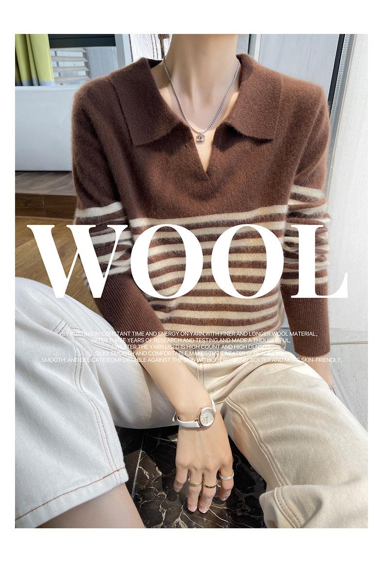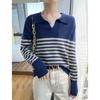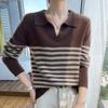 Top de Solapa Mujer 2025 Suéter de Lana Tejido Camiseta Base Rayas Cuello Polo Otoño e Invierno Suéter Holgado Suave Ceroso de Cachemira