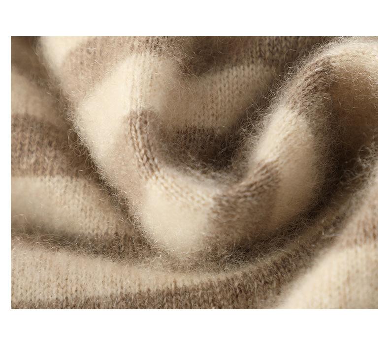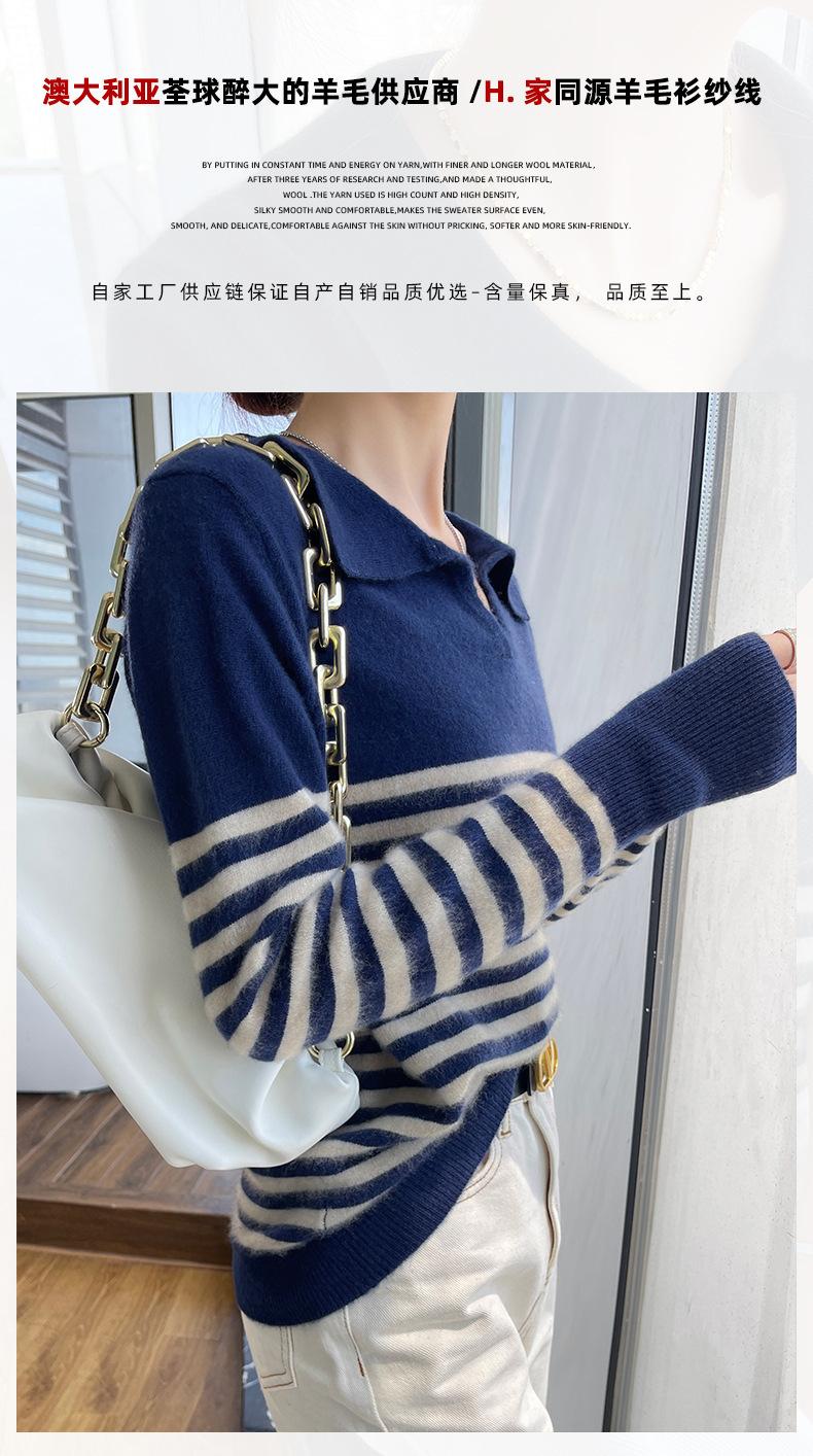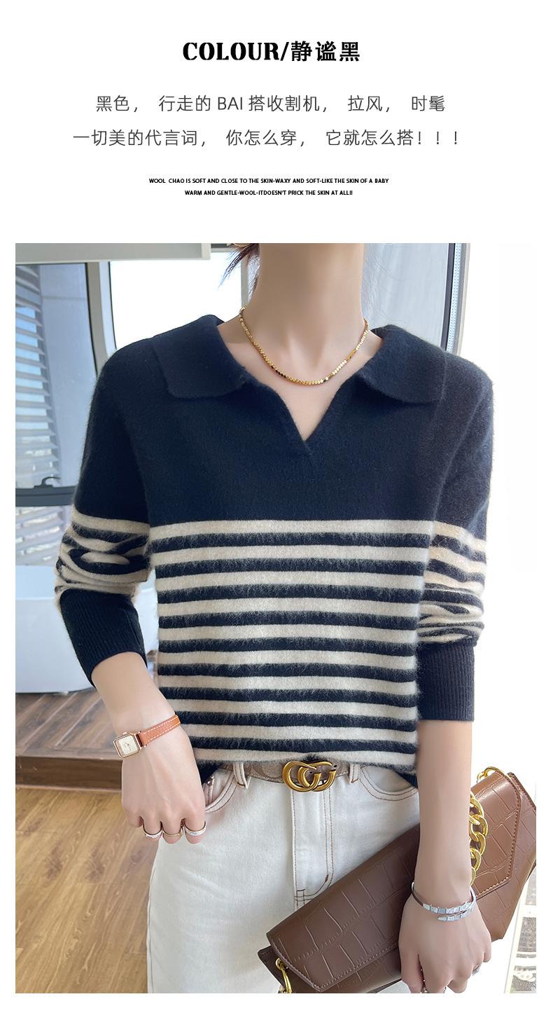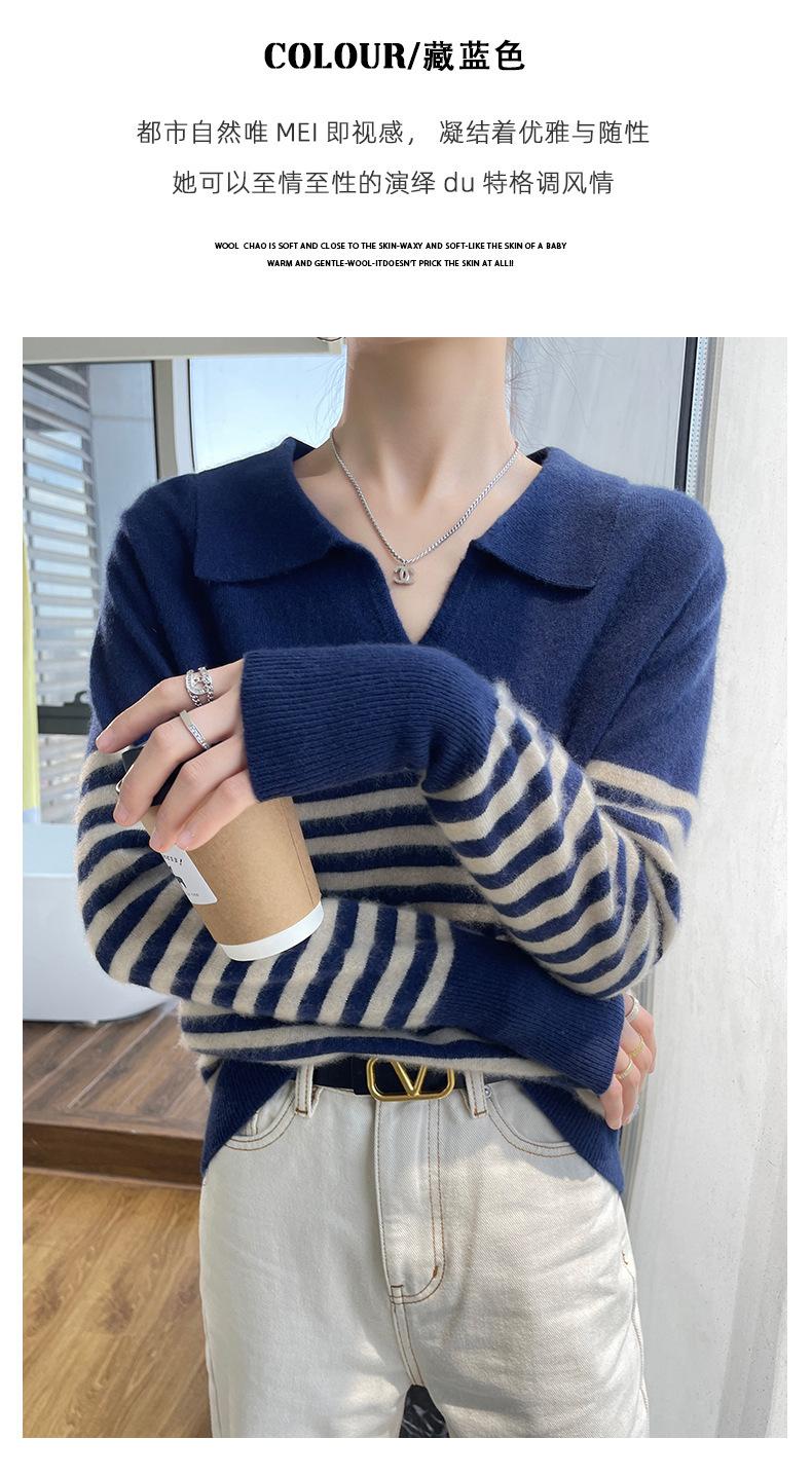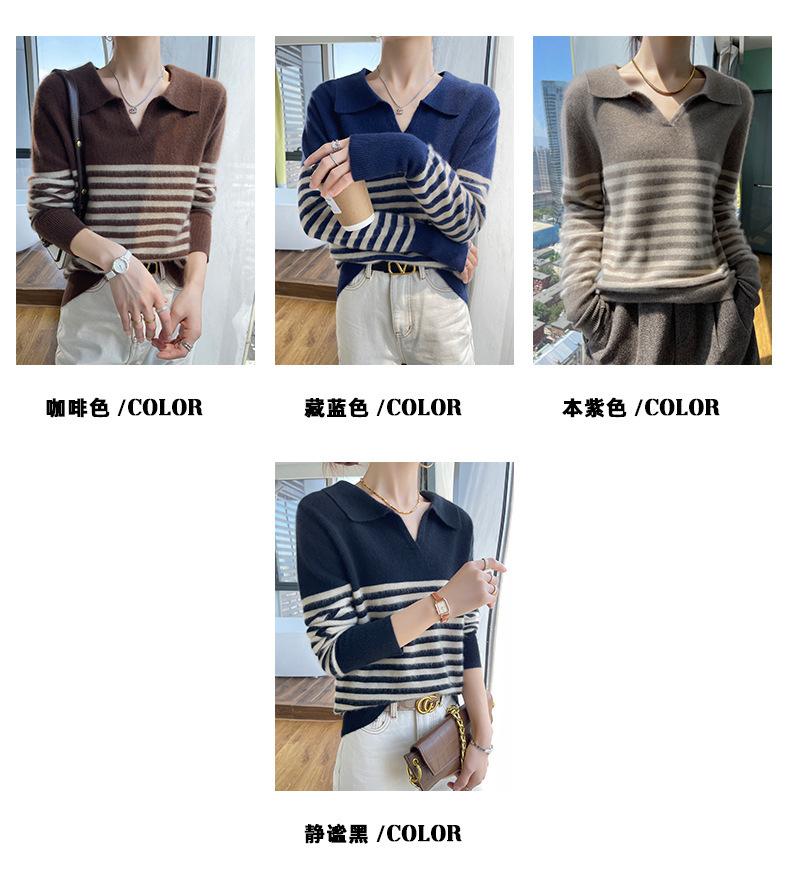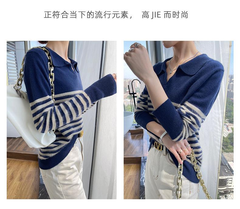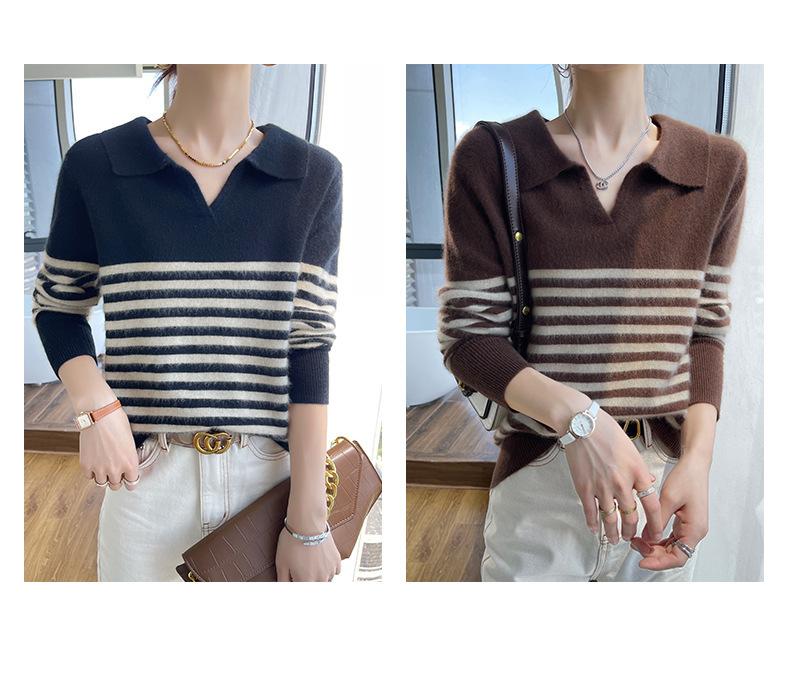 Top de Solapa Mujer 2025 Suéter de Lana Tejido Camiseta Base Rayas Cuello Polo Otoño e Invierno Suéter Holgado Suave Ceroso de Cachemira