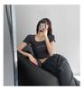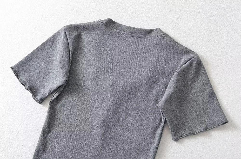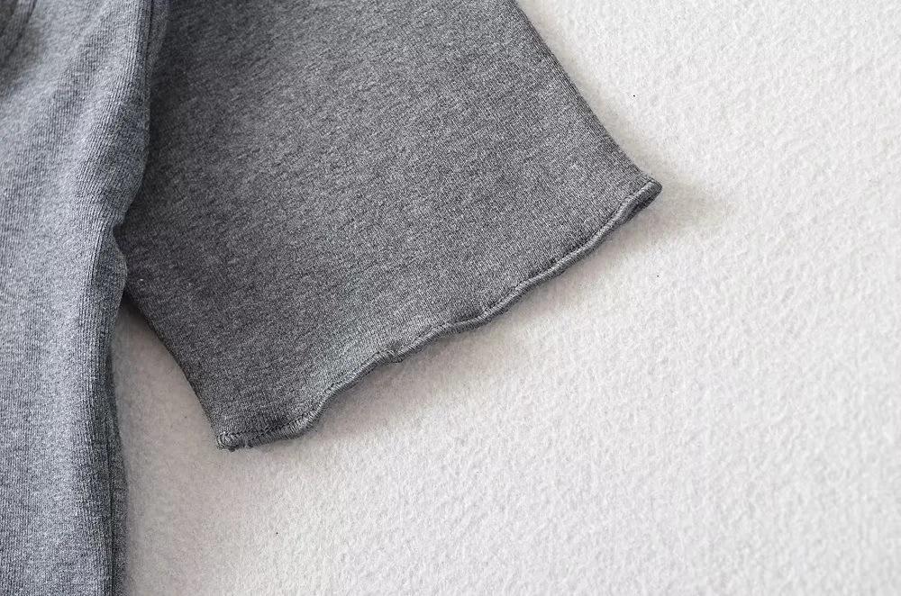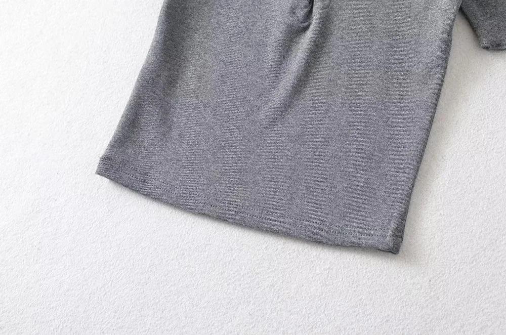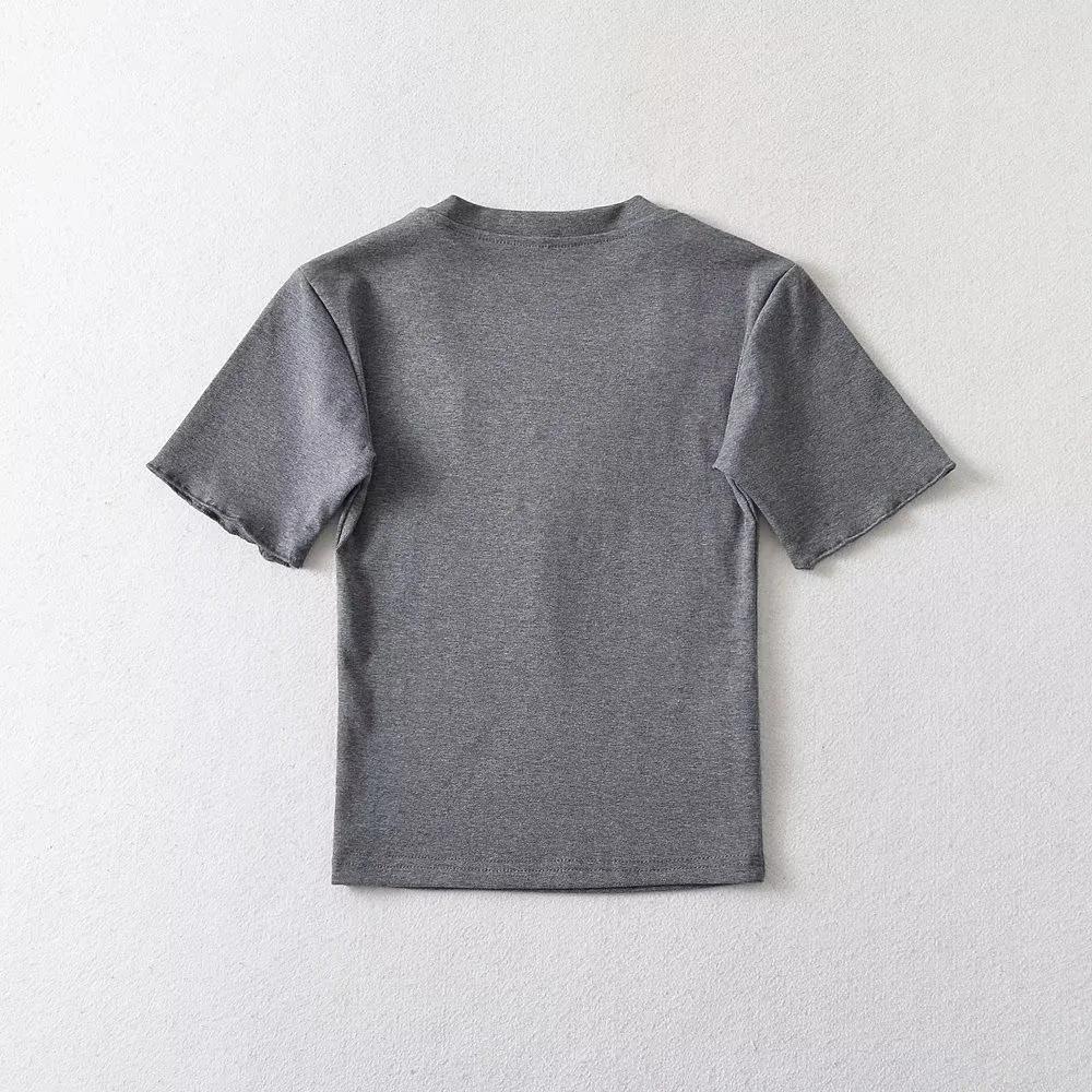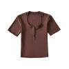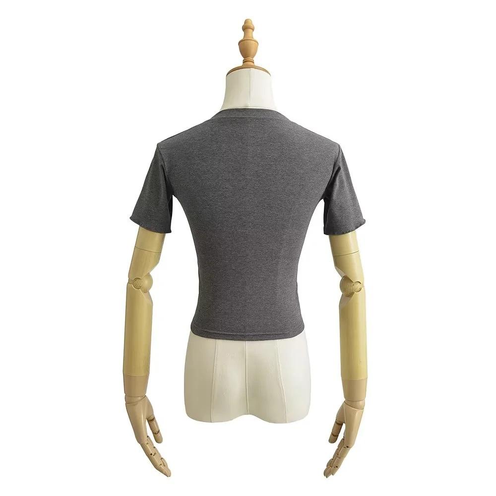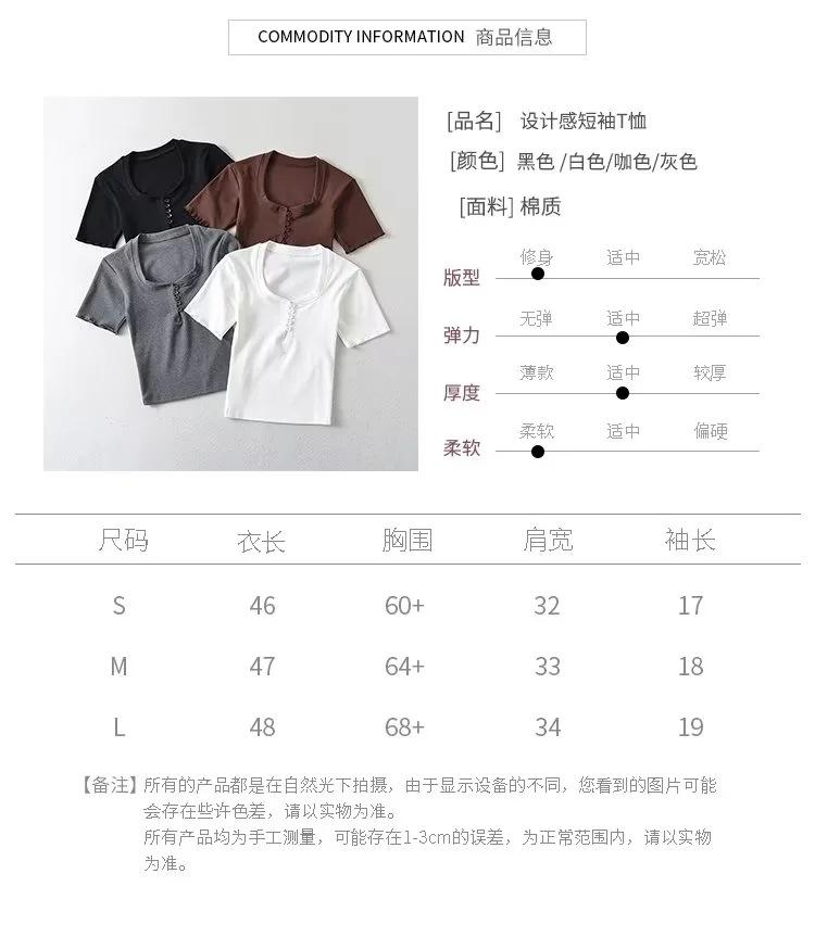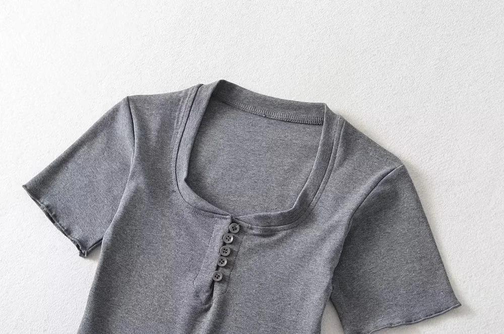 Playera de Manga Corta con Cuello Cuadrado y Cinco Botones para Mujer, Verano 2023, Sexy, Ajustada, Cintura Alta, Top Corto