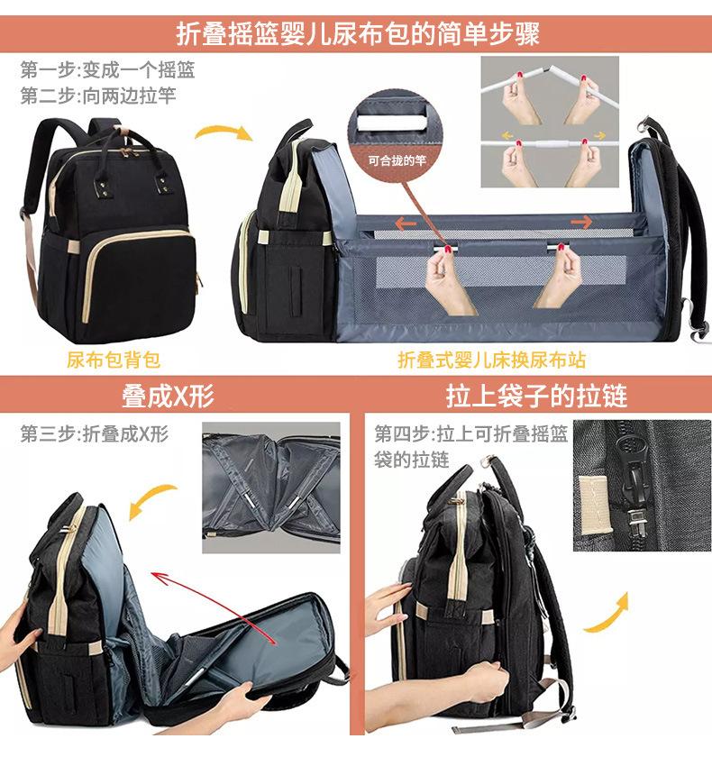 Bolso de momia plegable portátil de gran venta transfronterizo, bolso multifuncional para madre y bebé, bolso de viaje para pañales, bolso de hombro de gran capacidad