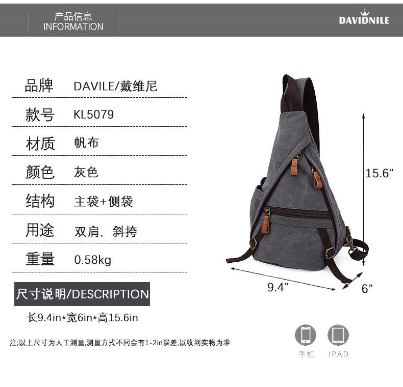 Nueva Bolsa Cruzada para Hombre Tendencia de Moda Lona Bolsa de Pecho para Hombre Casual Bolsa de Hombro Cruzada Mochila Pequeña para Viaje