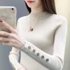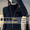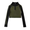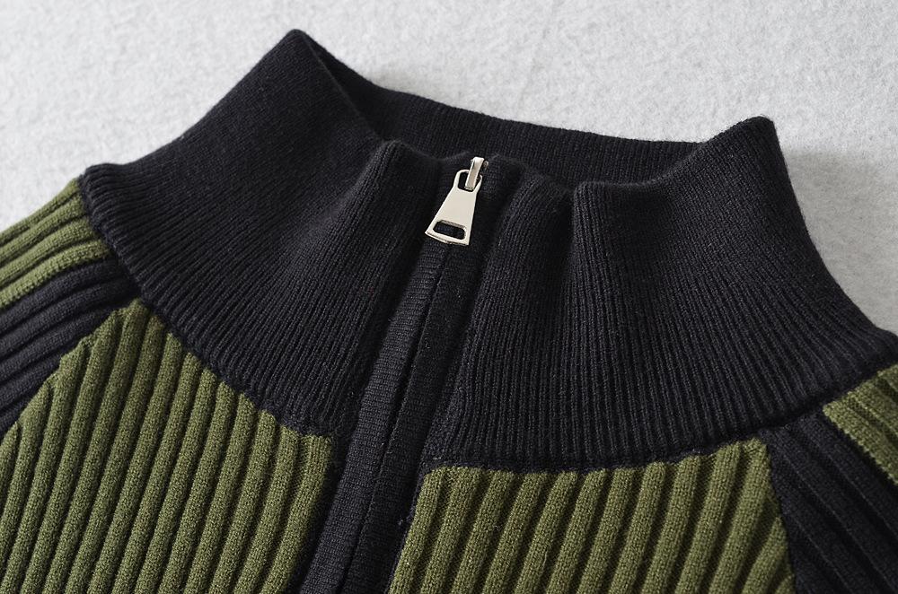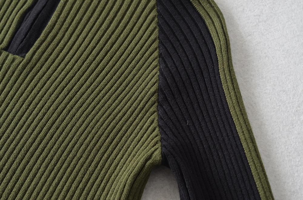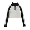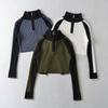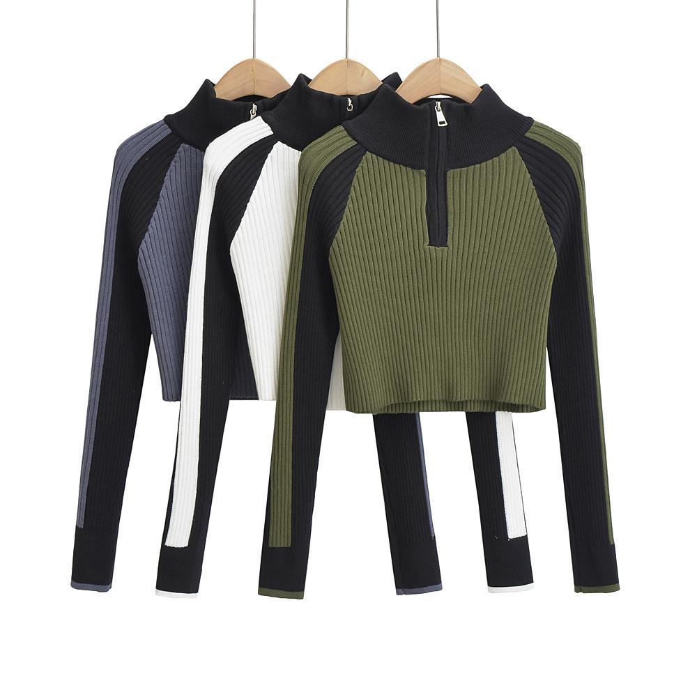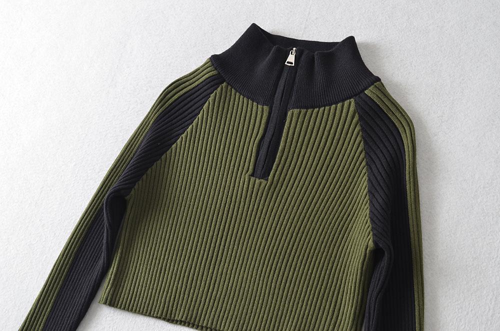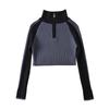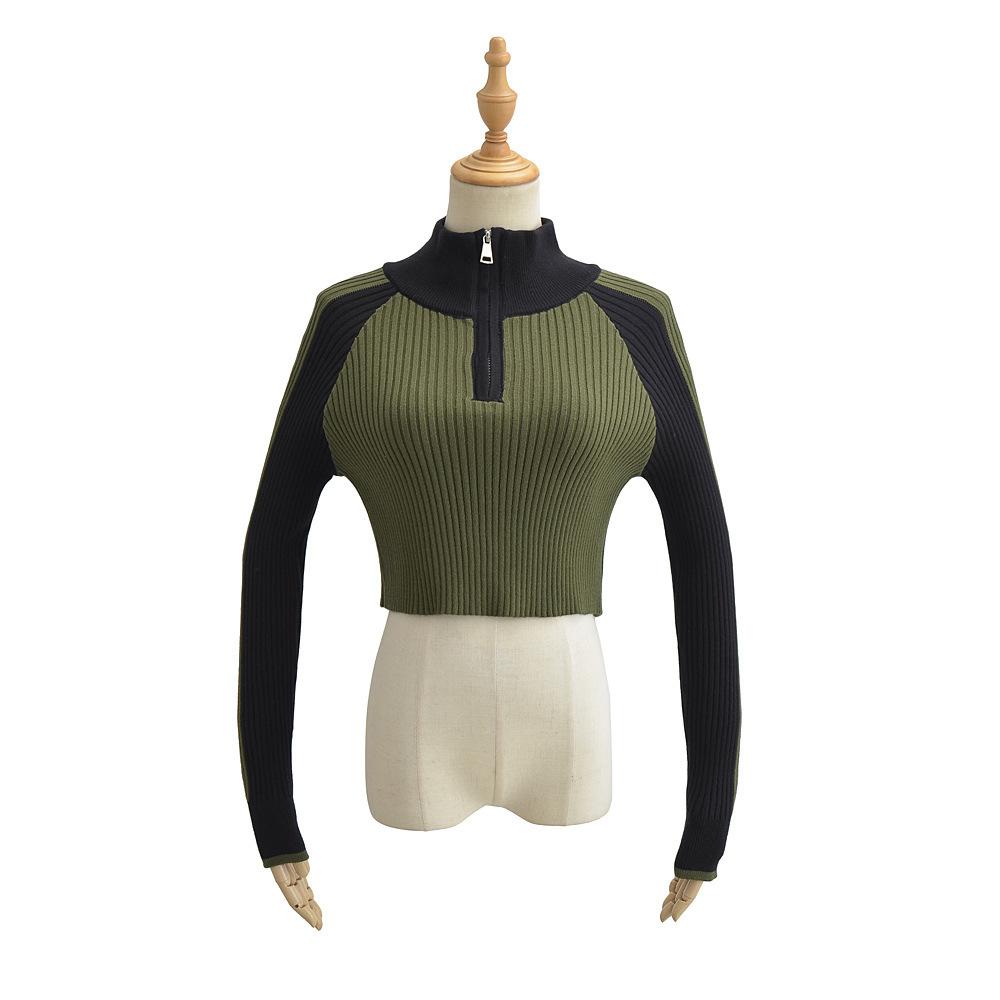 Suéter de cuello alto con costuras de color en contraste de estilo europeo y americano para otoño e invierno de 2023, camisa retro de manga larga con parte inferior corta para mujer