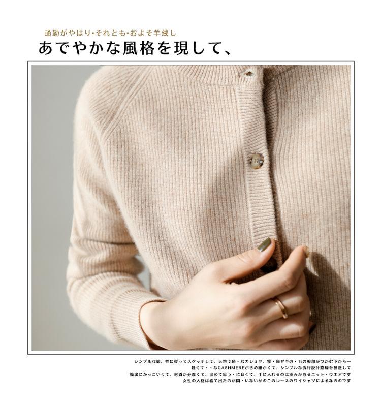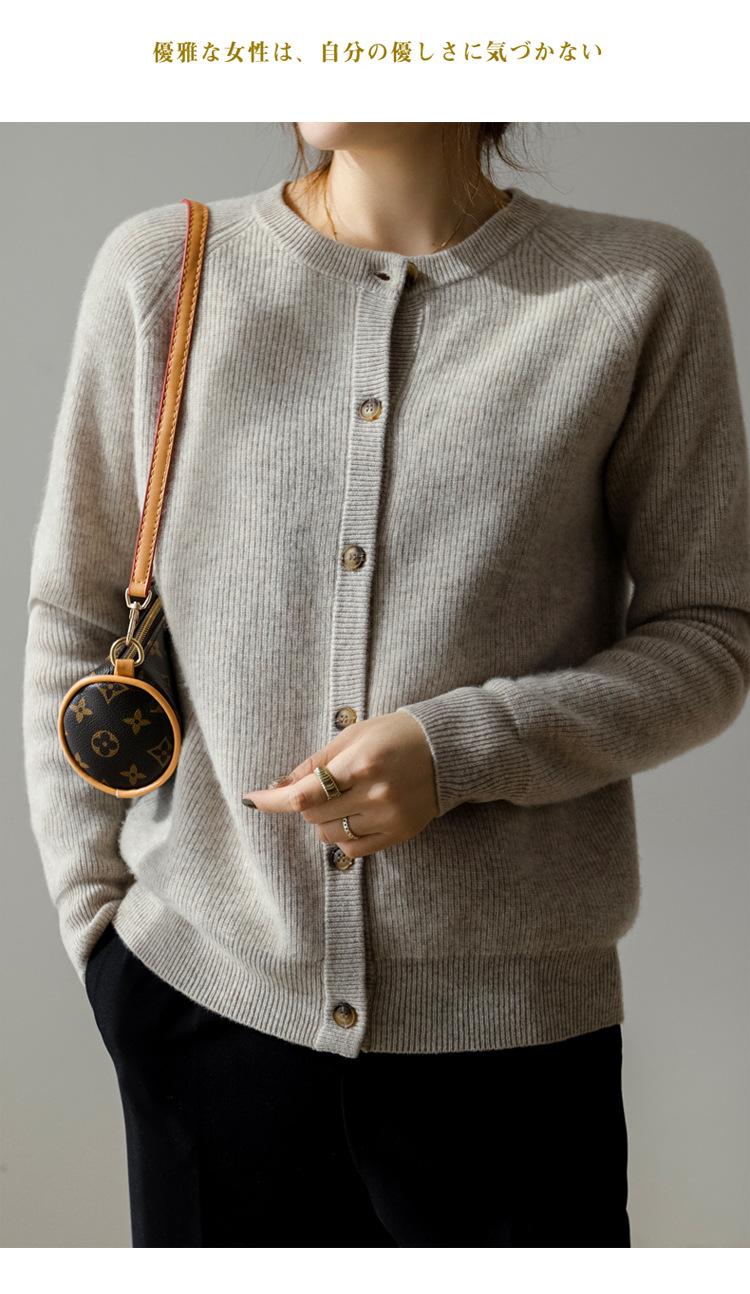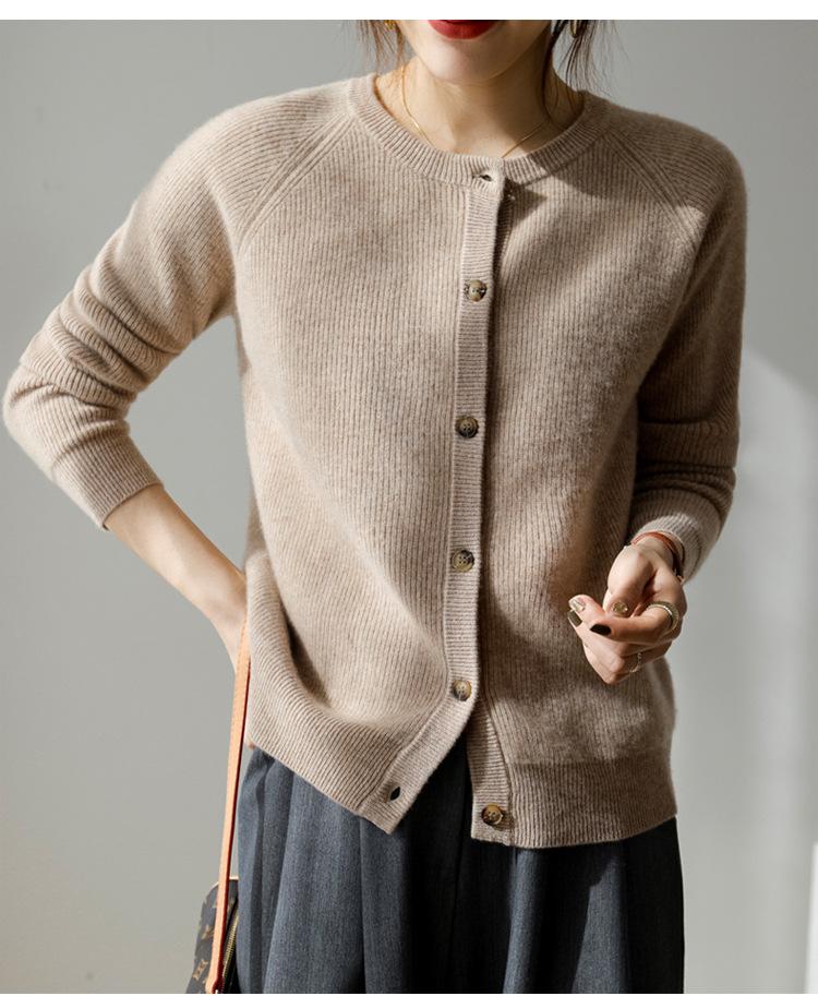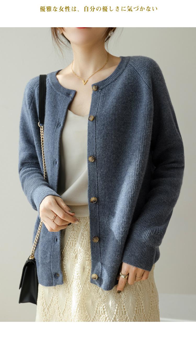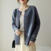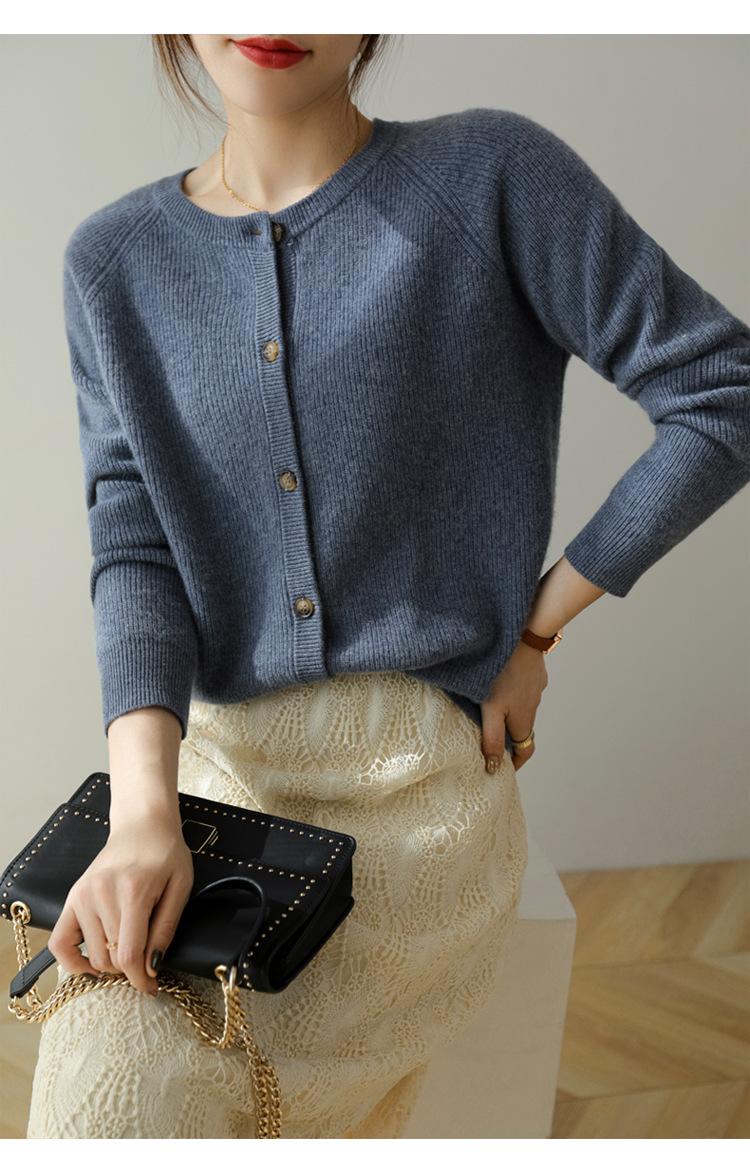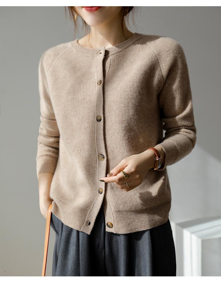 100% Lana Otoño e Invierno 2025 Nuevo Estilo para Mujer Transpirable Suelto Cuello Redondo Corto Cárdigan de Punto Sencillo y Atmosférico