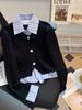 Cárdigan de punto empalmado de dos piezas falsas Otoño e Invierno Reductor de edad Dulce y Lindo Corto de Manga Larga Suave Encerado Top Pequeña Ropa Exterior para Mujer